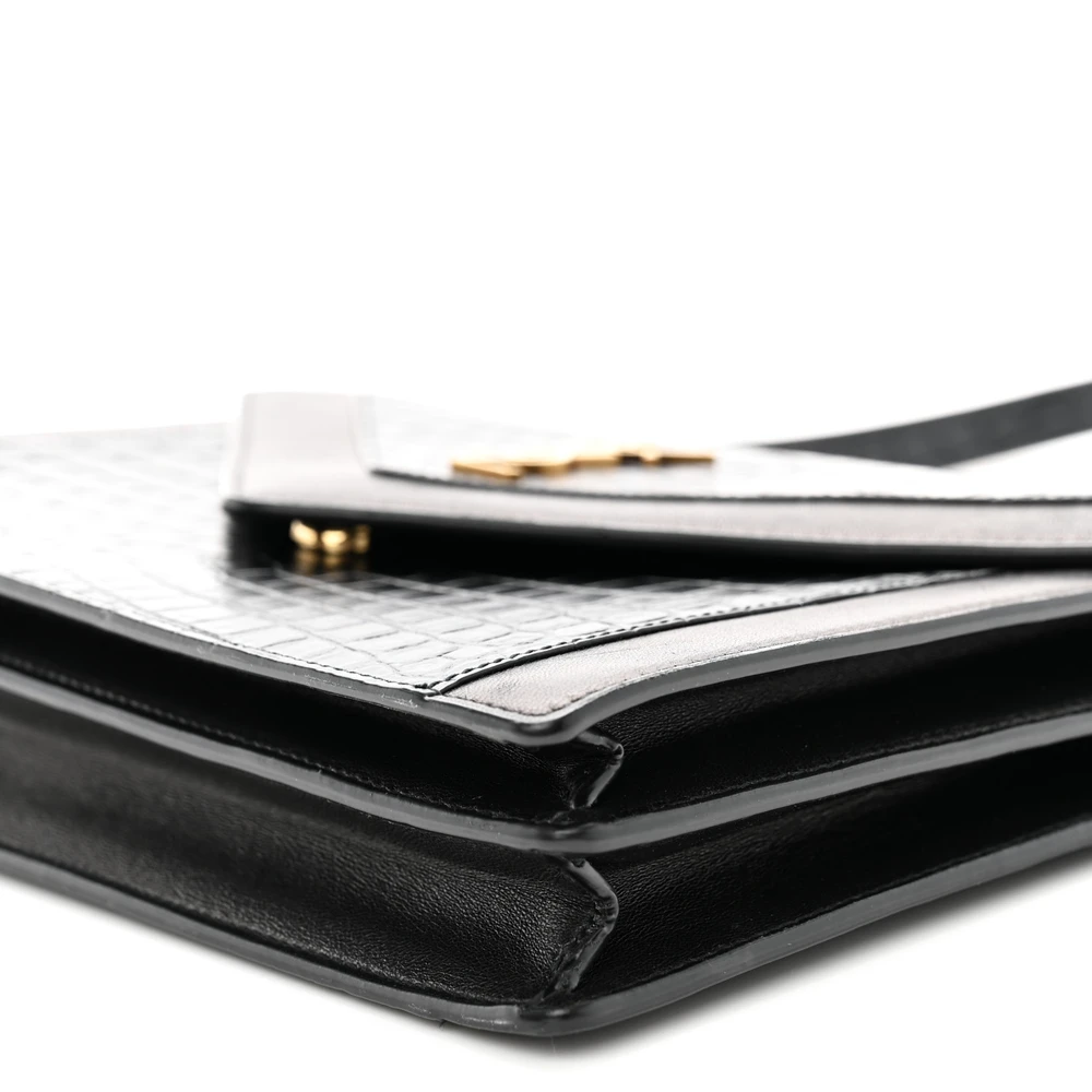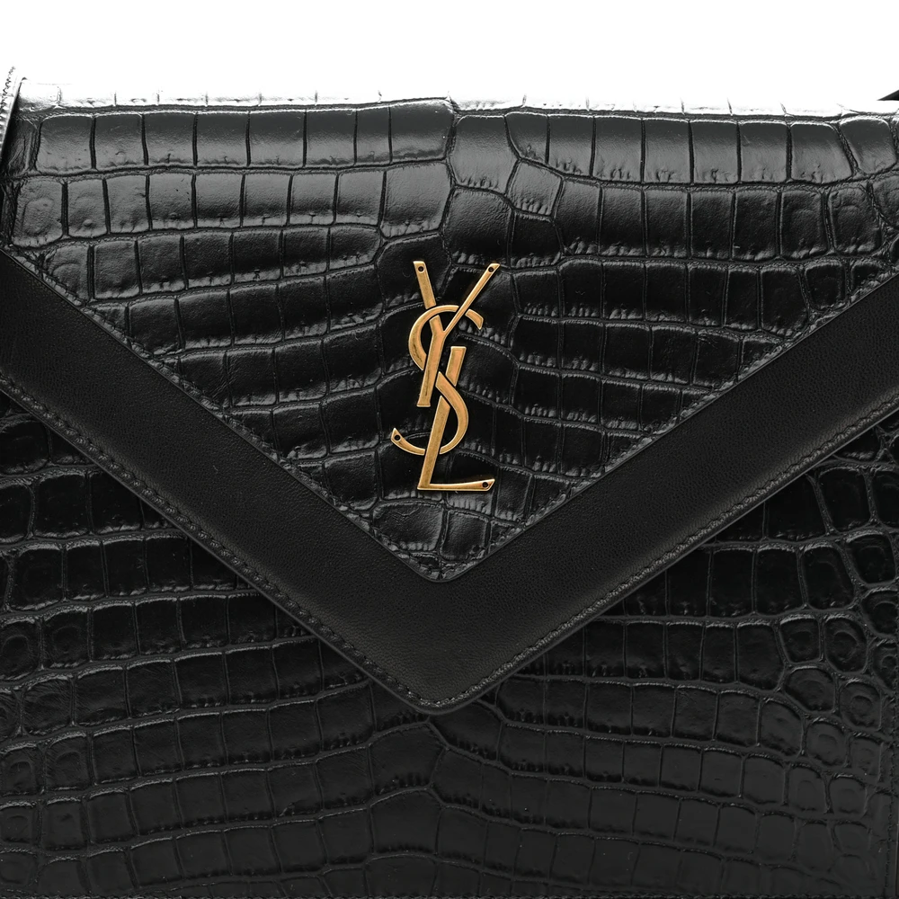 Saint Laurent Small Uptown Pouch Black Embossed Monogram Calfskin & Crocodile Leather Silver Hardware