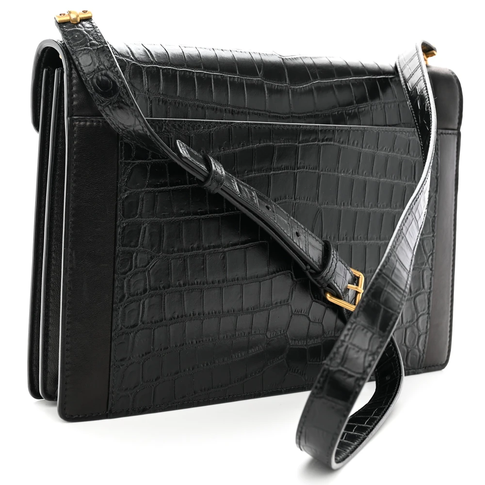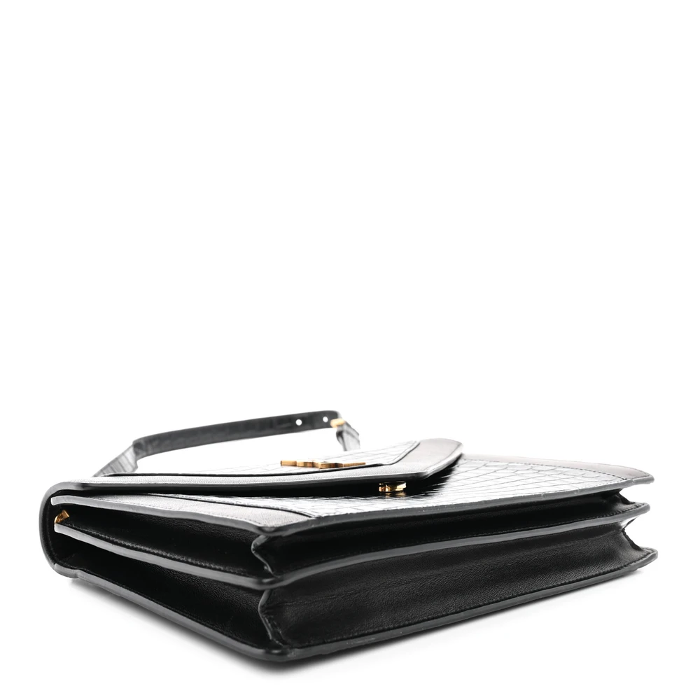 Saint Laurent Medium Gaby Satchel Black Embossed Calfskin & Crocodile Leather Aged Gold Hardware