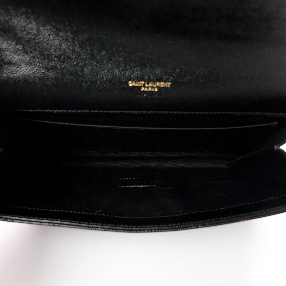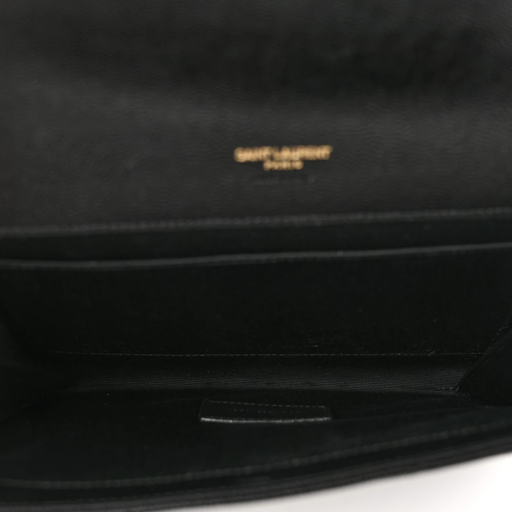 Saint Laurent Medium Clutch Black Triquilt Monogram Grain De Poudre Textured Mixed Matelasse Leather Gold Hardware