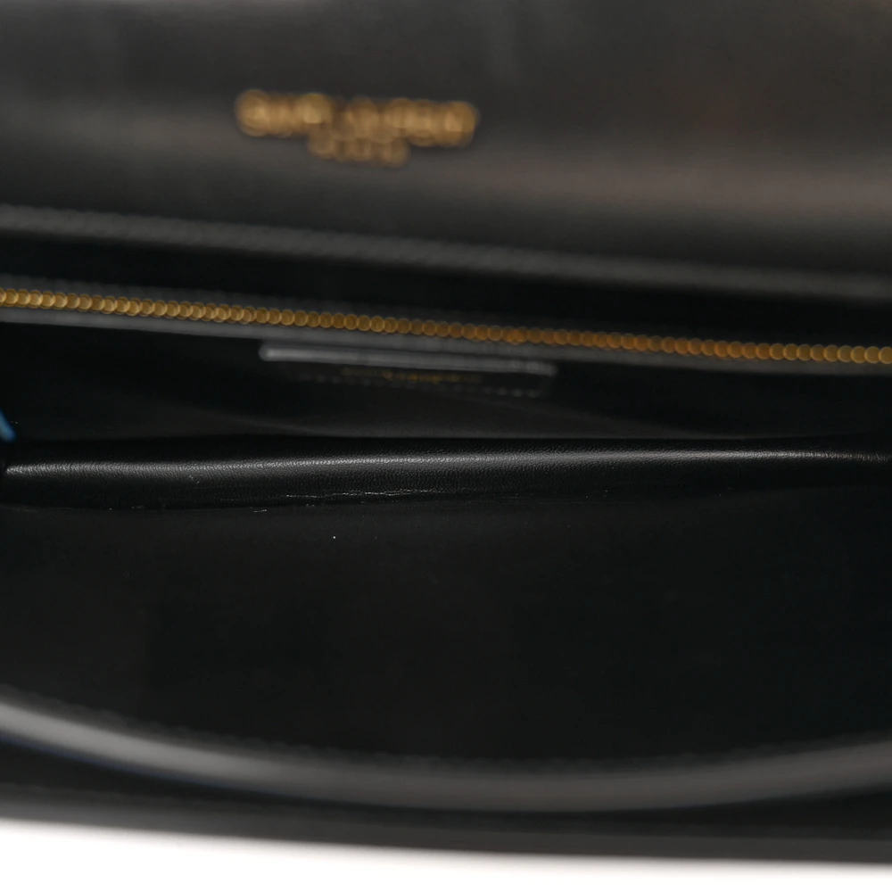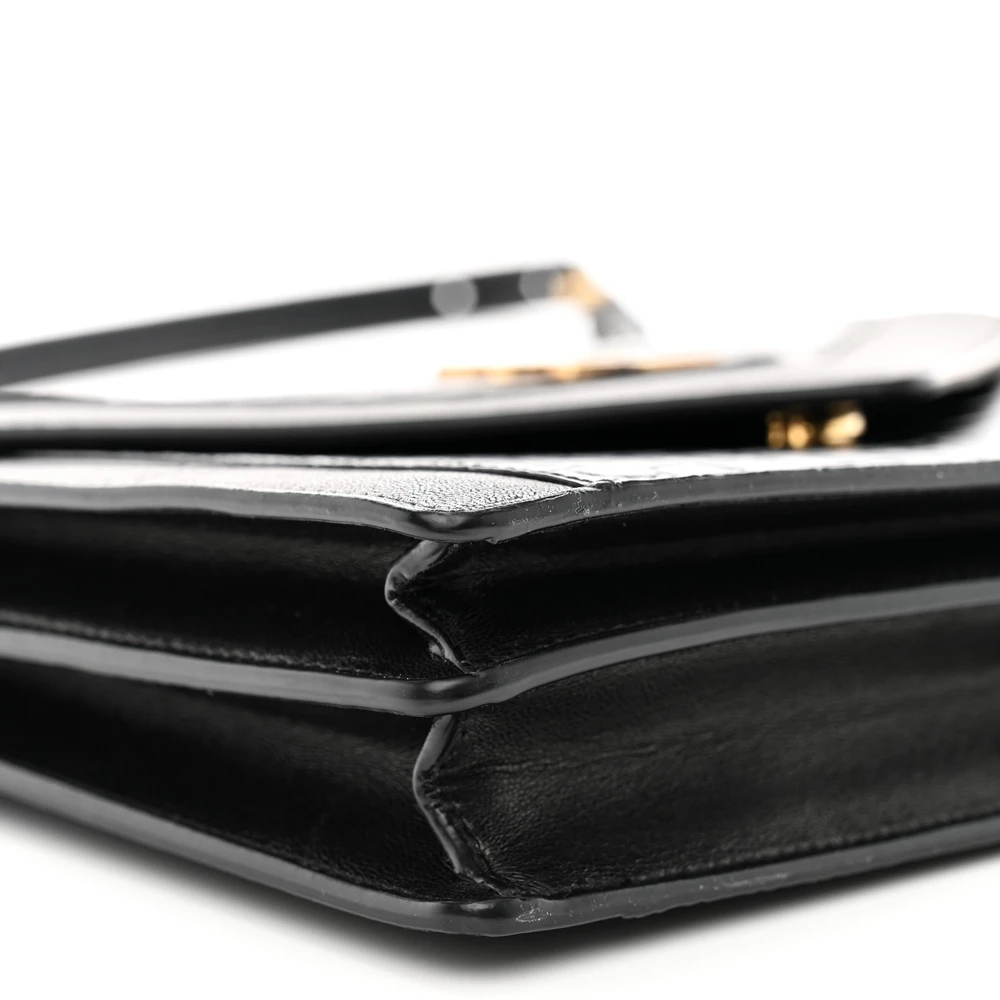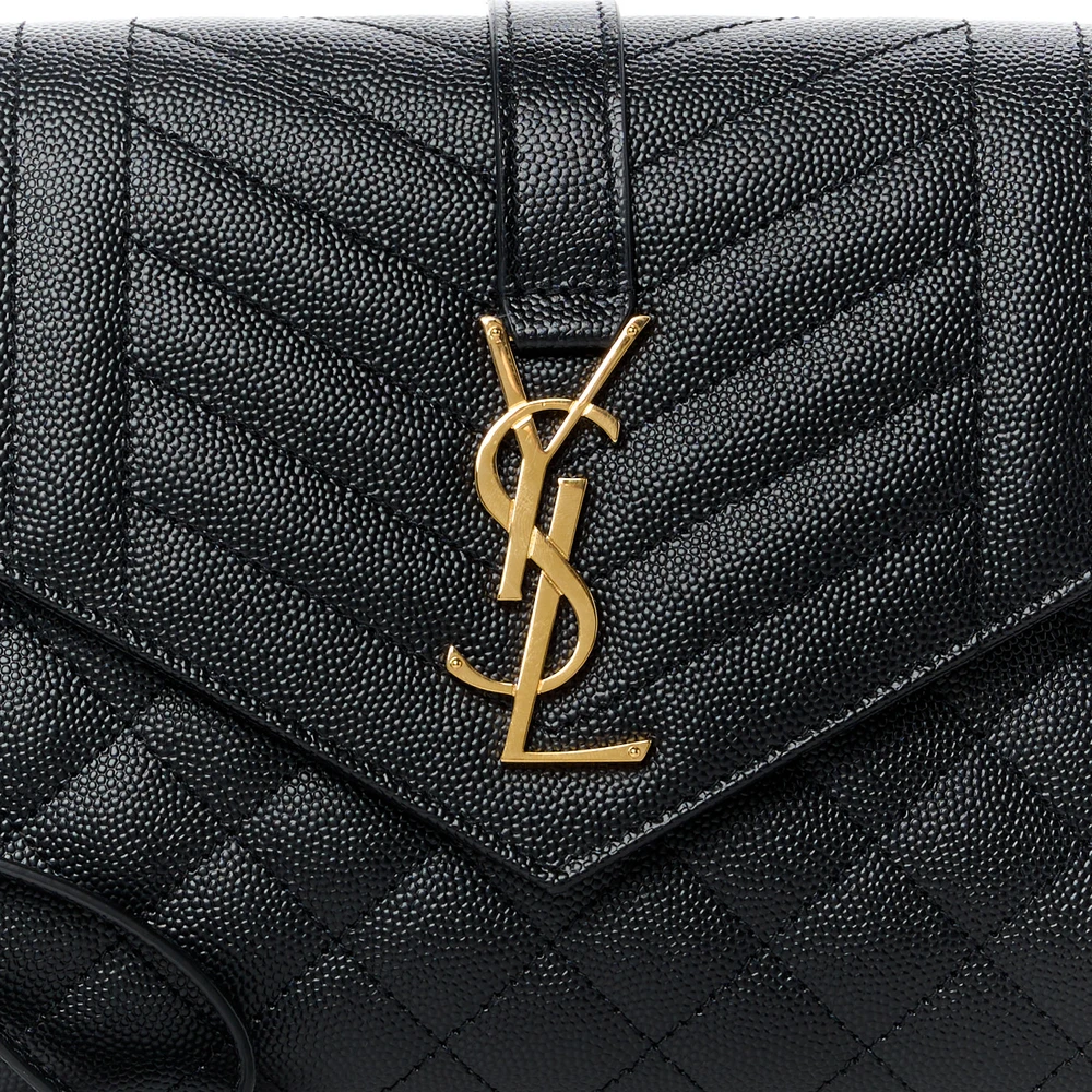 Saint Laurent Small Triquilt Cassandre Envelope Compact Wallet Black Matelassé Calfskin Leather Gold Hardware