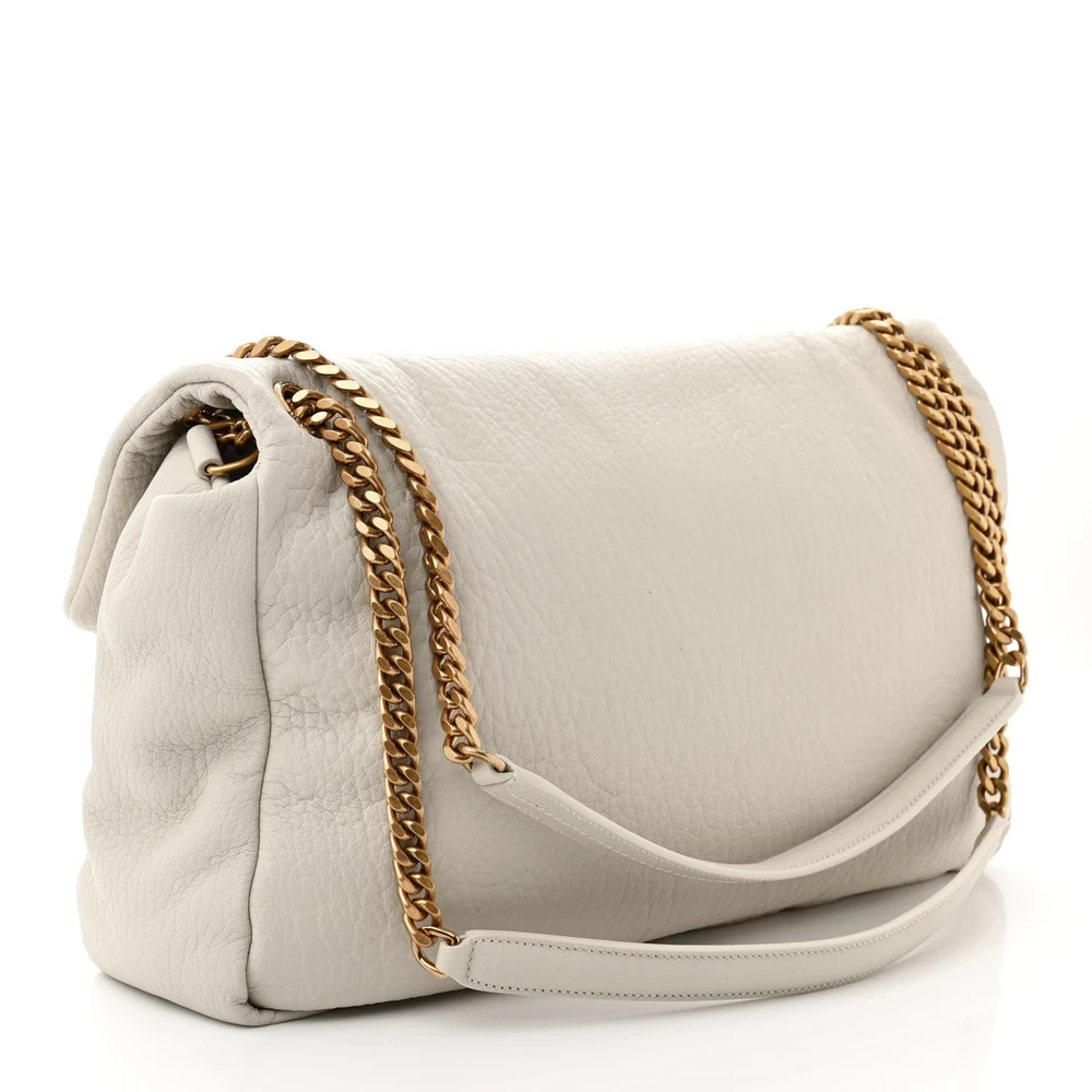 Saint Laurent Large Calypso Bag Blanc Vintage Grained Lambskin Leather Aged Gold Hardware