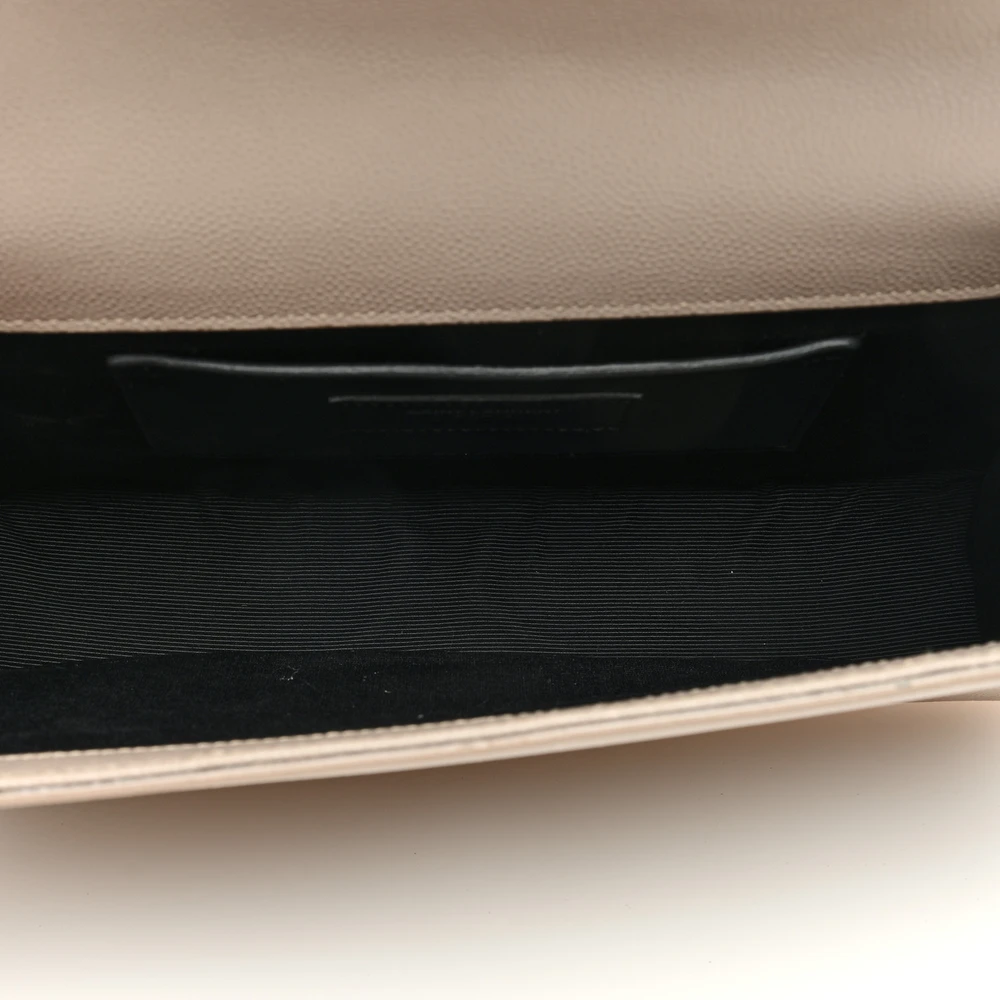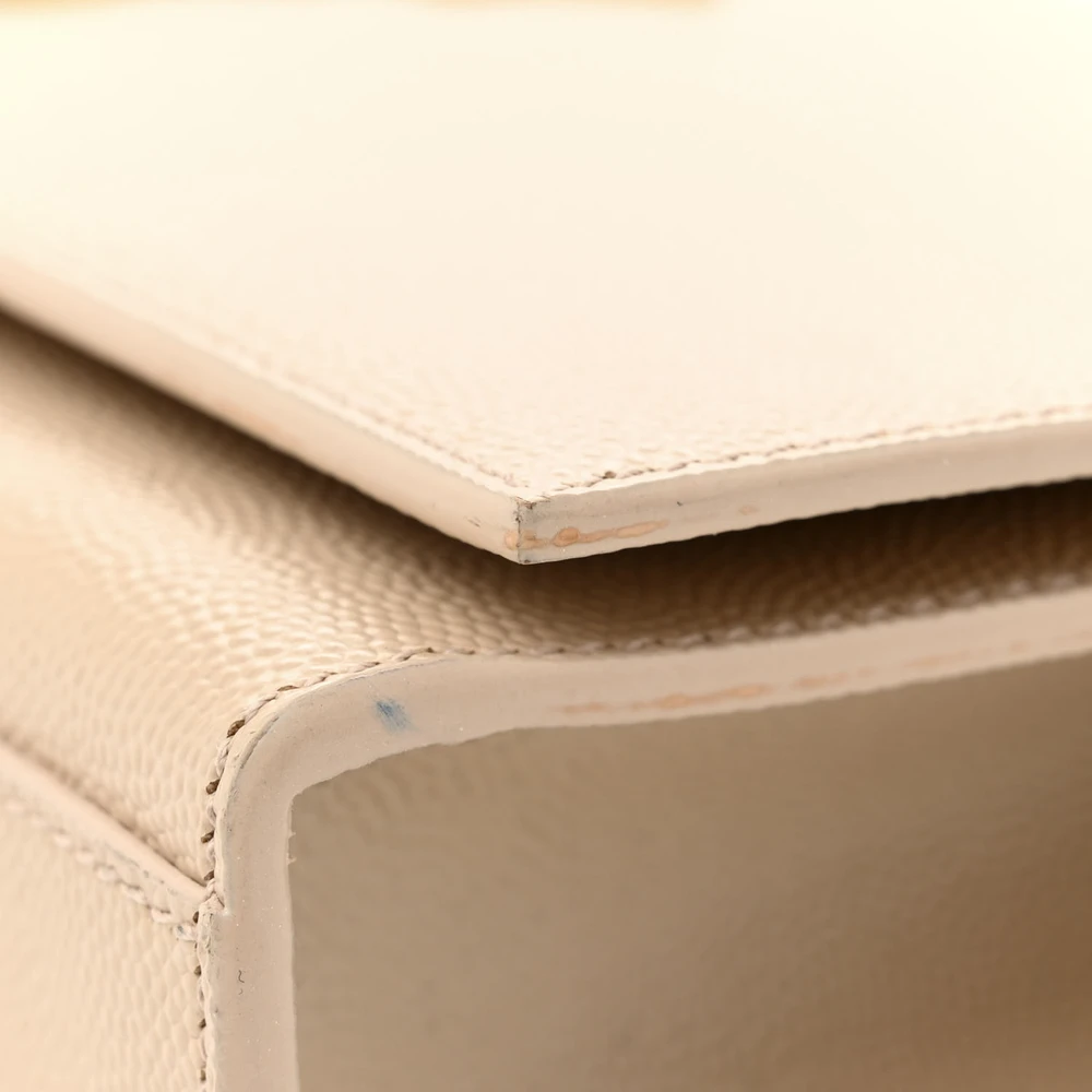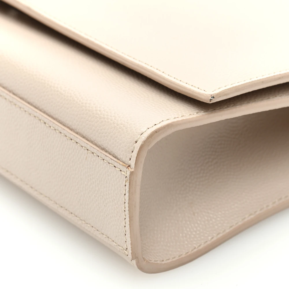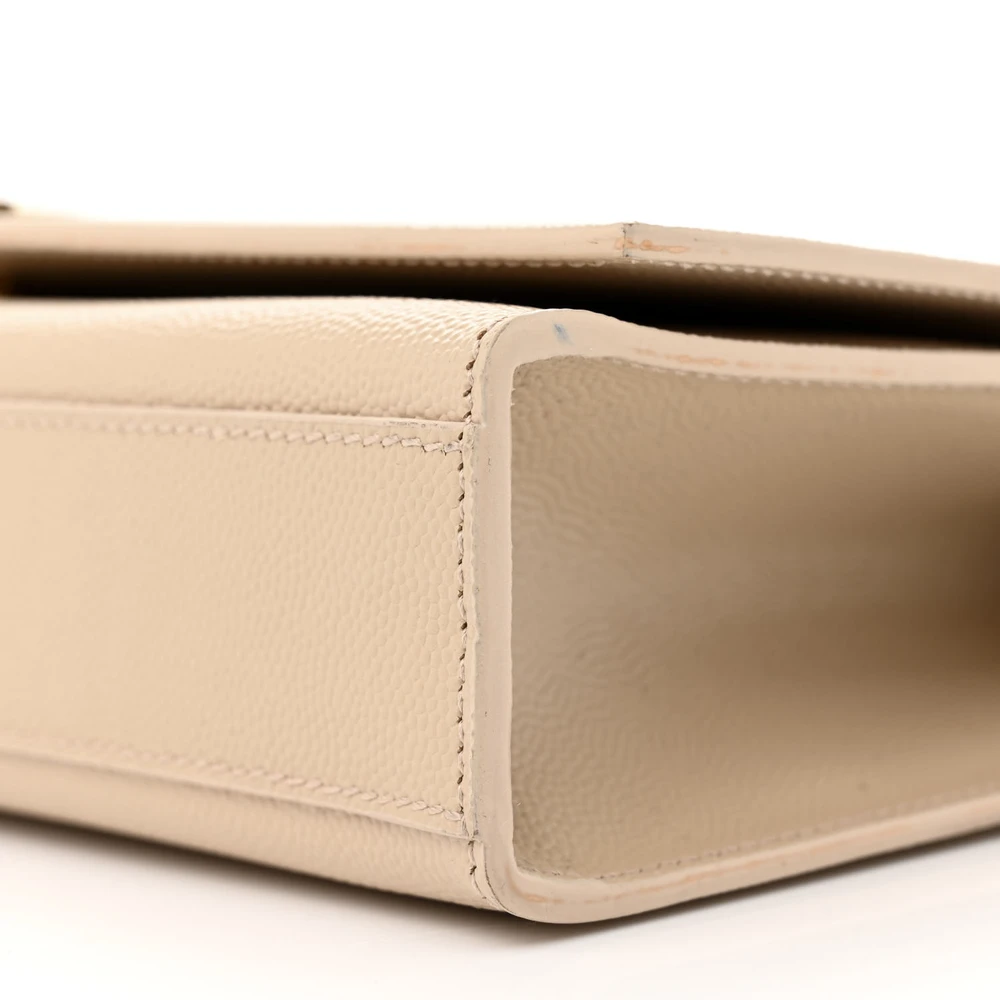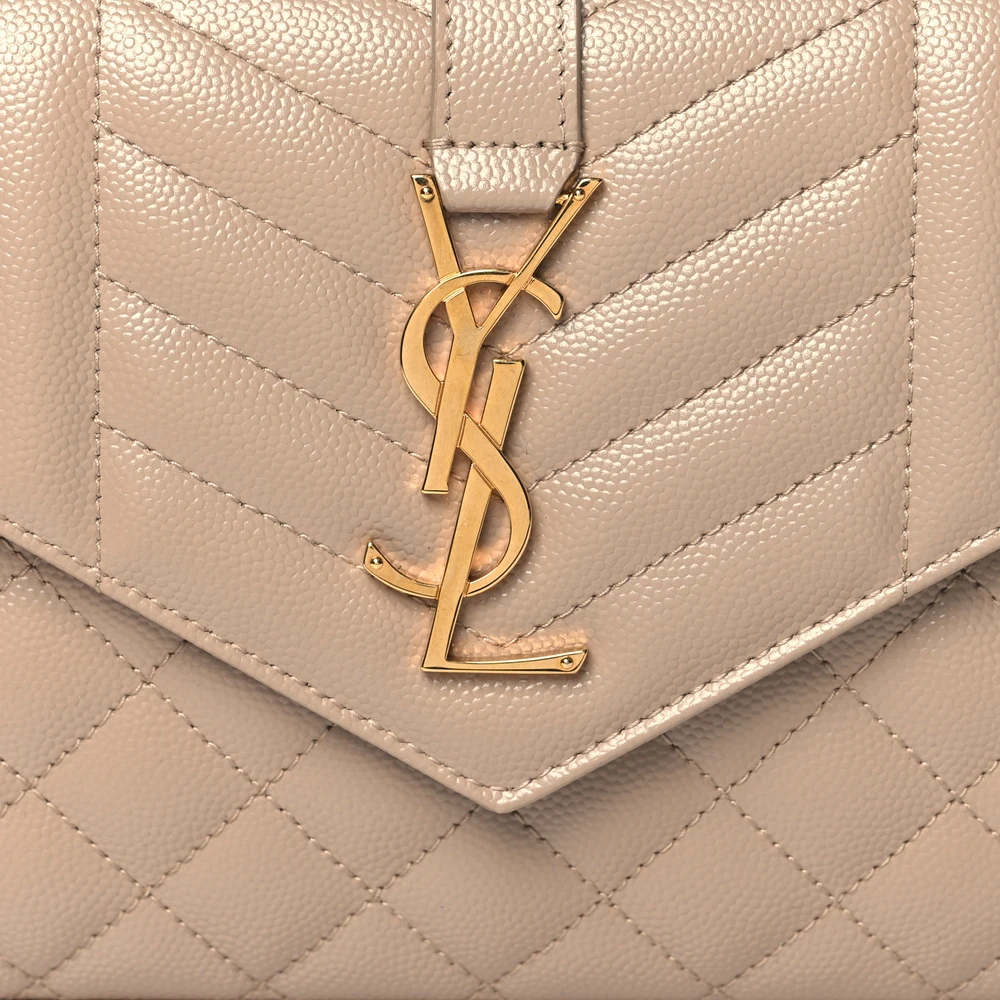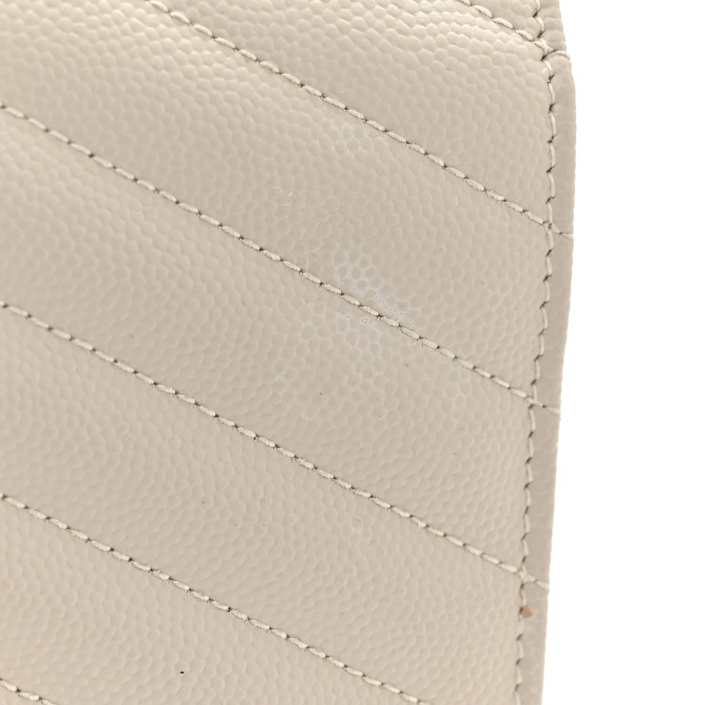 Saint Laurent Small Chain Wallet Crema Soft Chevron Monogram Grain De Poudre Matelasse Leather Gold Hardware