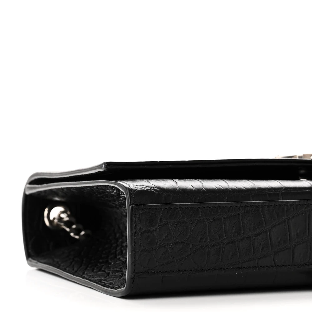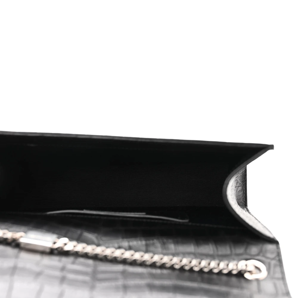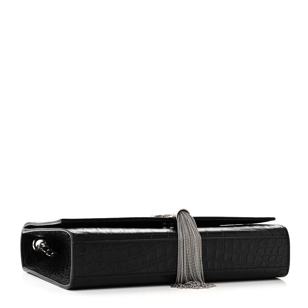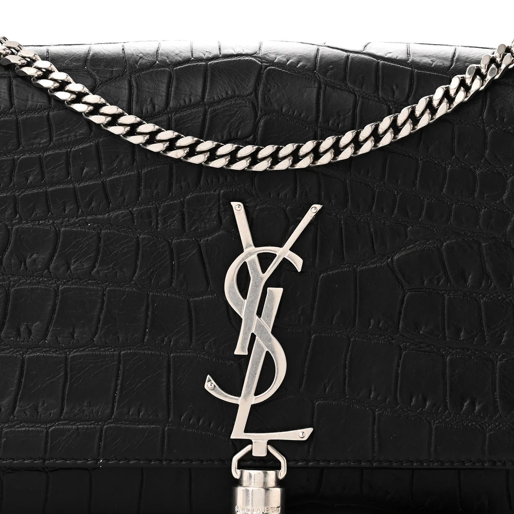 Saint Laurent Medium Kate Tassel Satchel Black Embossed Classic Monogram Calfskin & Crocodile Leather Silver Hardware