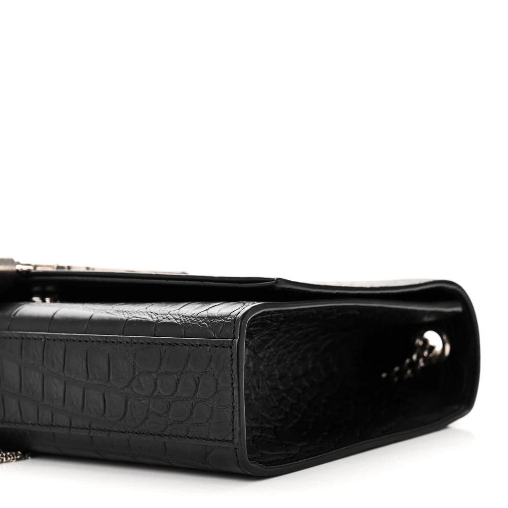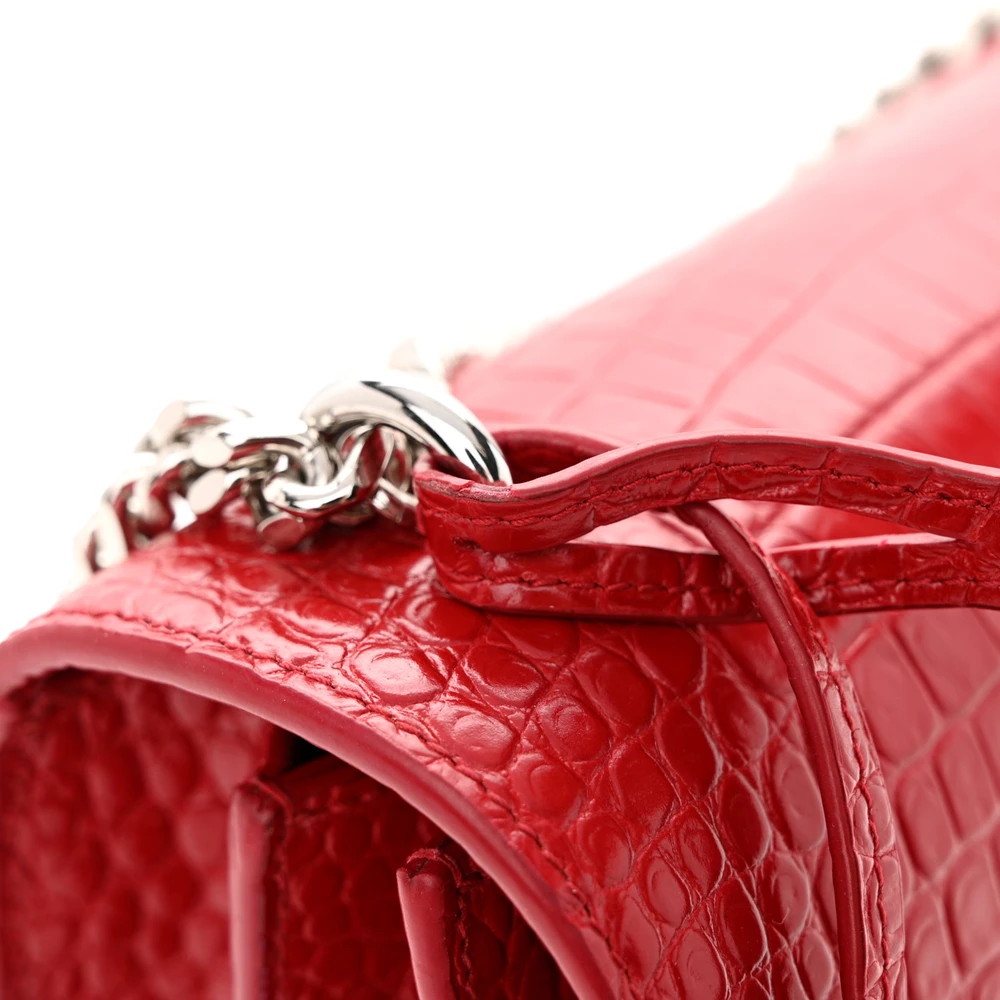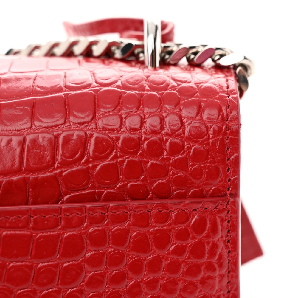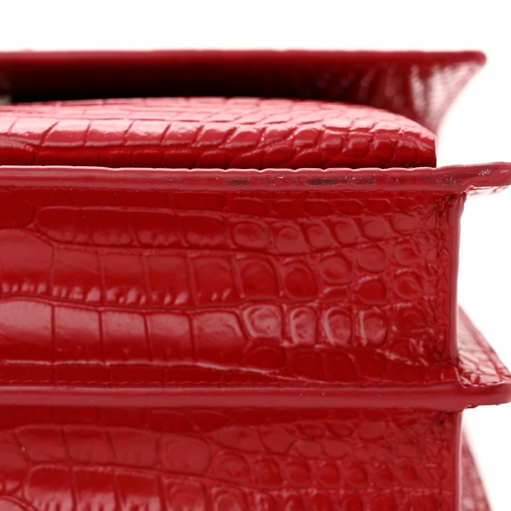 Saint Laurent Medium Sunset Bag Rouge Eros Embossed Monogram Calfskin & Crocodile Leather Silver Hardware