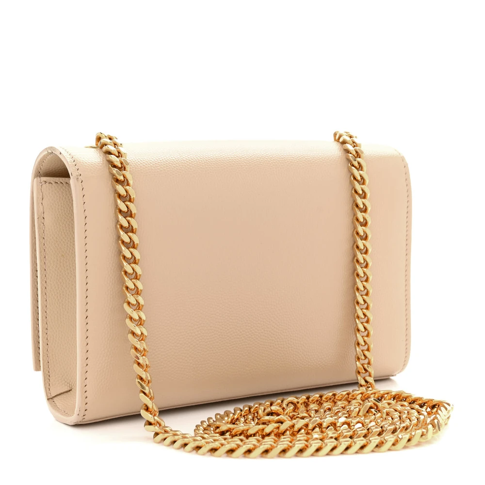 Saint Laurent Small Kate Tassel Chain Wallet Dark Beige Classic Monogram Grain De Poudre Leather Gold Hardware