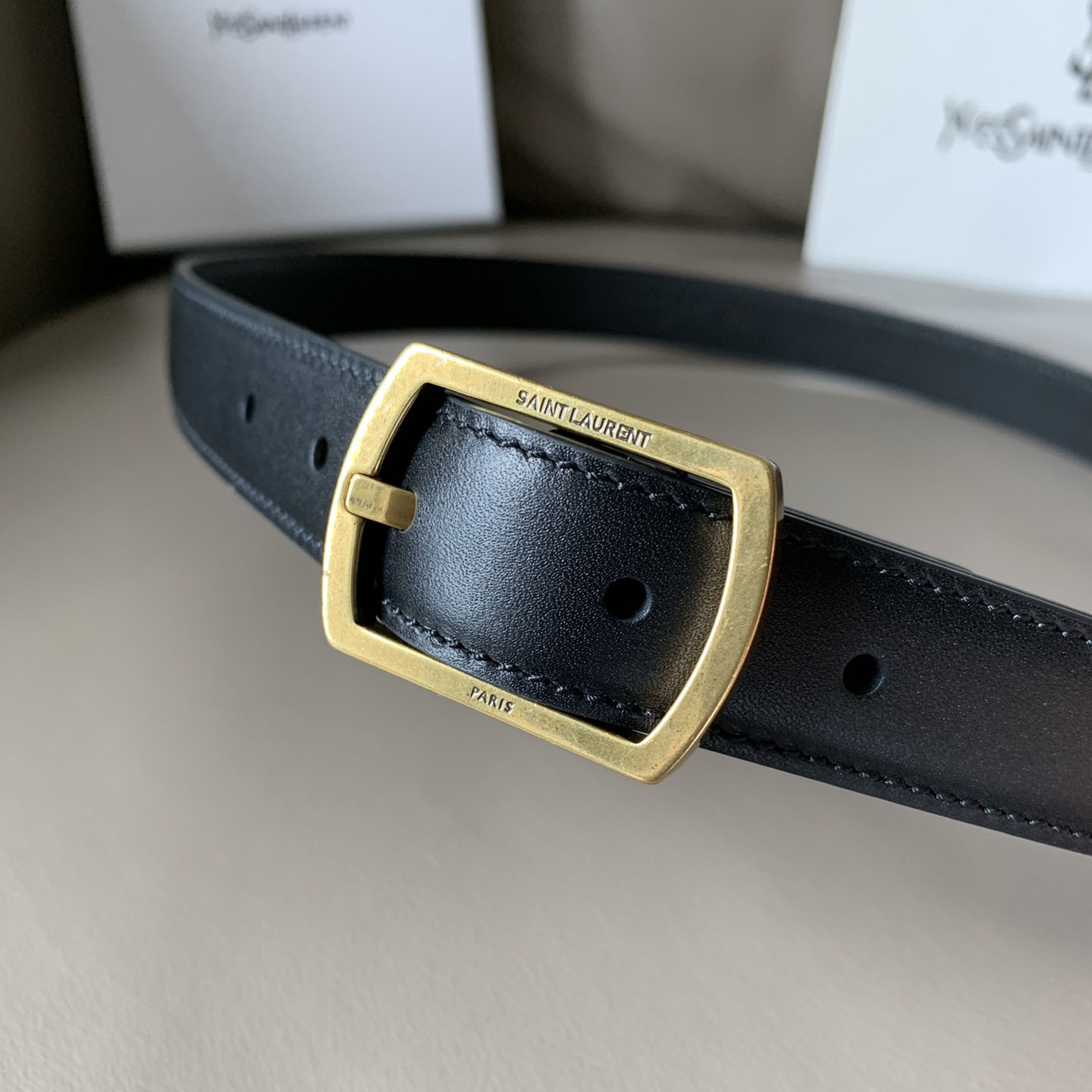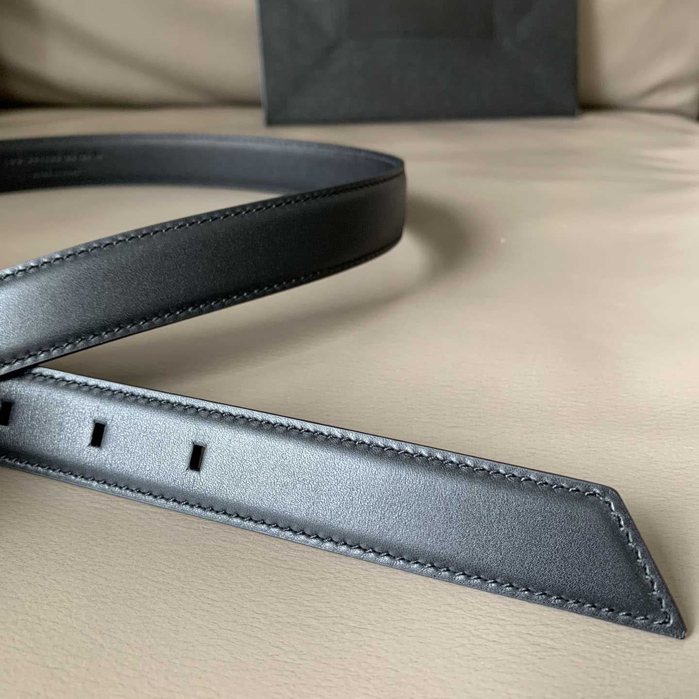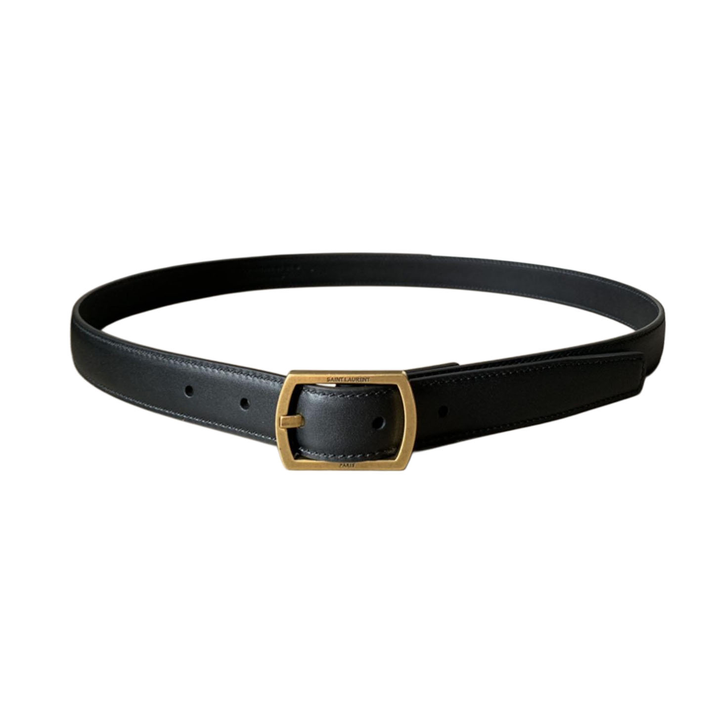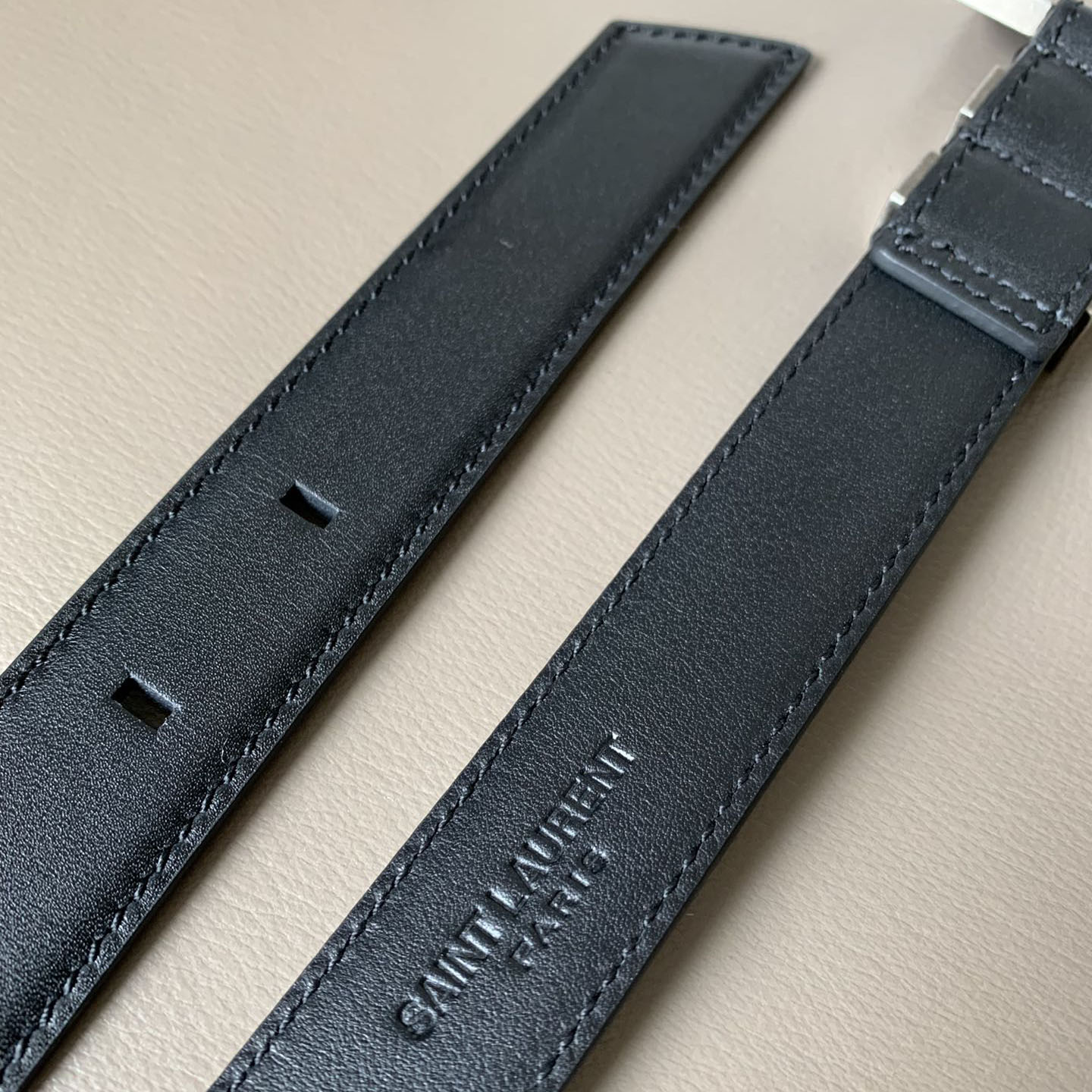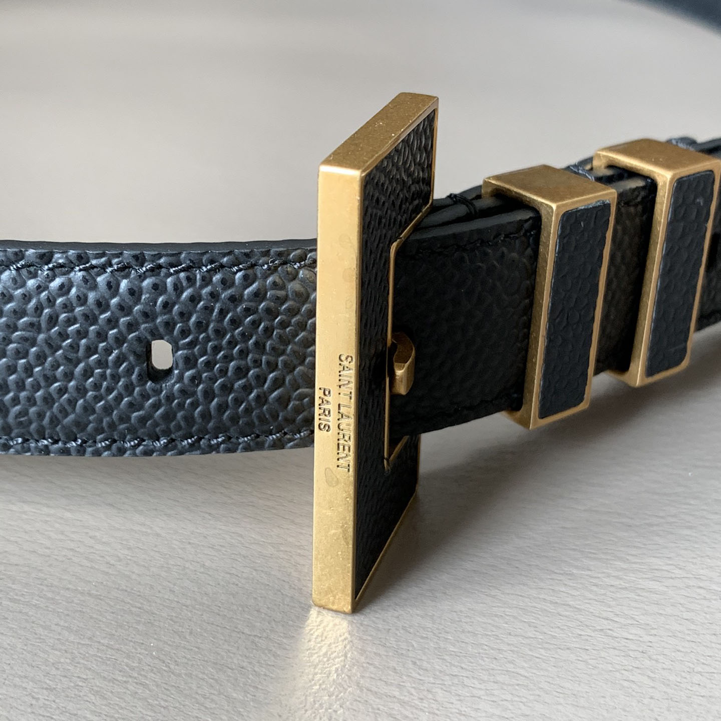 Saint Laurent Carre Rive Gauche Double-Loop Belt In Black Calfskin With Gold/Silver Hardware 25mm