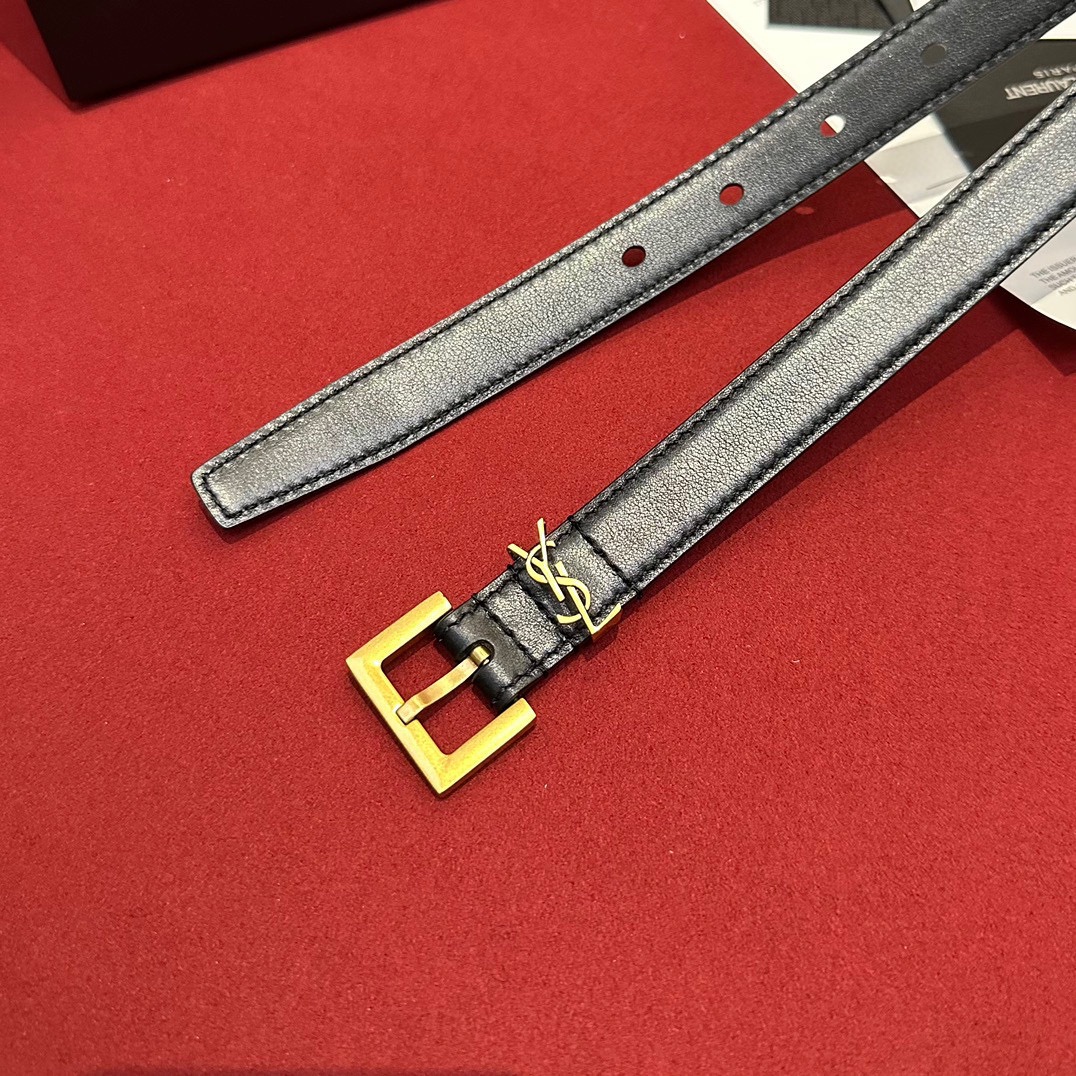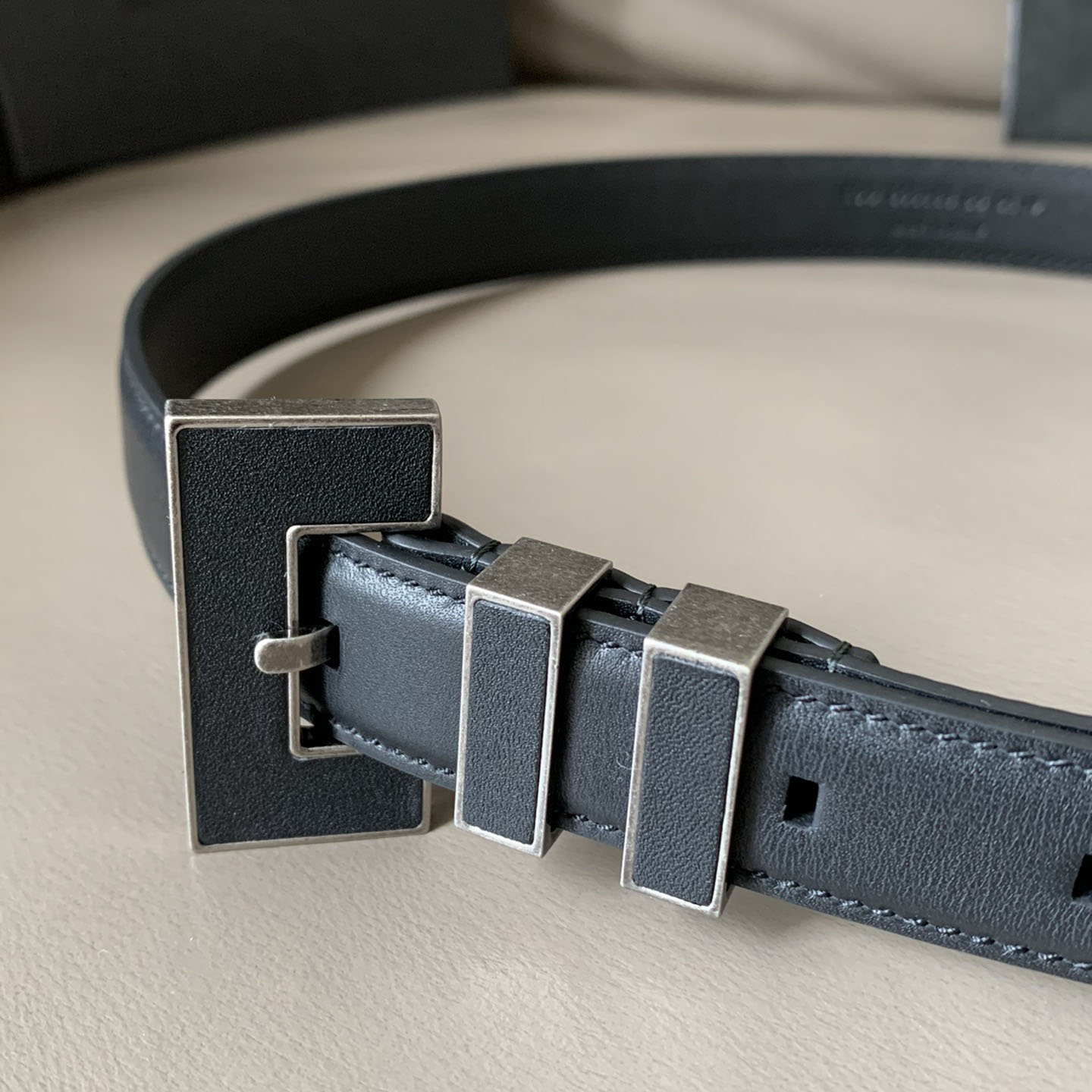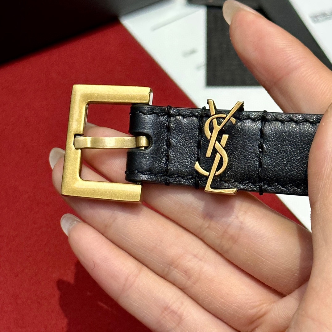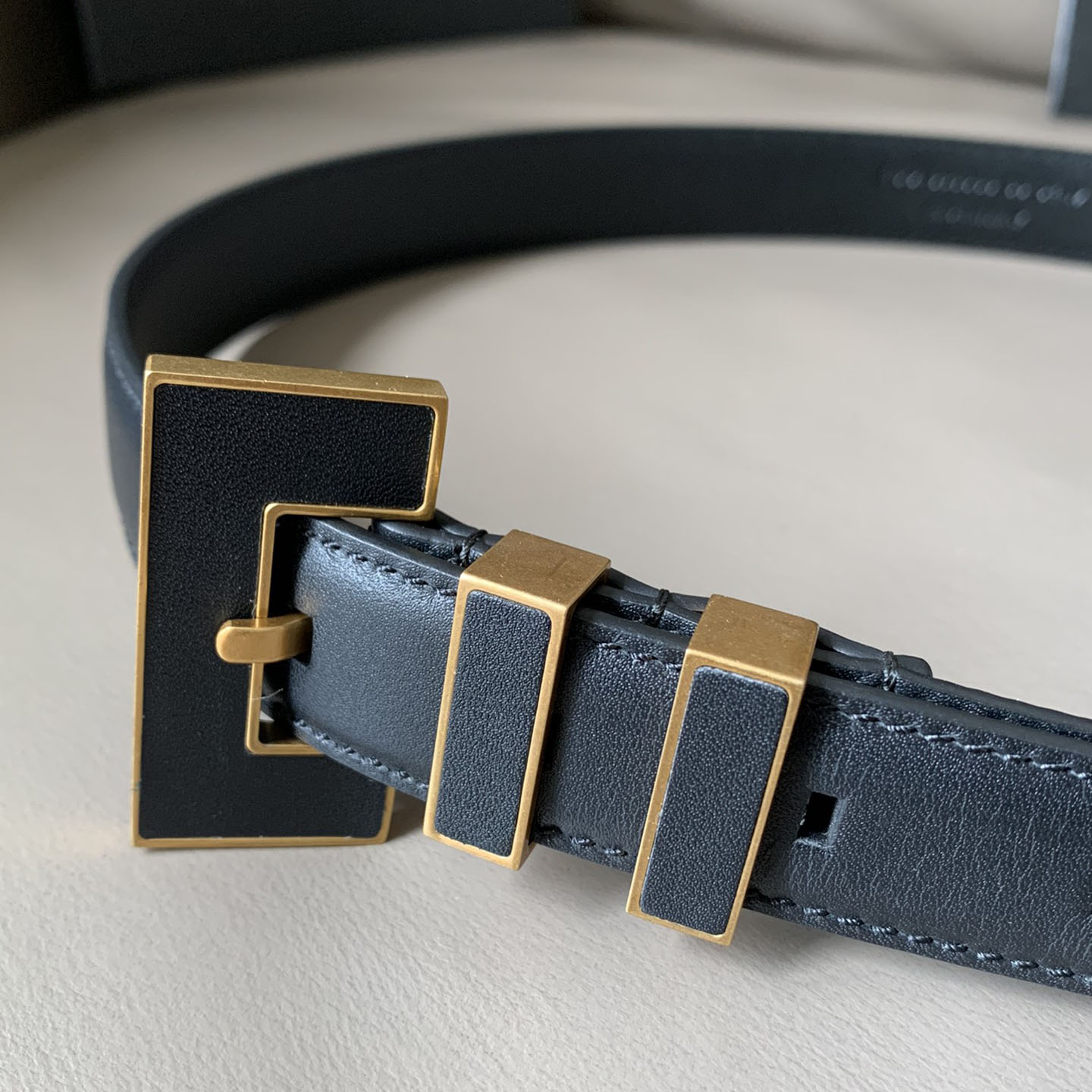 Saint Laurent Carre Rive Gauche Double-Loop Belt In Black Calfskin With Gold/Silver Hardware 25mm