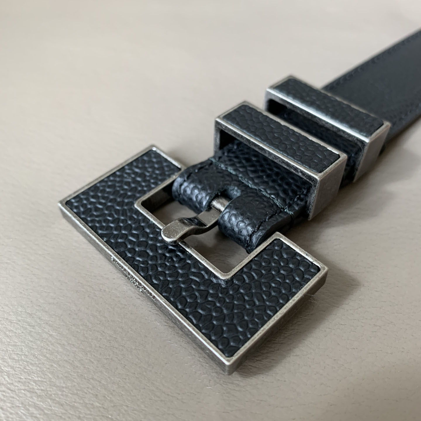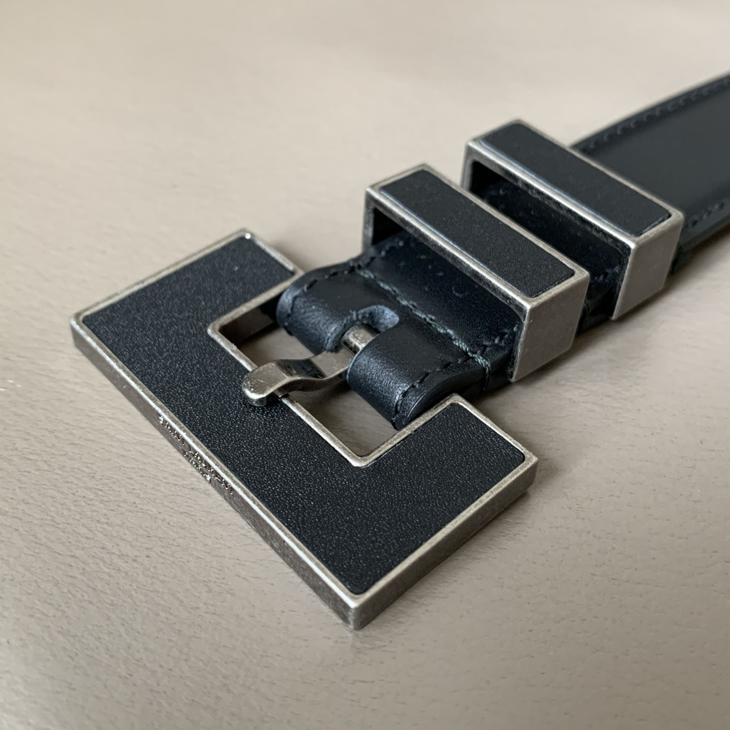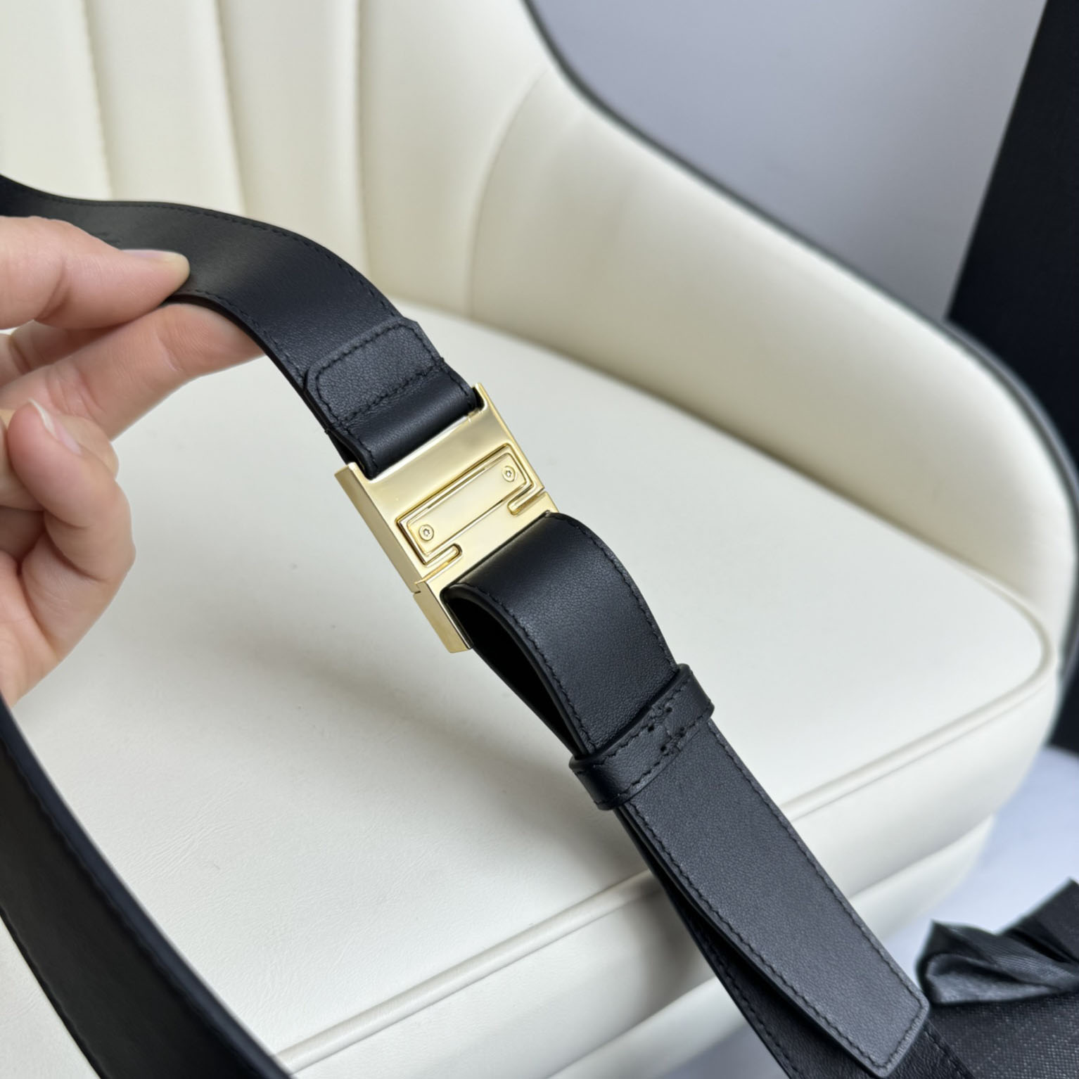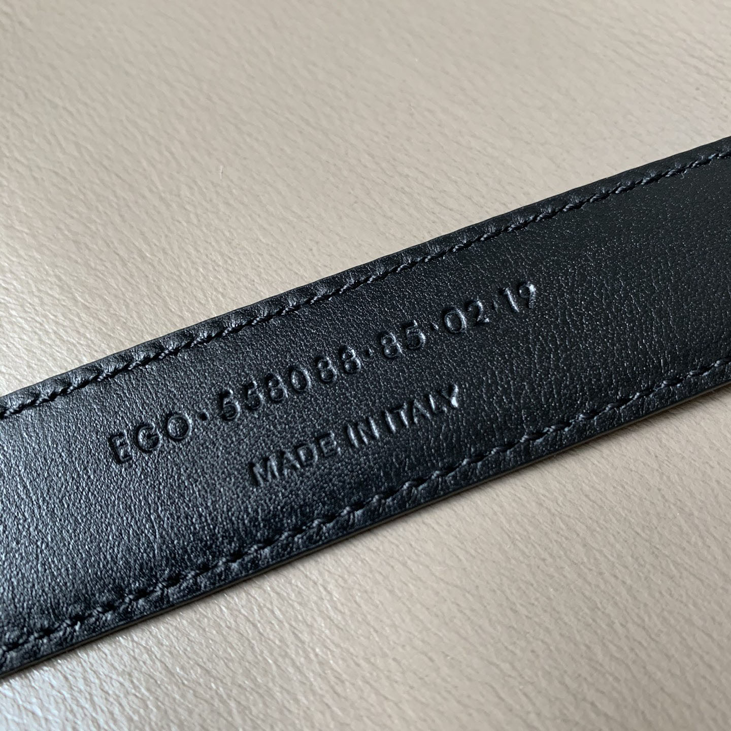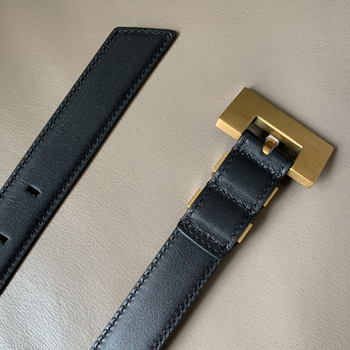 Saint Laurent Carre Rive Gauche Double-Loop Belt In Black Calfskin With Gold/Silver Hardware 25mm