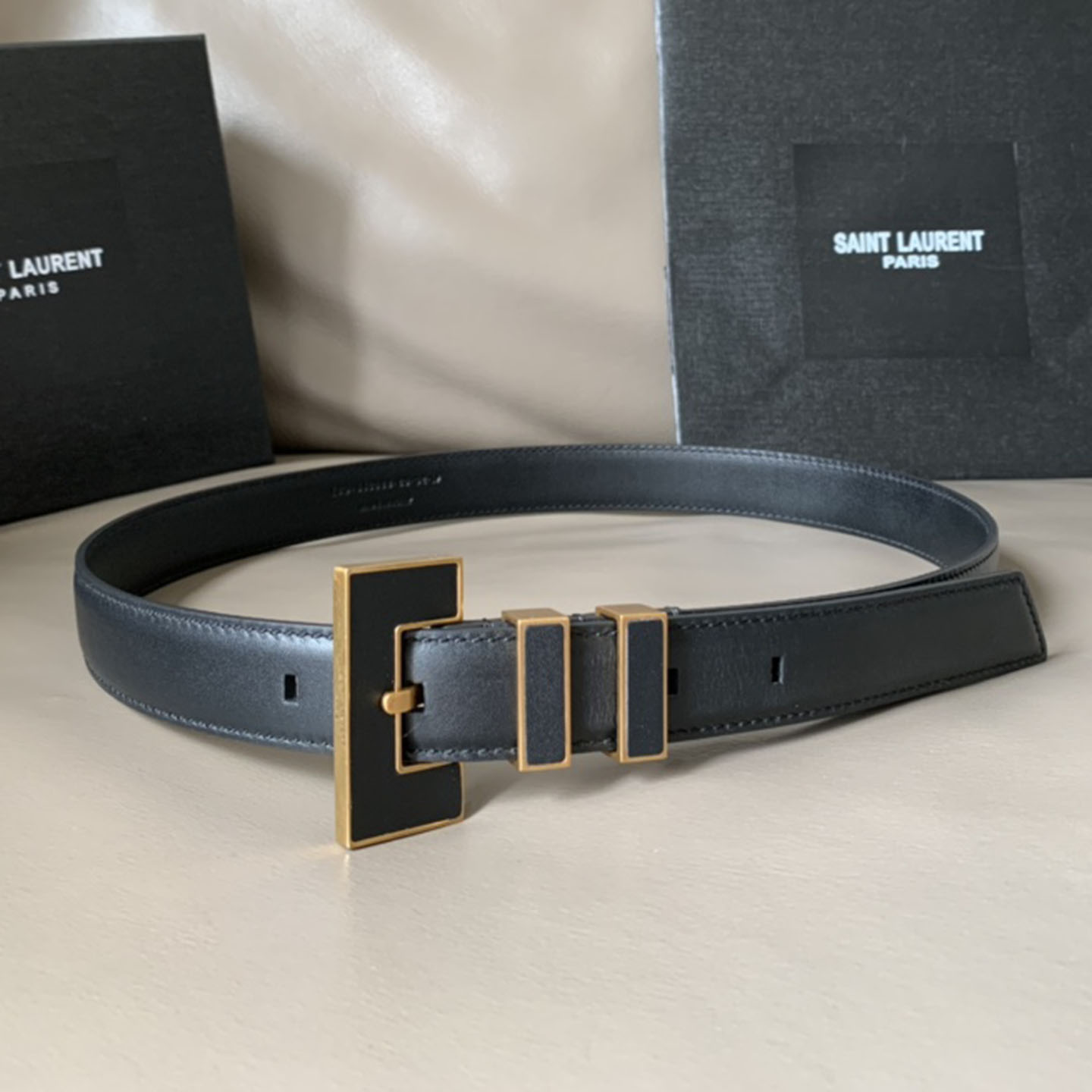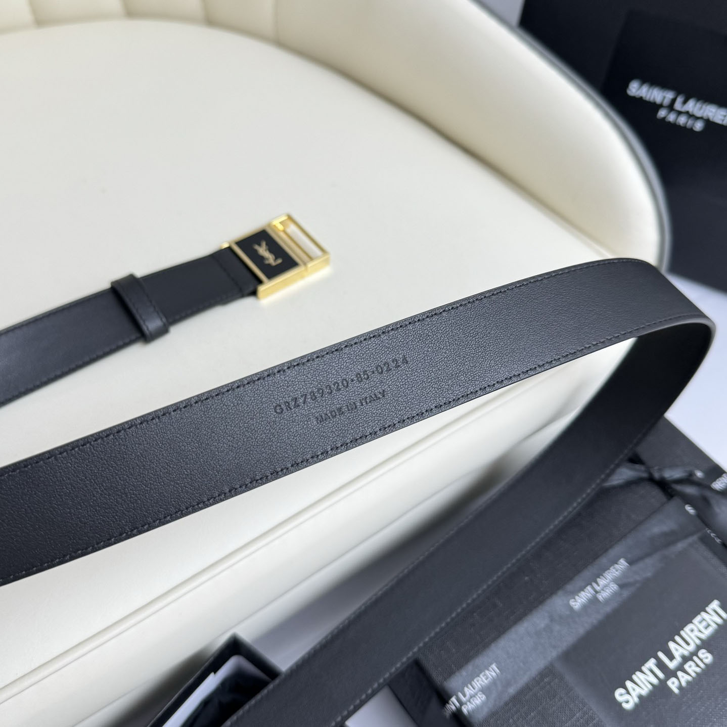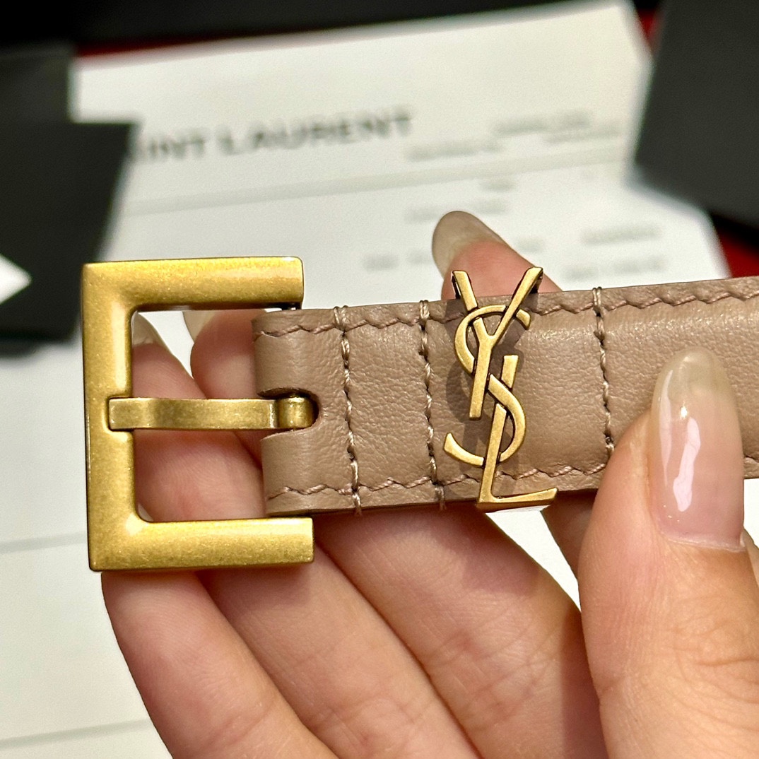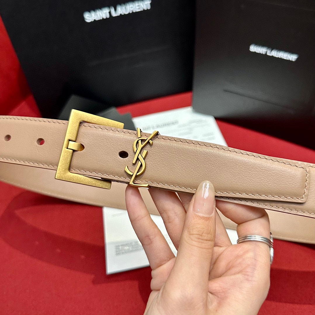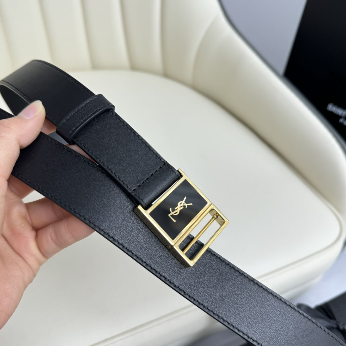 Saint Laurent Cassandre Belt In Black/White/Beige/Pink/Brown Smooth Calfskin With Gold Hardware 30mm