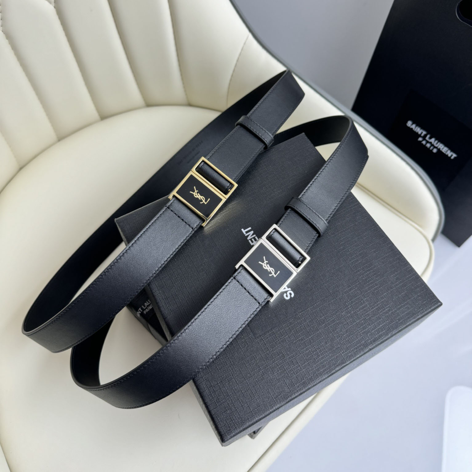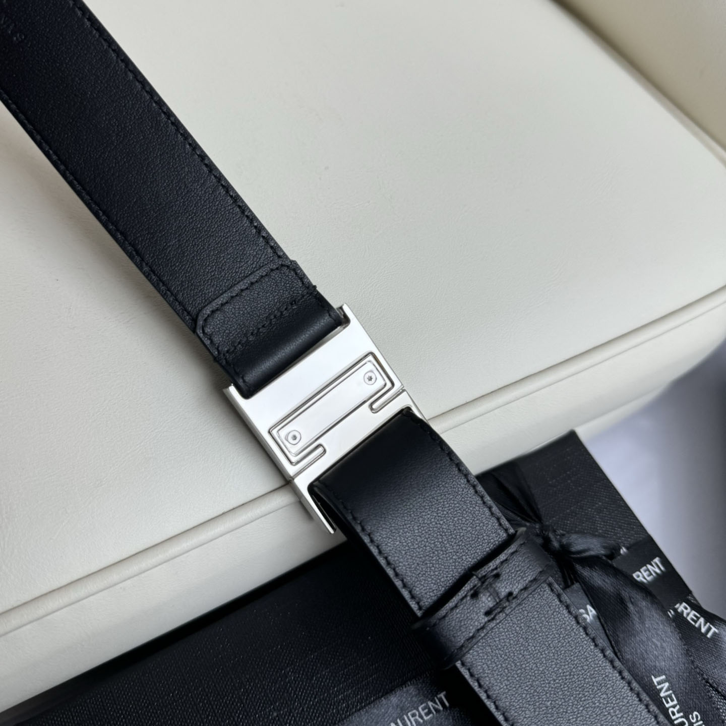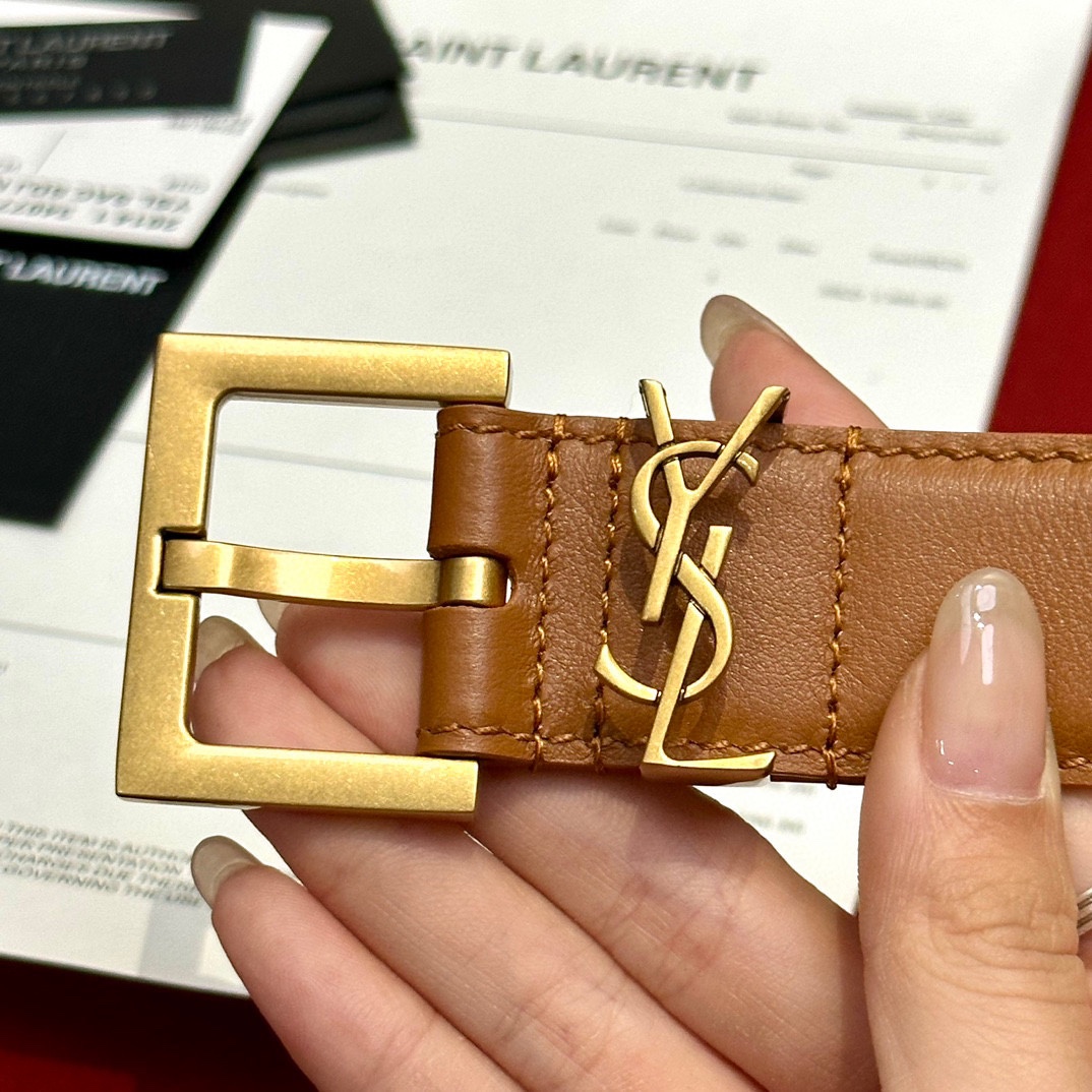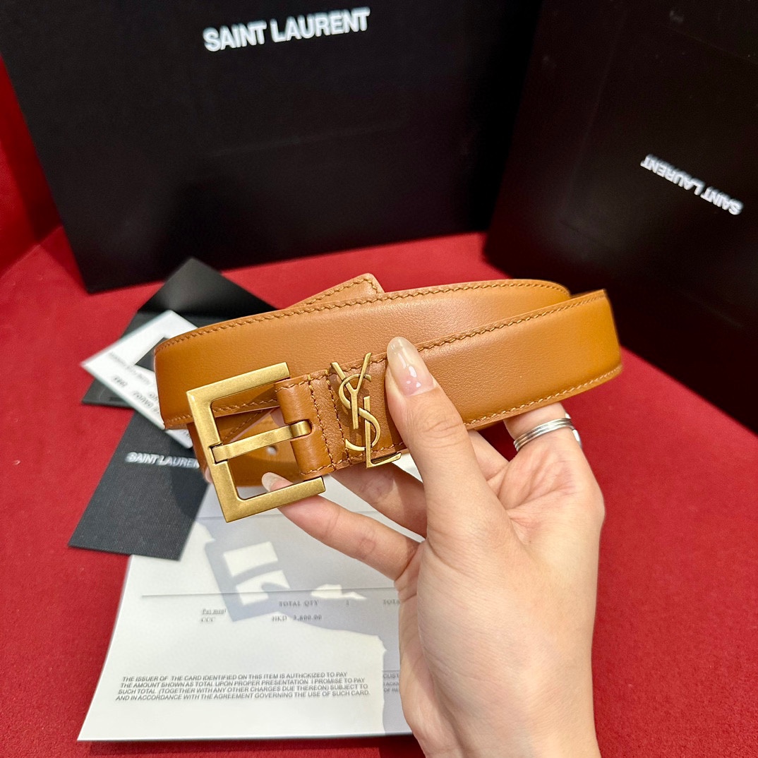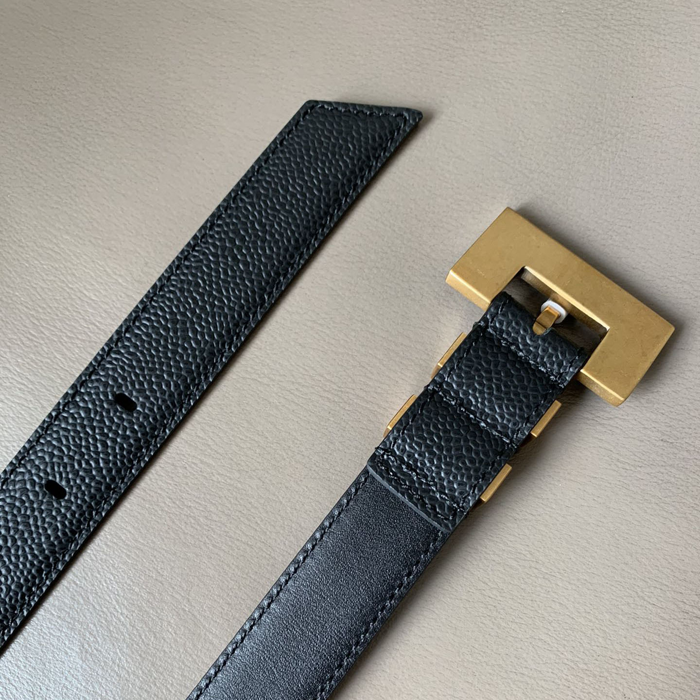 Saint Laurent Cassandre Belt In Black/White/Beige/Pink/Brown Smooth Calfskin With Gold Hardware 30mm