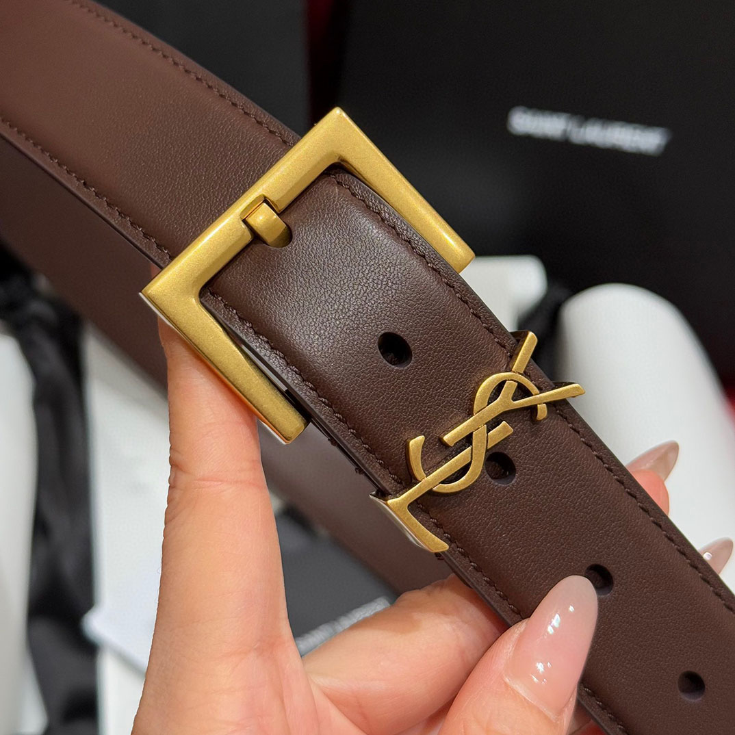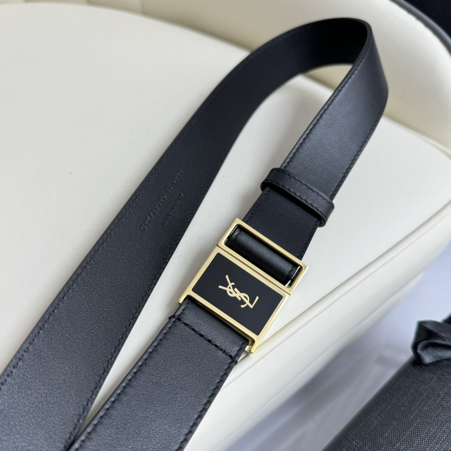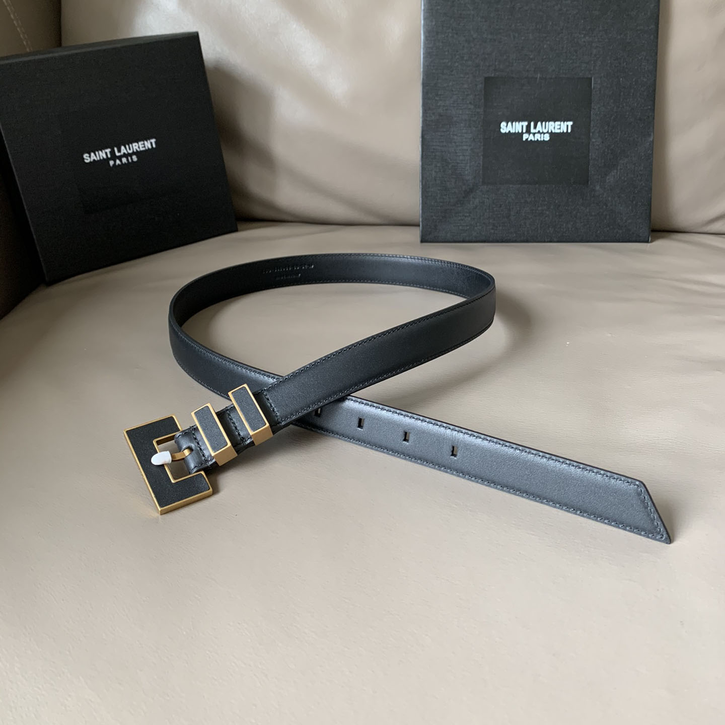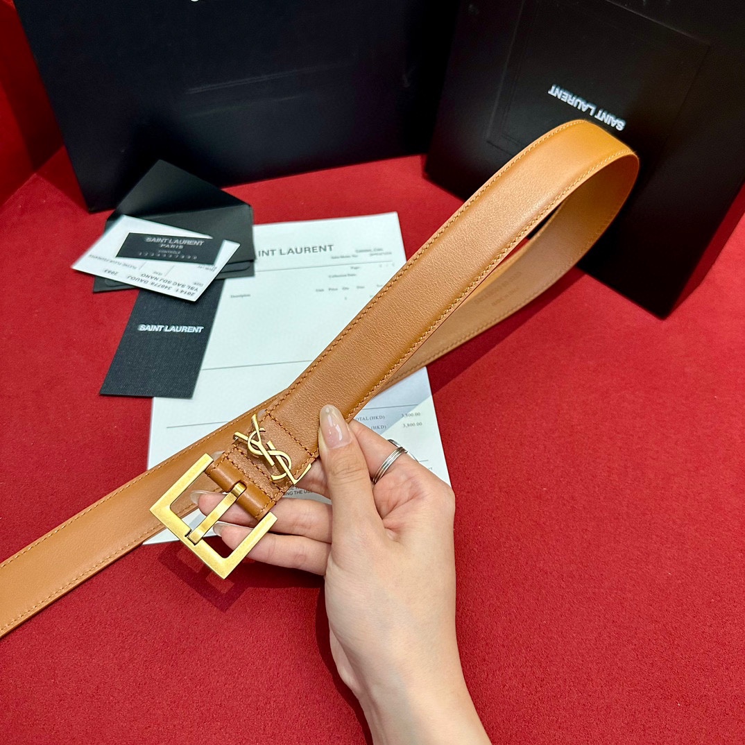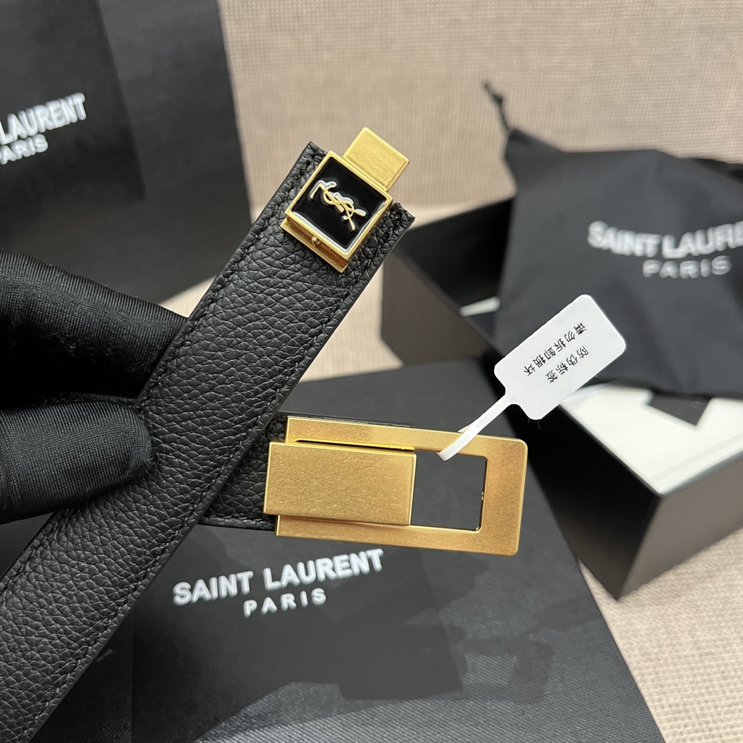 Saint Laurent Cassandre Belt In Black/White/Beige/Pink/Brown Smooth Calfskin With Gold Hardware 30mm