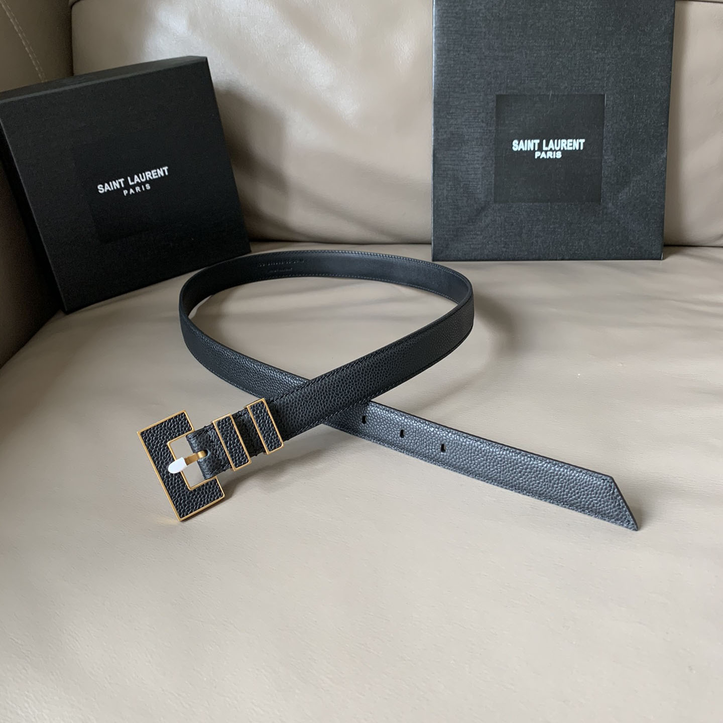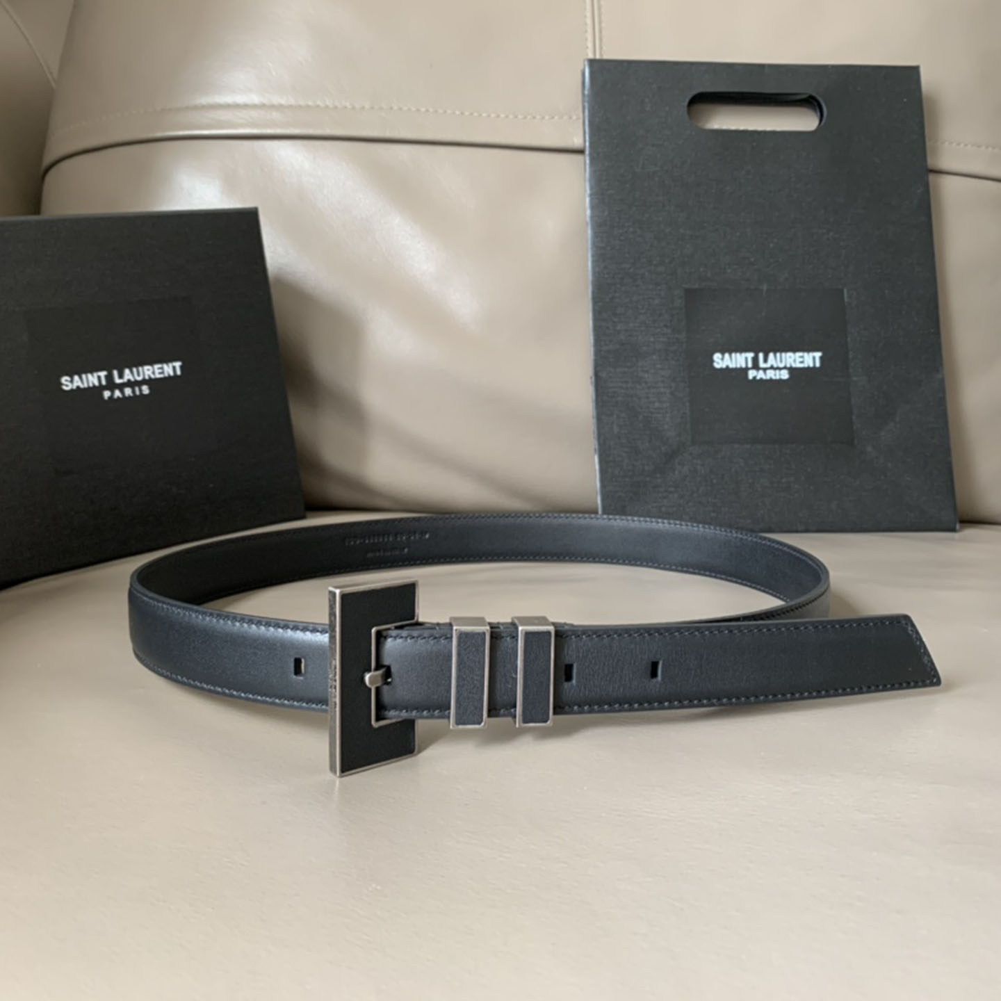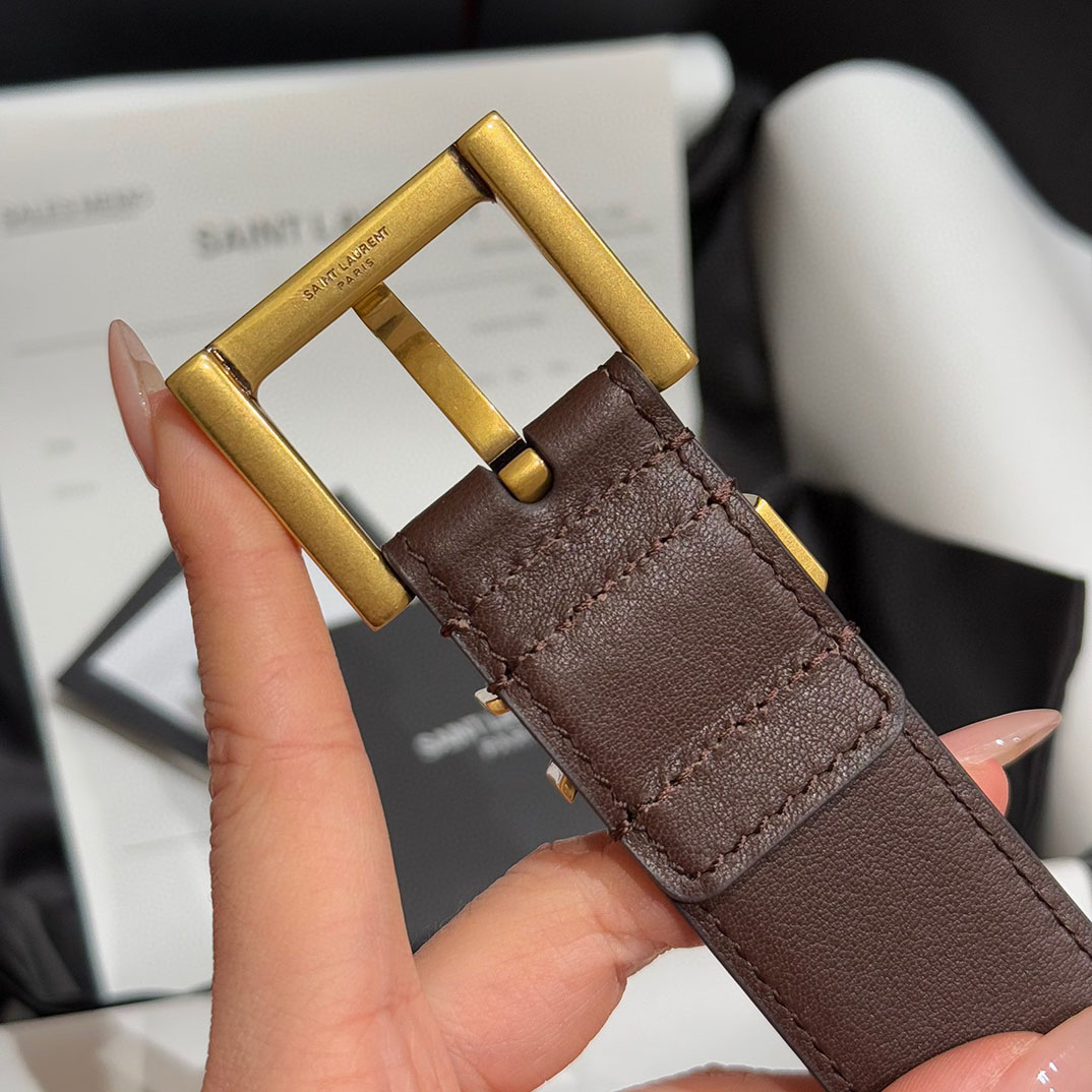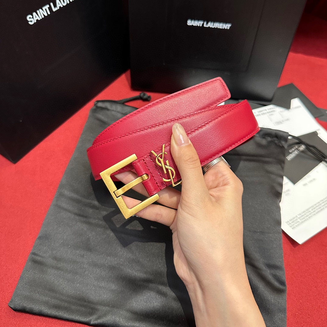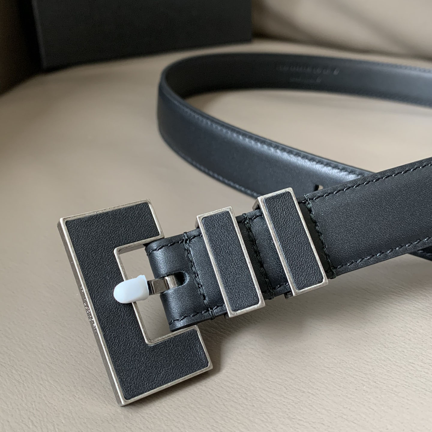Saint Laurent Cassandre Belt In Black/White/Beige/Pink/Brown Smooth Calfskin With Gold Hardware 30mm