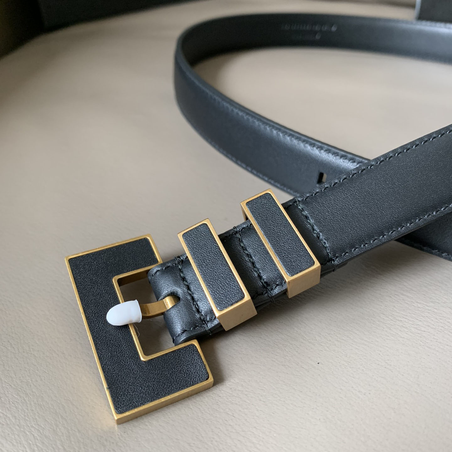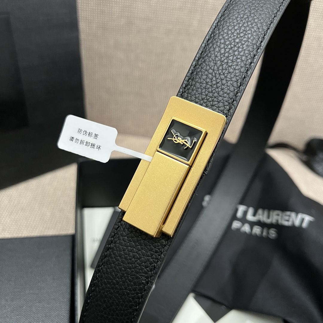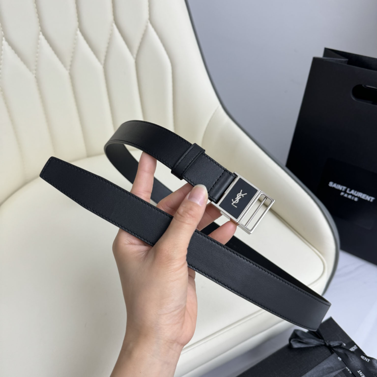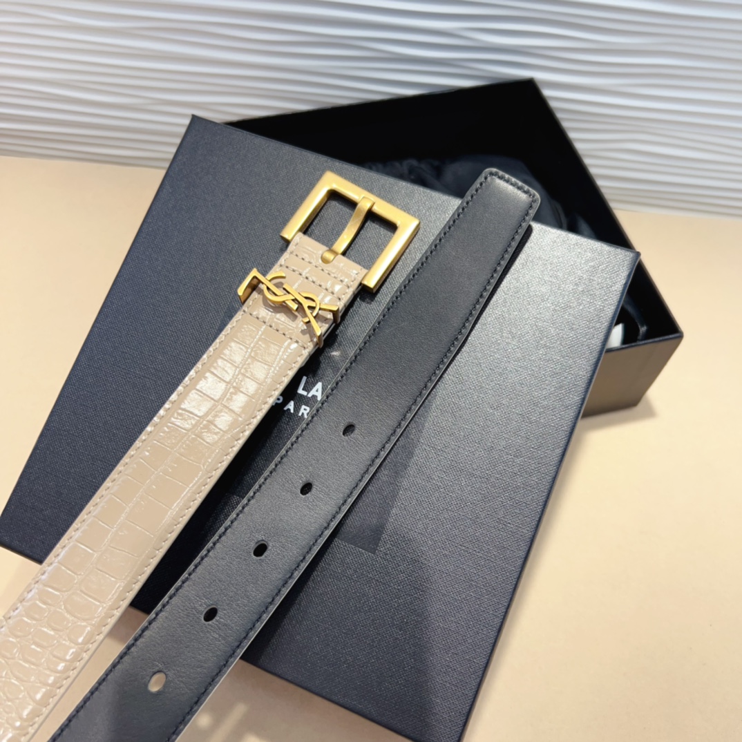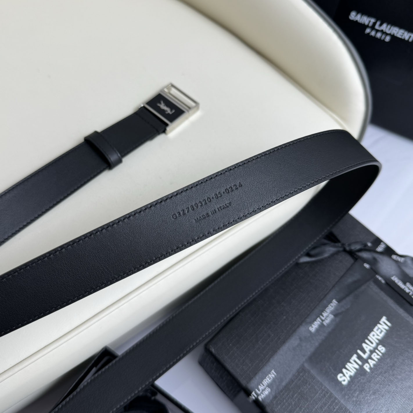 Saint Laurent Cassandre Belt In Black/White/Beige/Pink/Brown Smooth Calfskin With Gold Hardware 30mm
