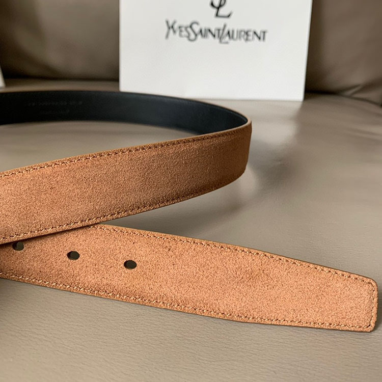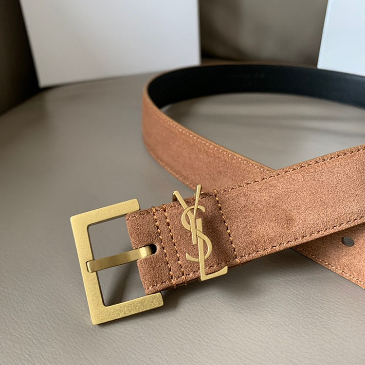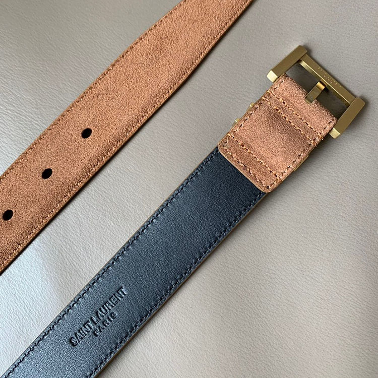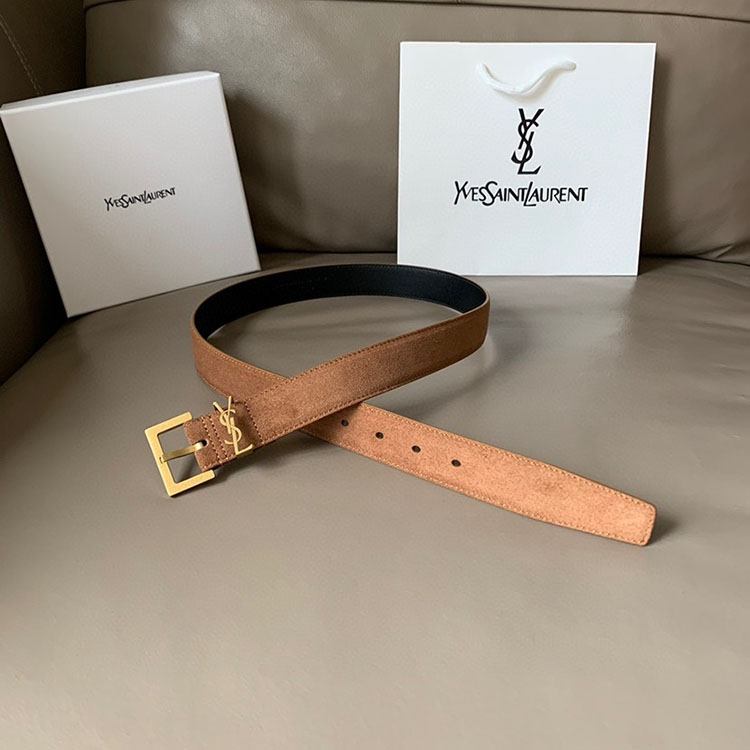 Saint Laurent Cassandre Belt In Brown Suede Leather With Gold Hardware 30mm