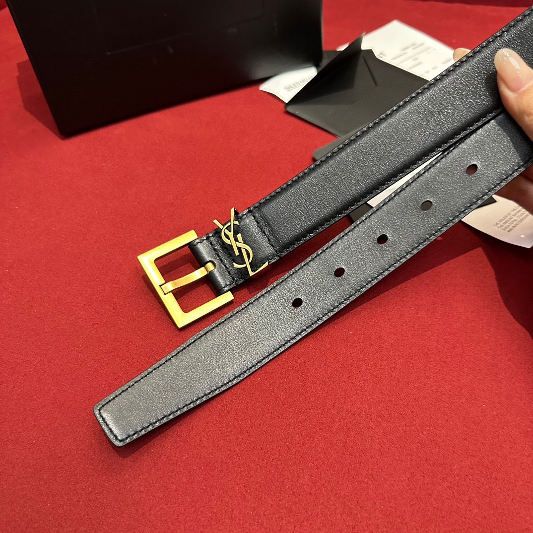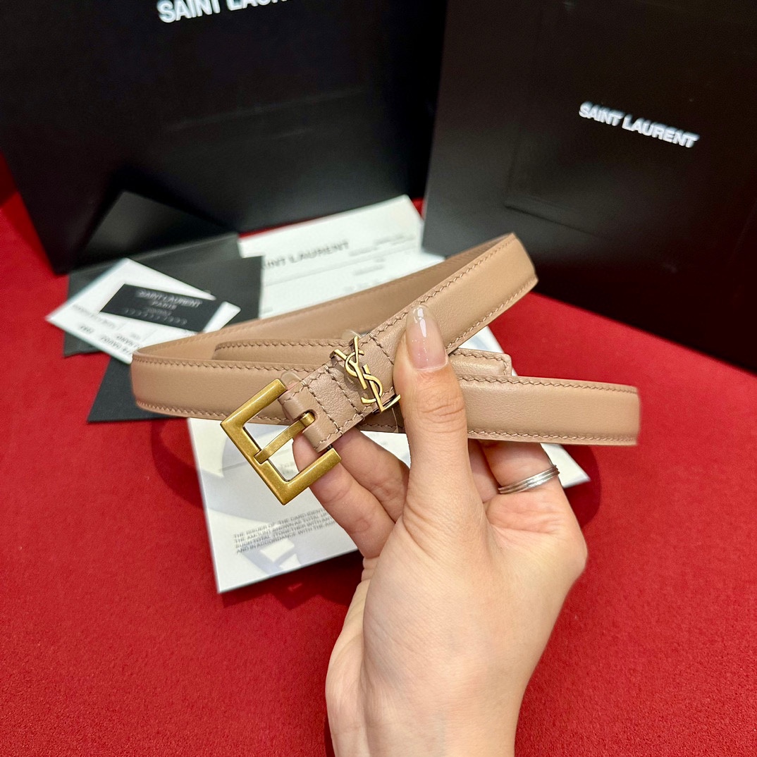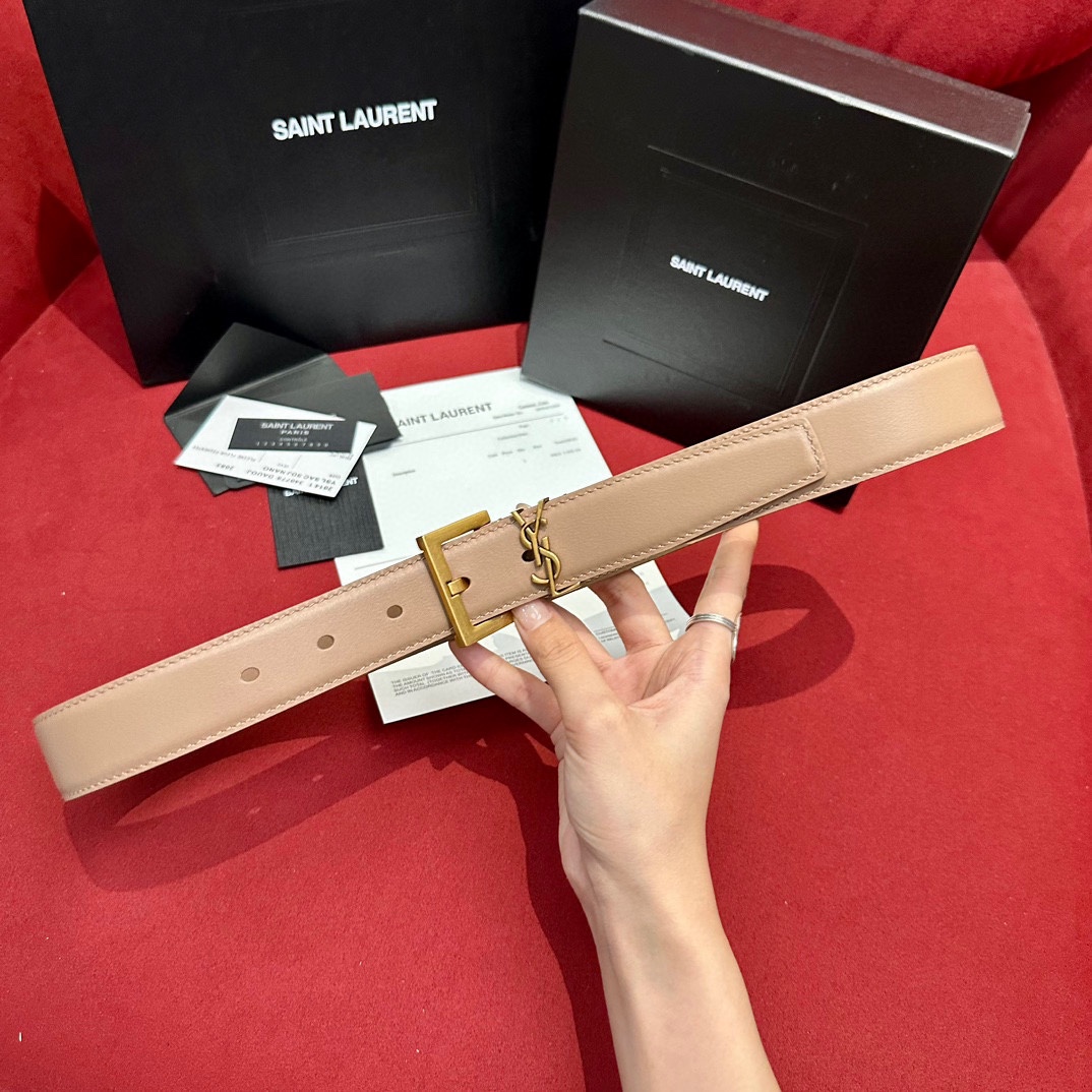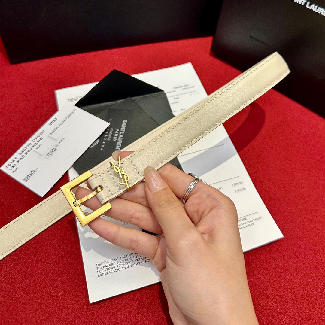 Saint Laurent Cassandre Belt In Black/White/Beige/Pink/Brown Smooth Calfskin With Gold Hardware 20mm