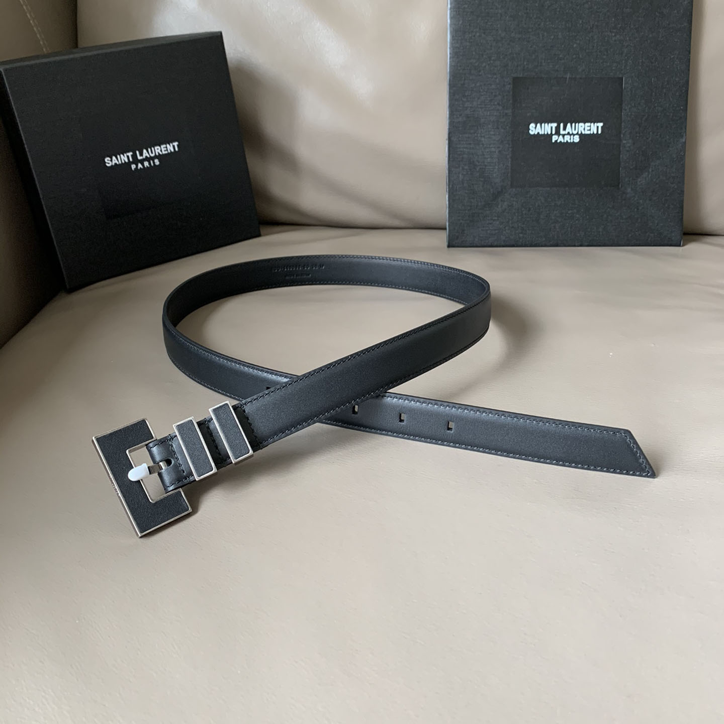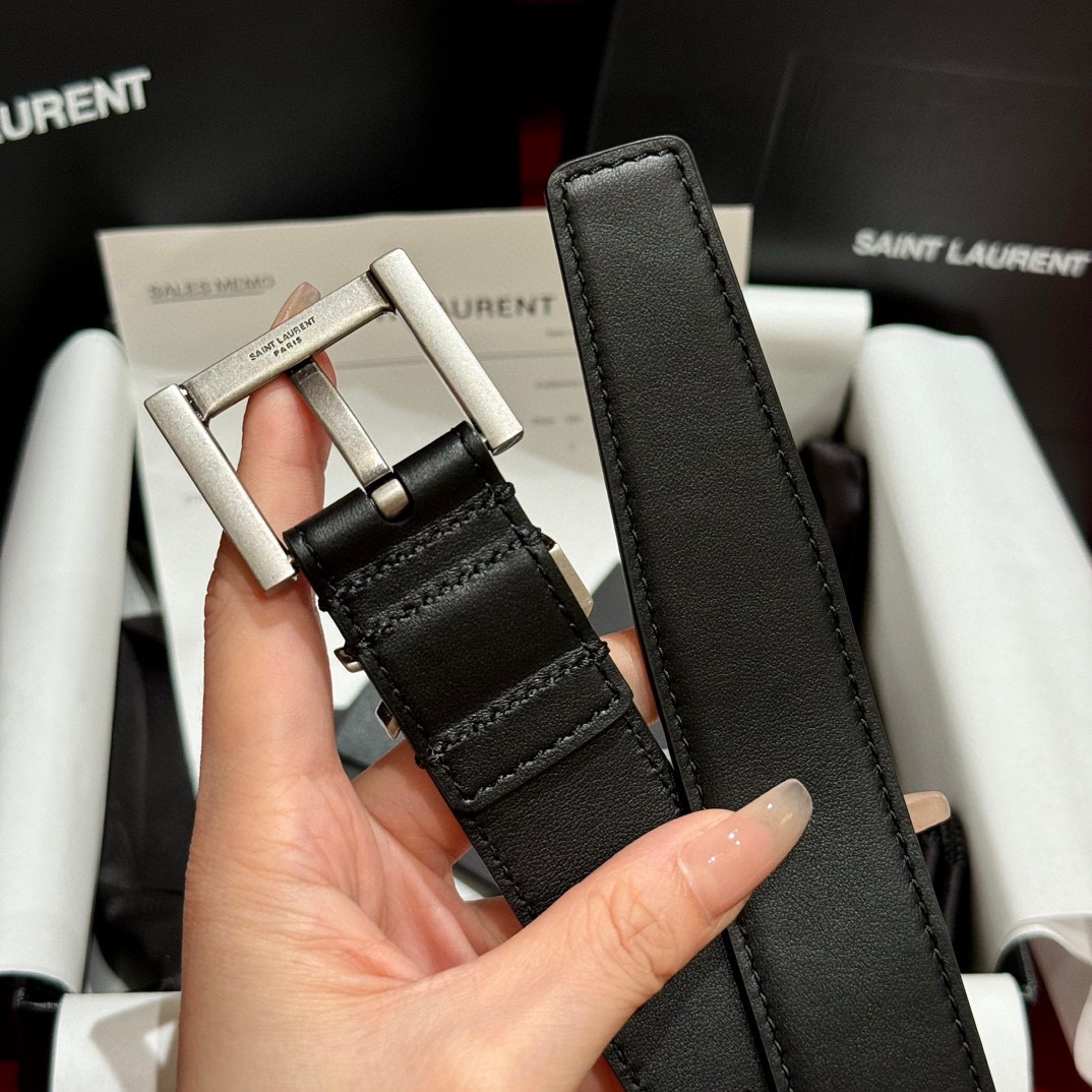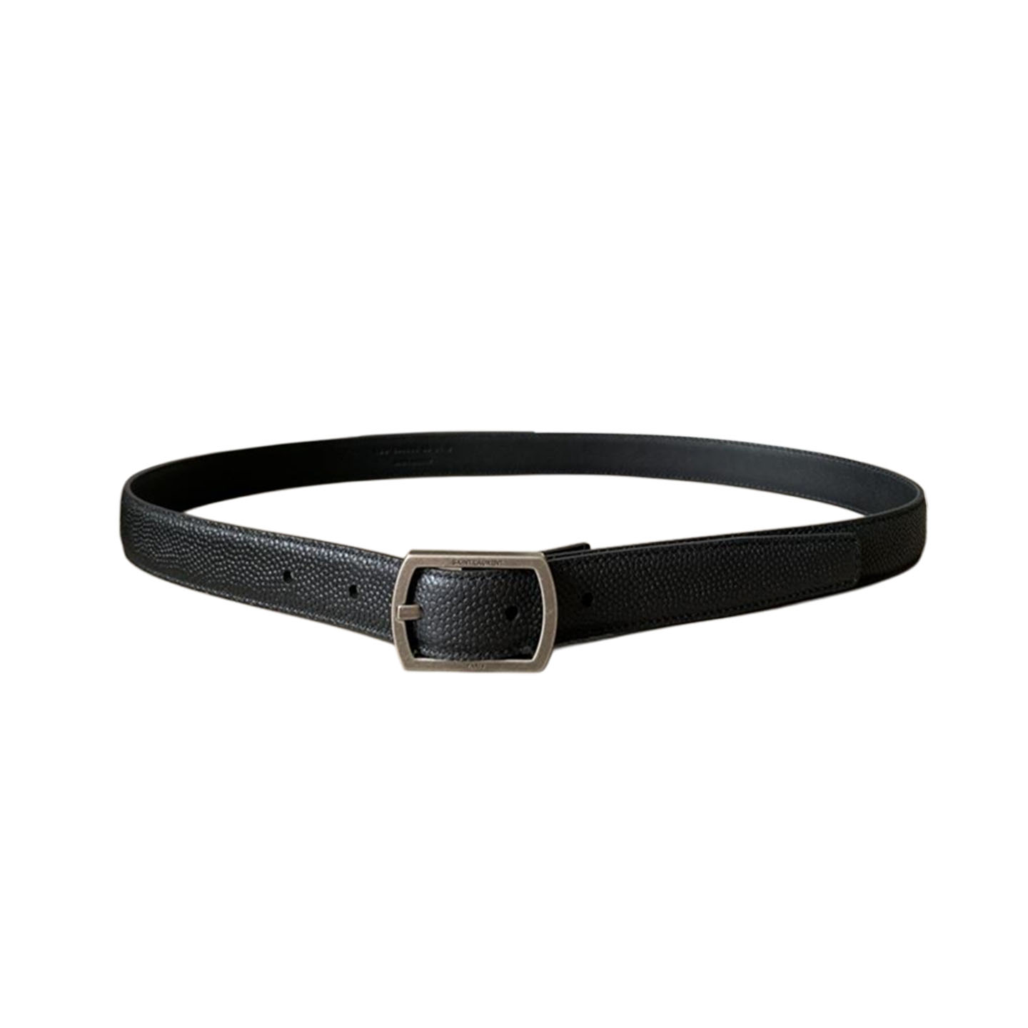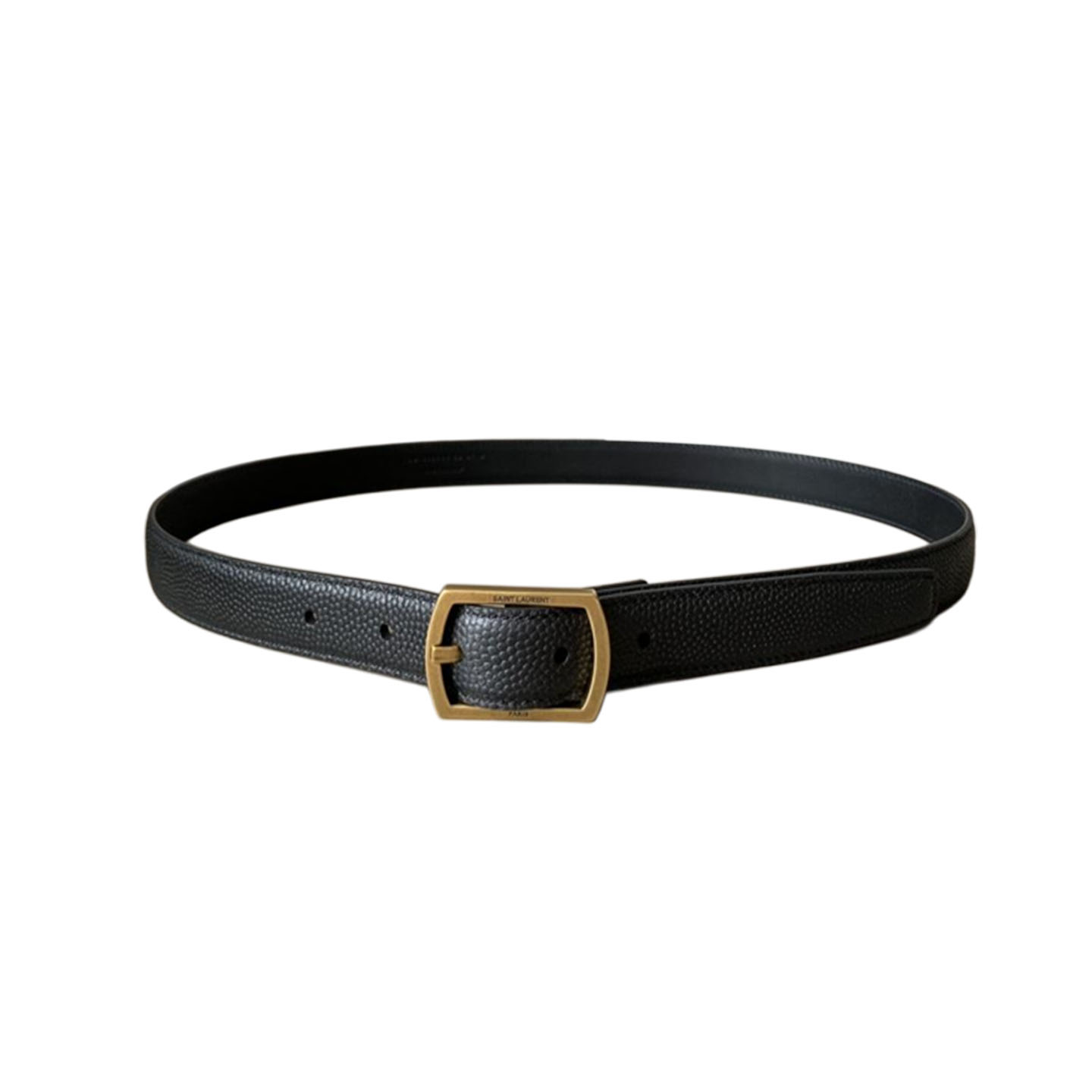 Saint Laurent Paved Buckle Belt In Black Calfskin With Gold/Silver Hardware 25mm
