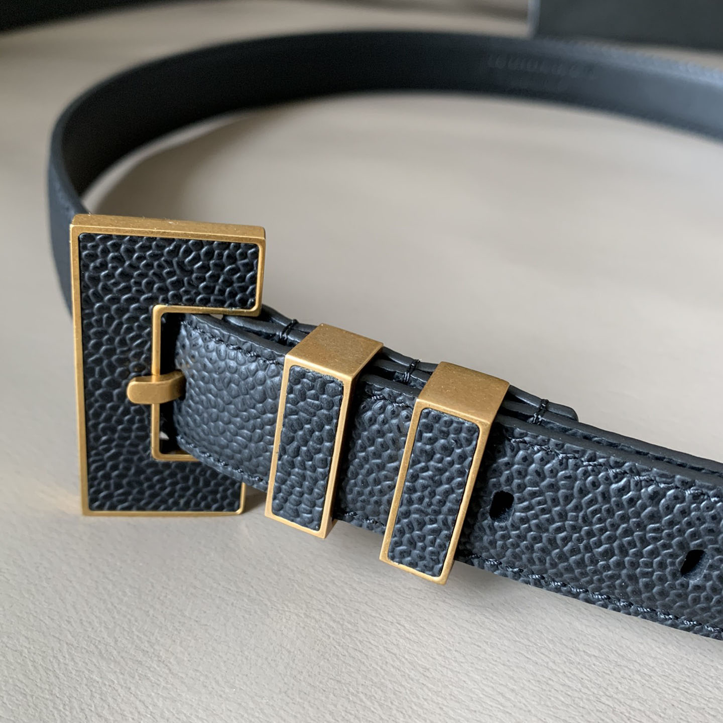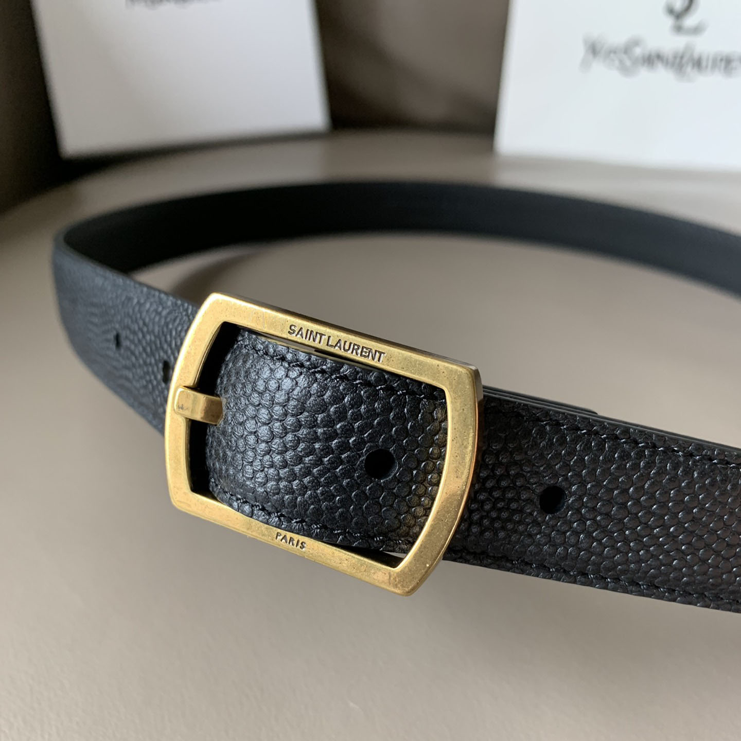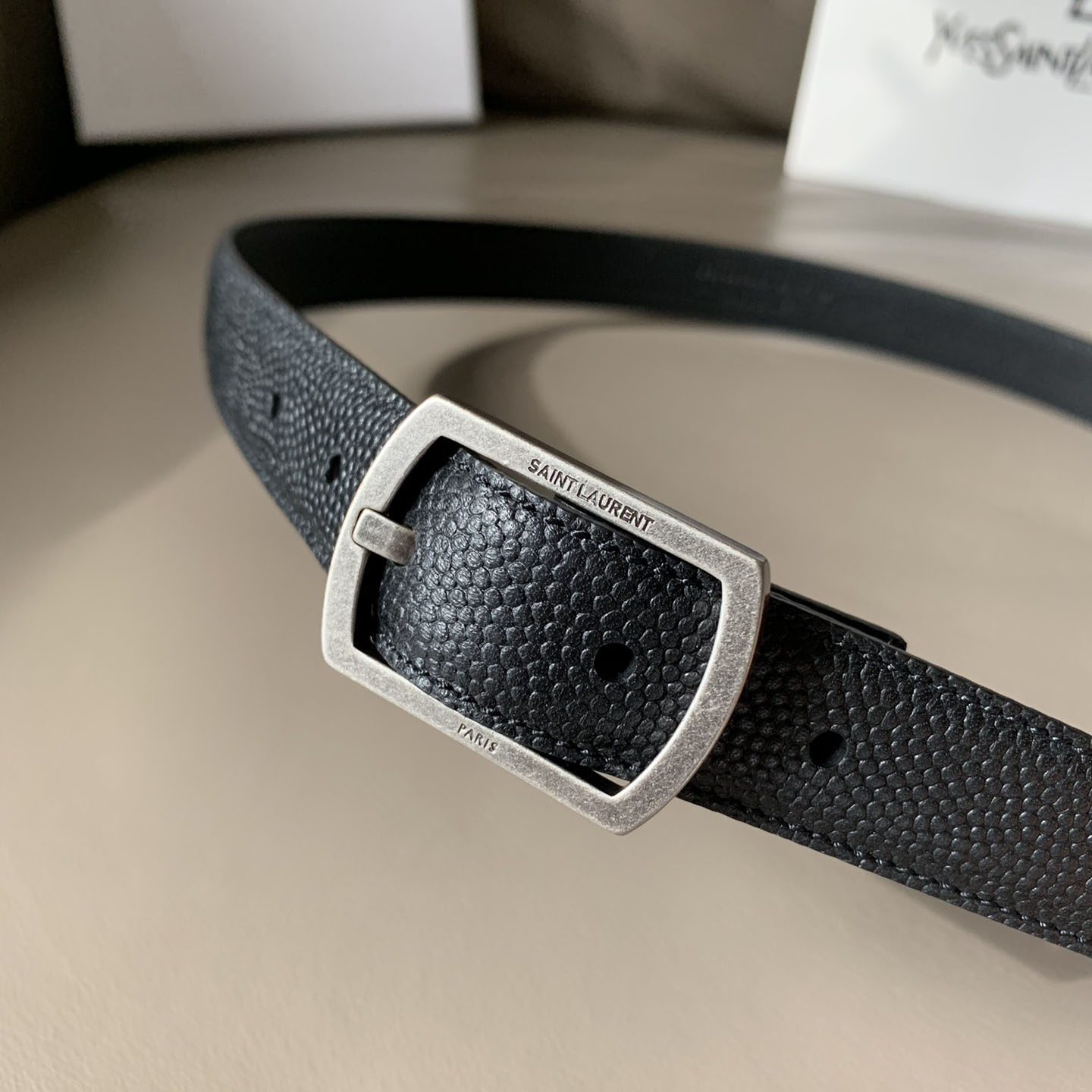 Saint Laurent Paved Buckle Belt In Black Calfskin With Gold/Silver Hardware 25mm