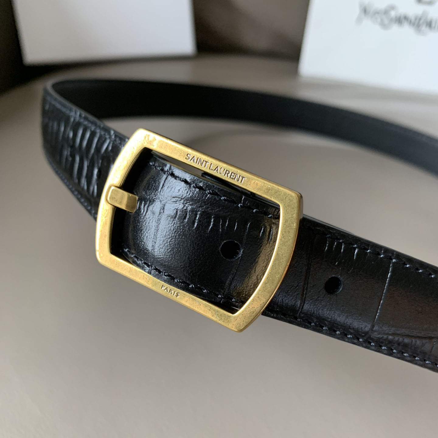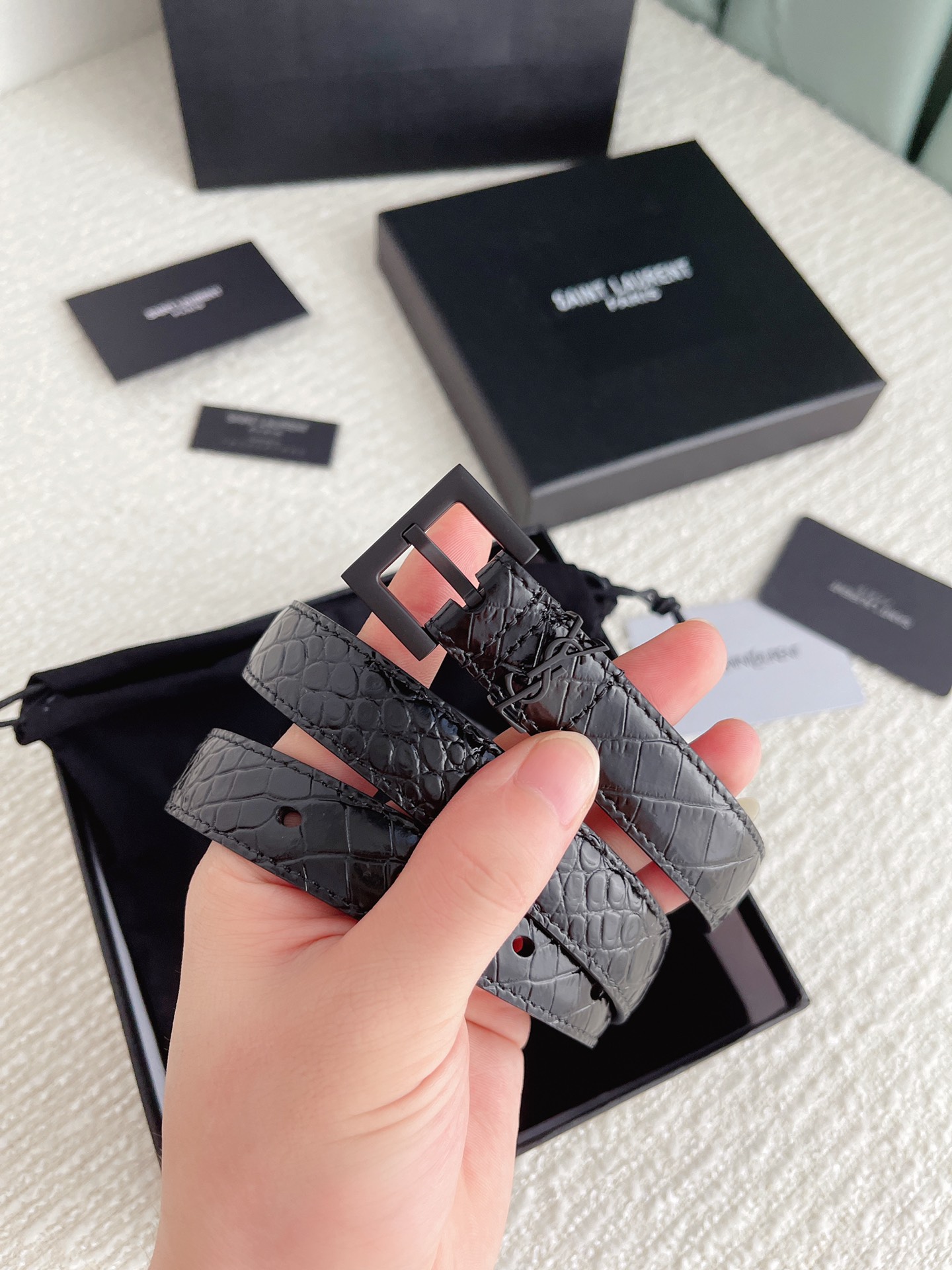 Saint Laurent Cassandre Belt In Black Crocodile-Embossed Calfskin With Gold/Silver/Black Hardware 20mm