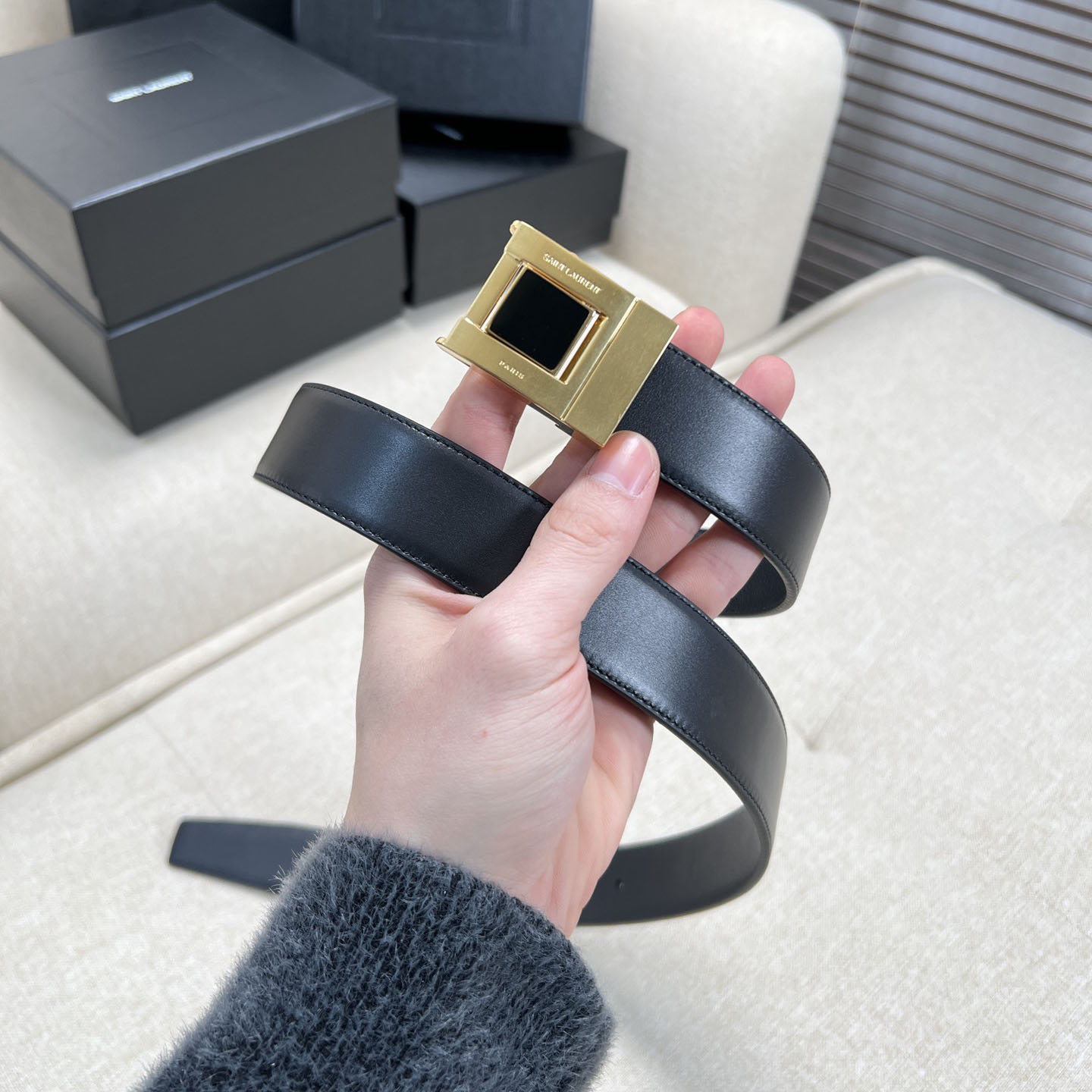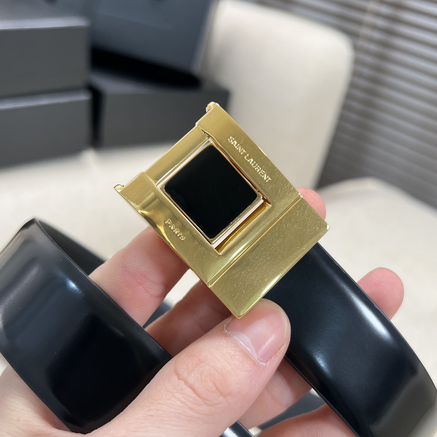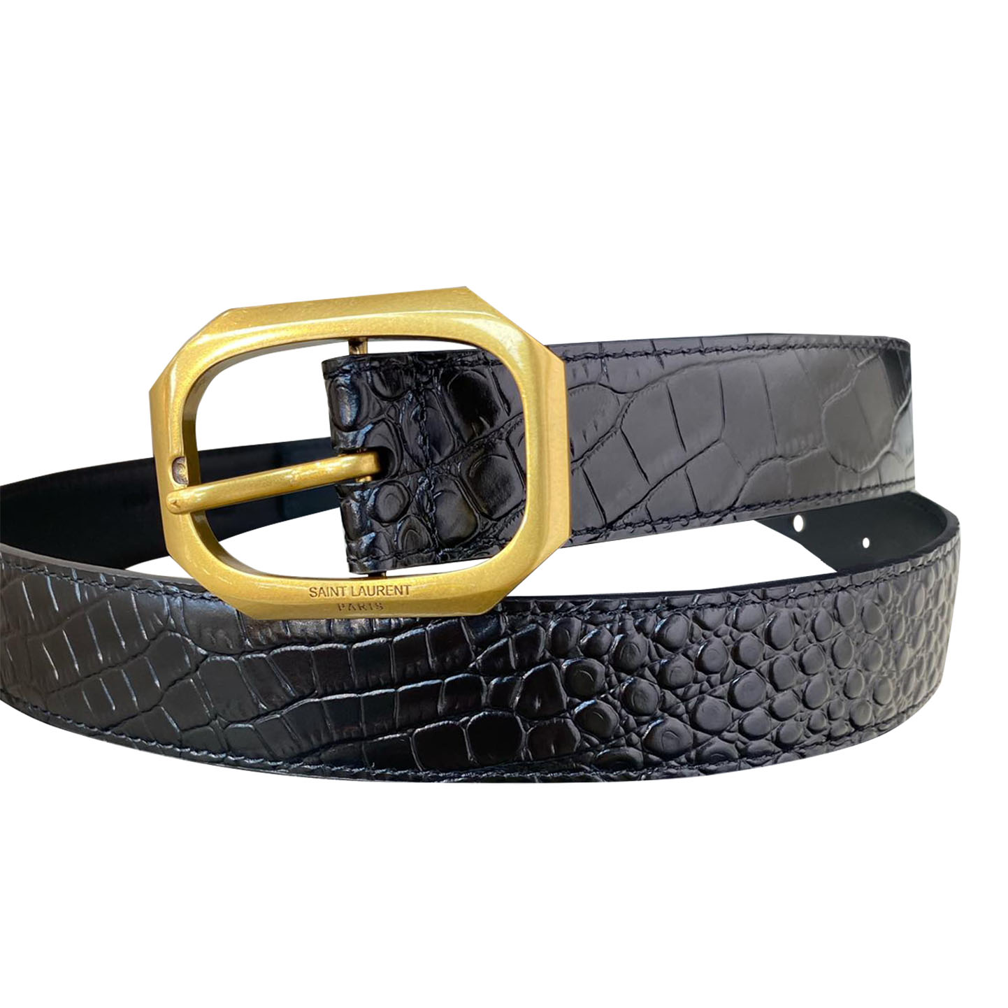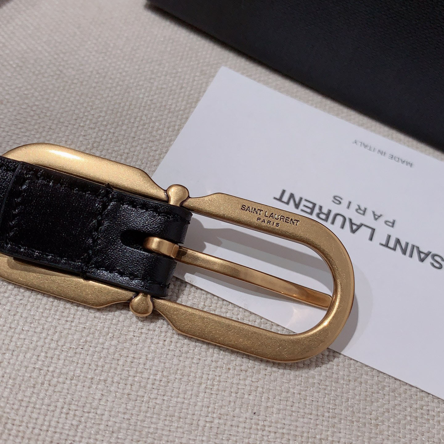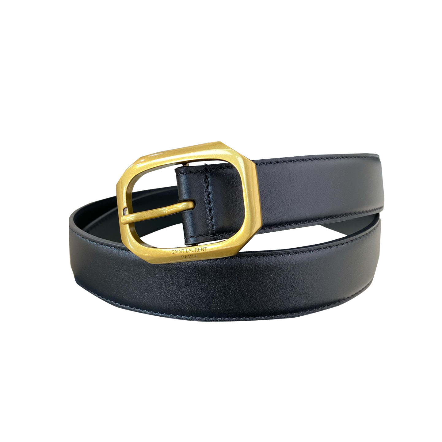 Saint Laurent LA 66 Buckle Belt In Black Calfskin With Gold Hardware 30mm