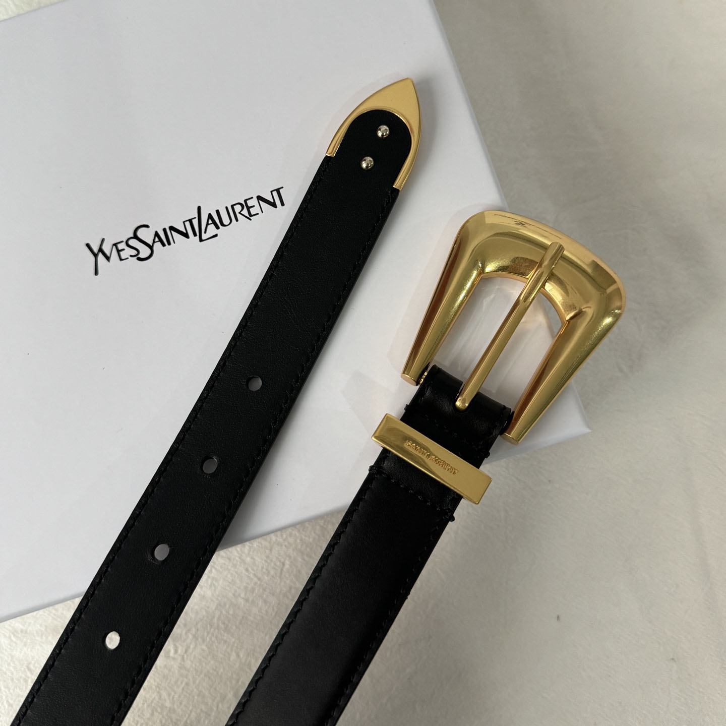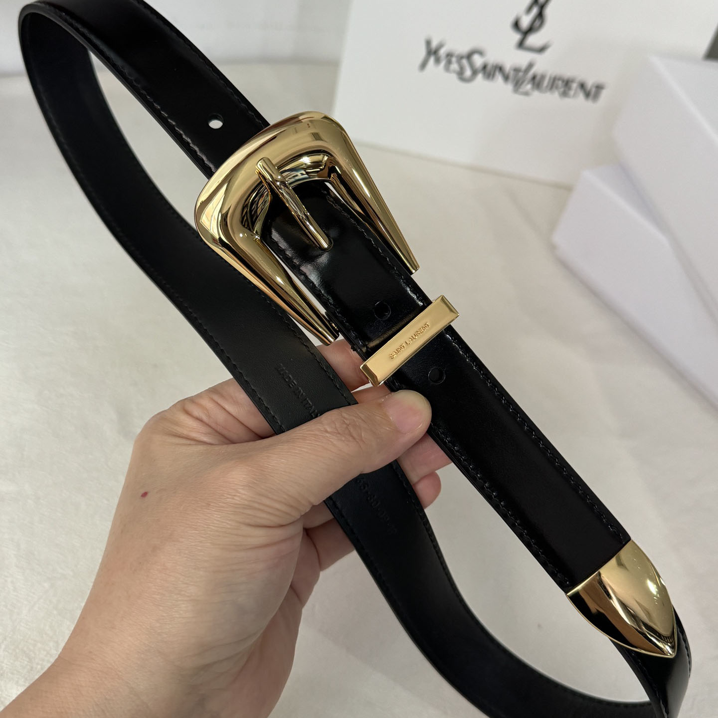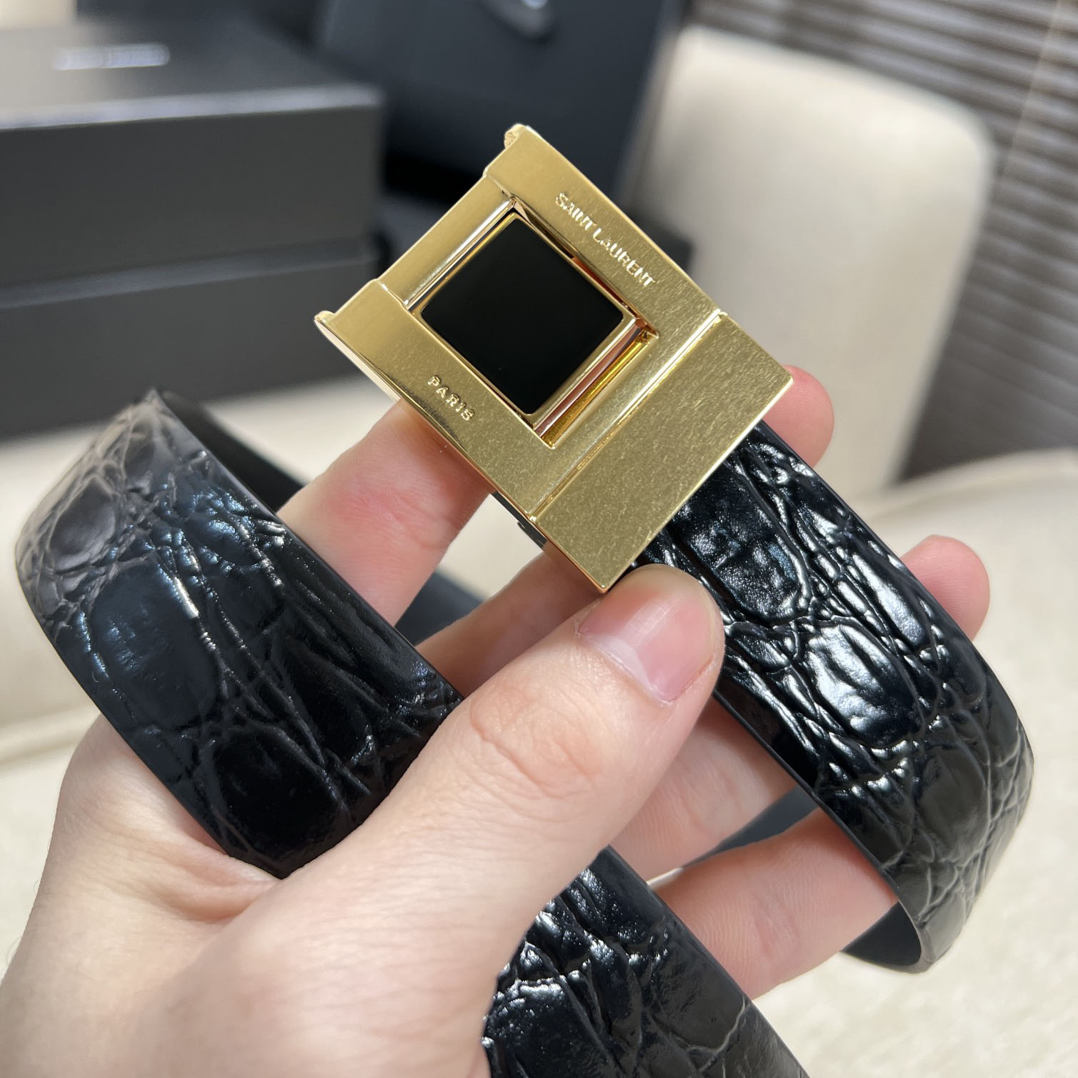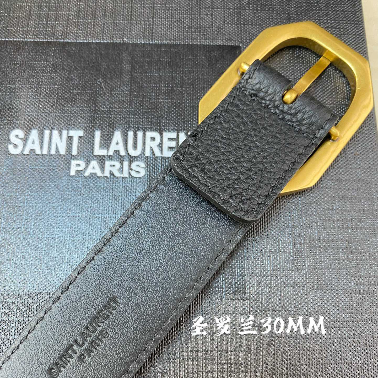Saint Laurent LA 66 Buckle Belt In Black Calfskin With Gold Hardware 30mm