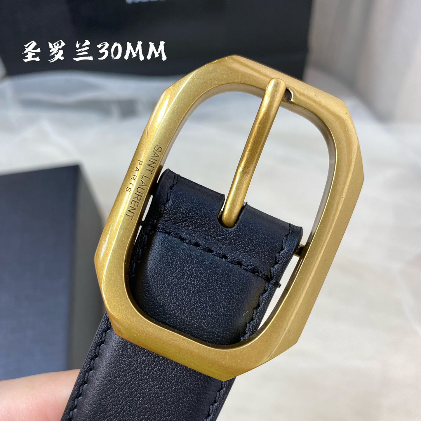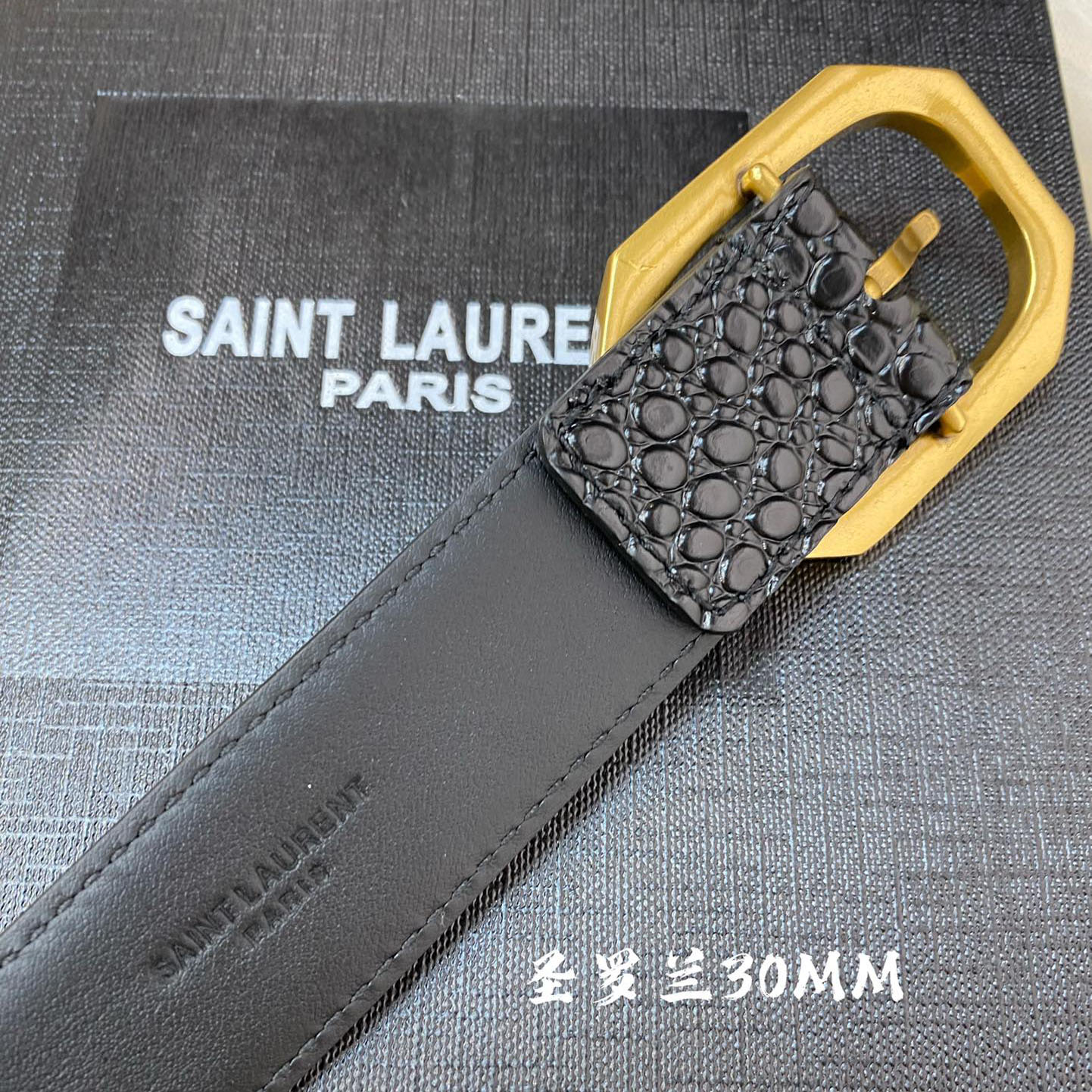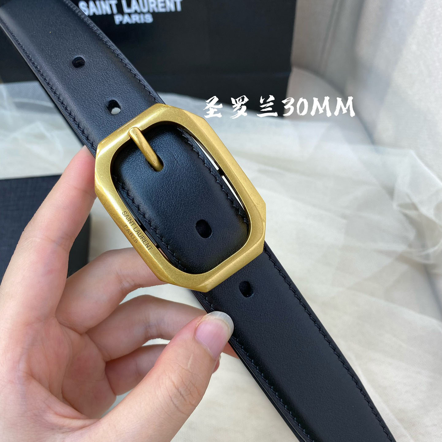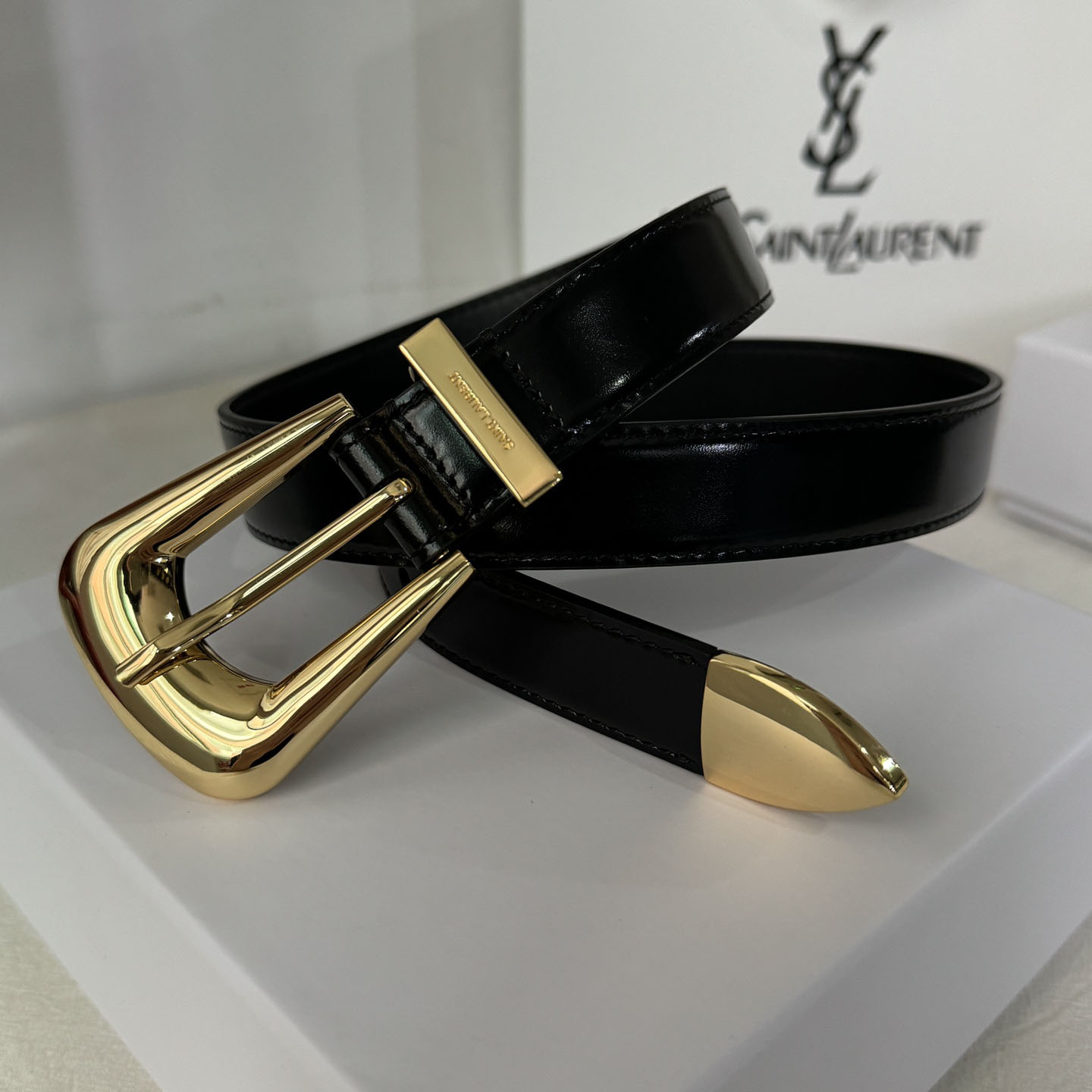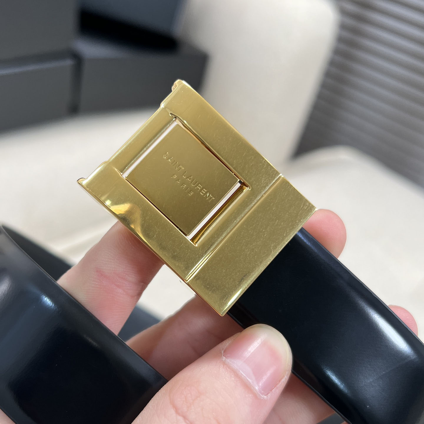 Saint Laurent LA 66 Buckle Belt In Black Calfskin With Gold Hardware 30mm