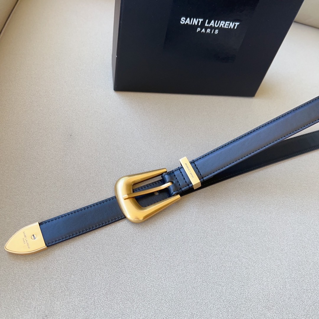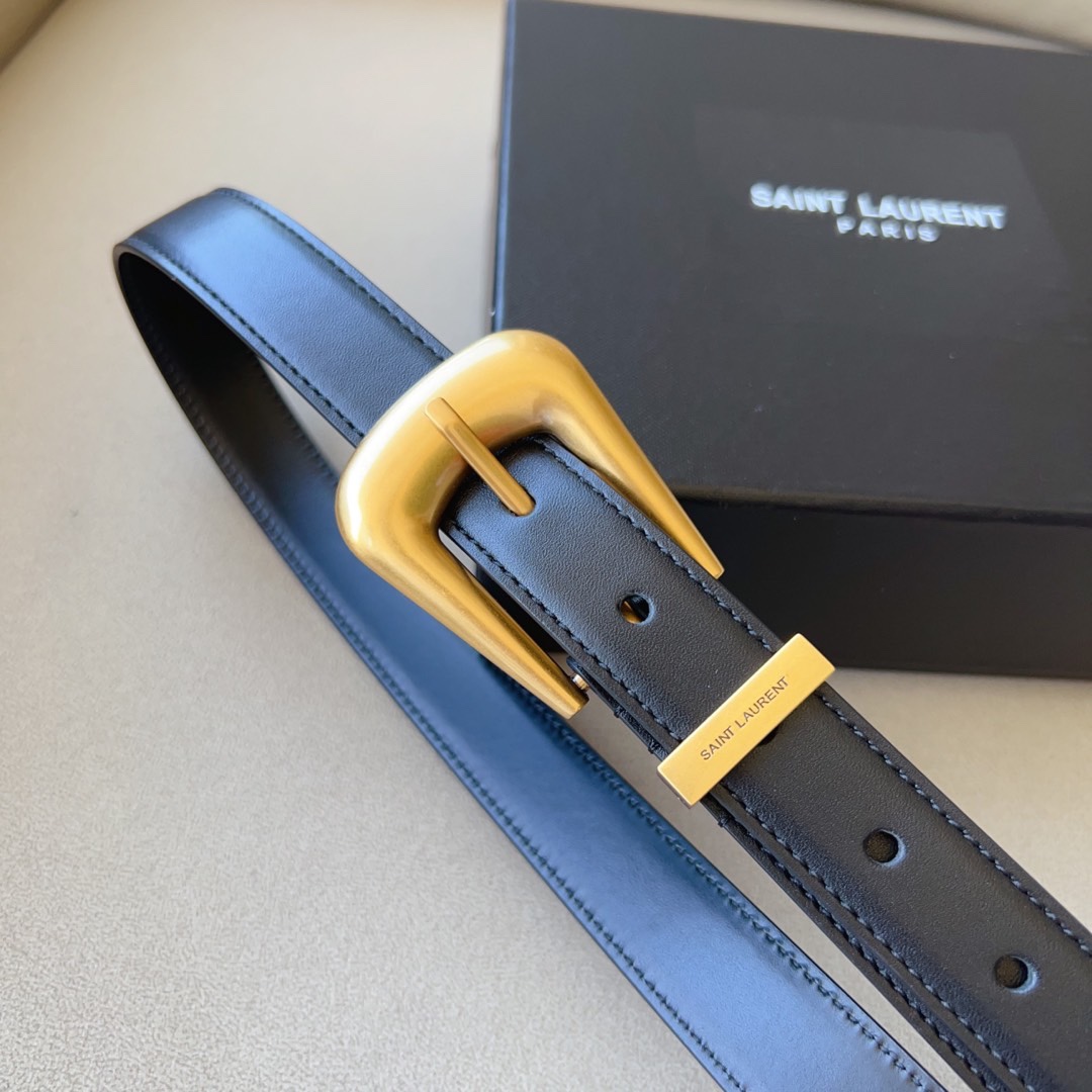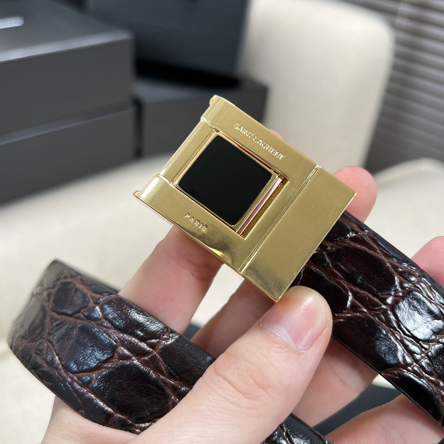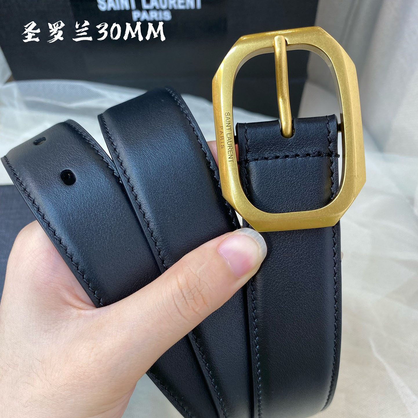 Saint Laurent LA 66 Buckle Belt In Black Calfskin With Gold Hardware 30mm