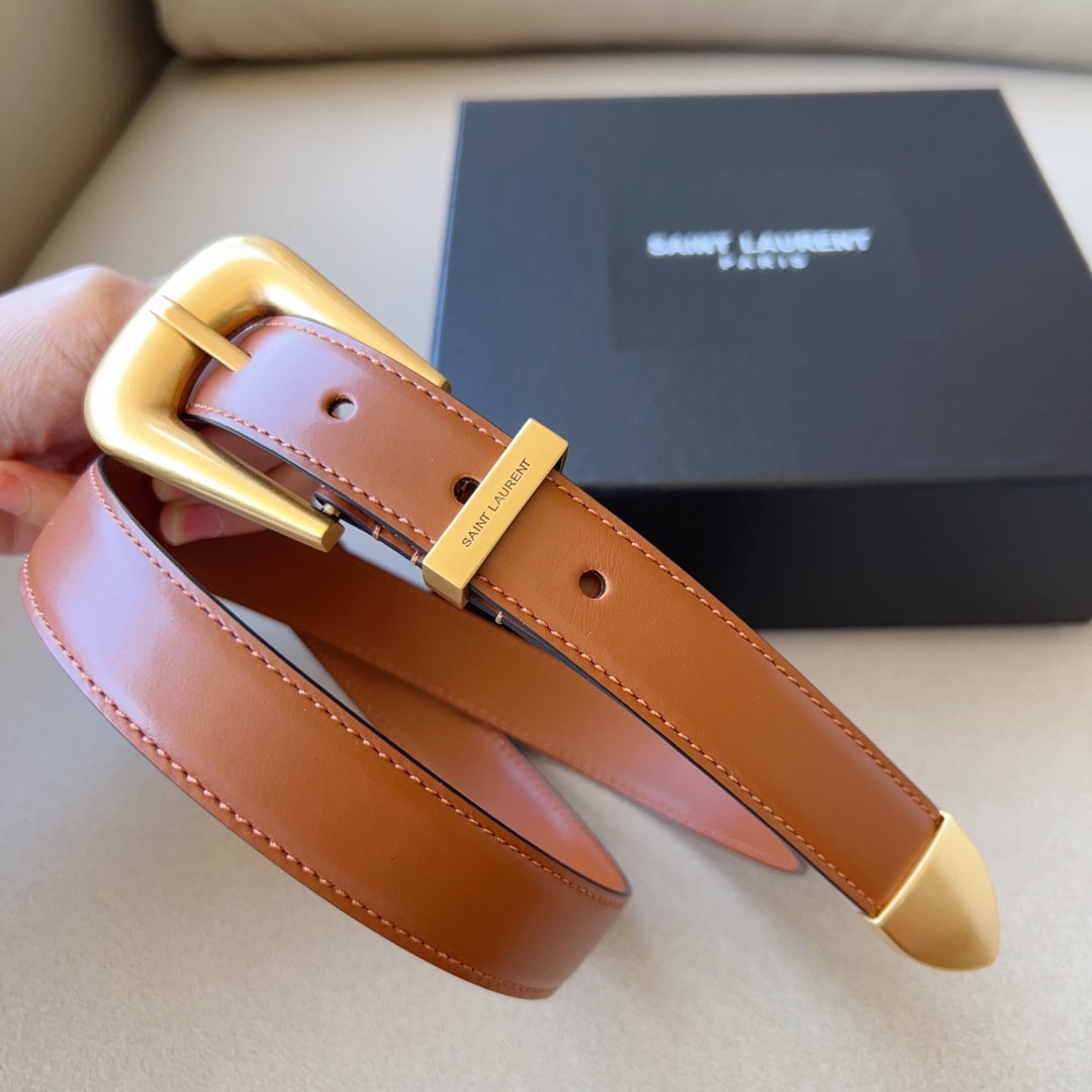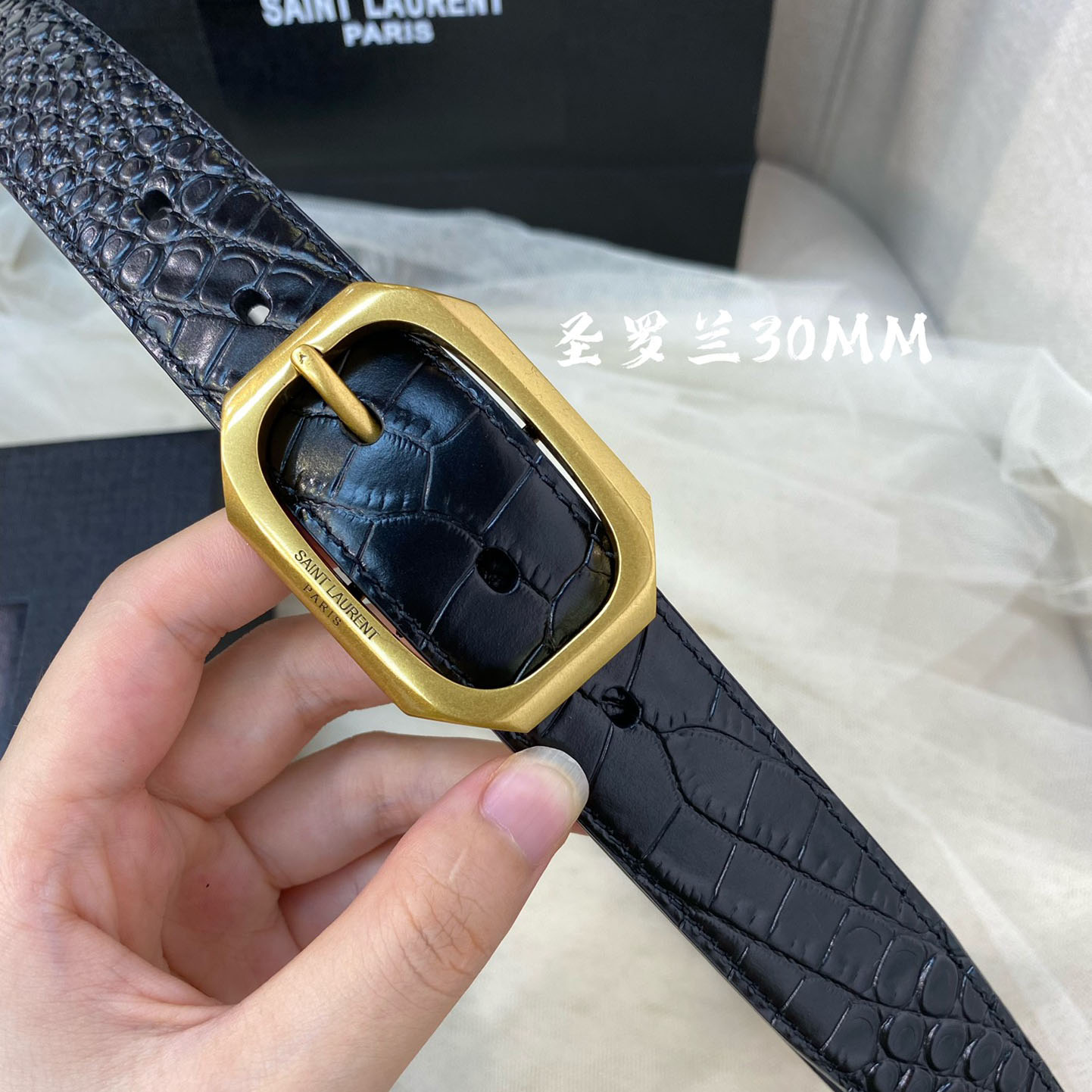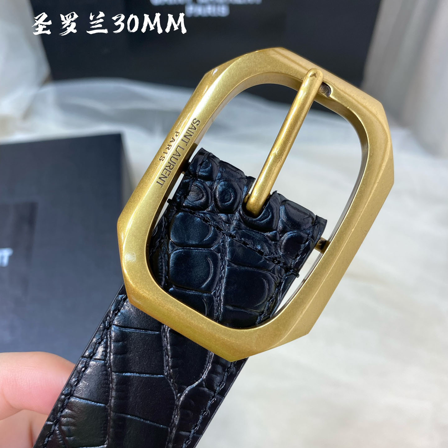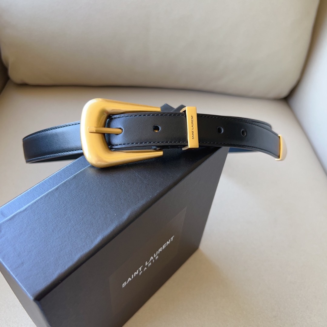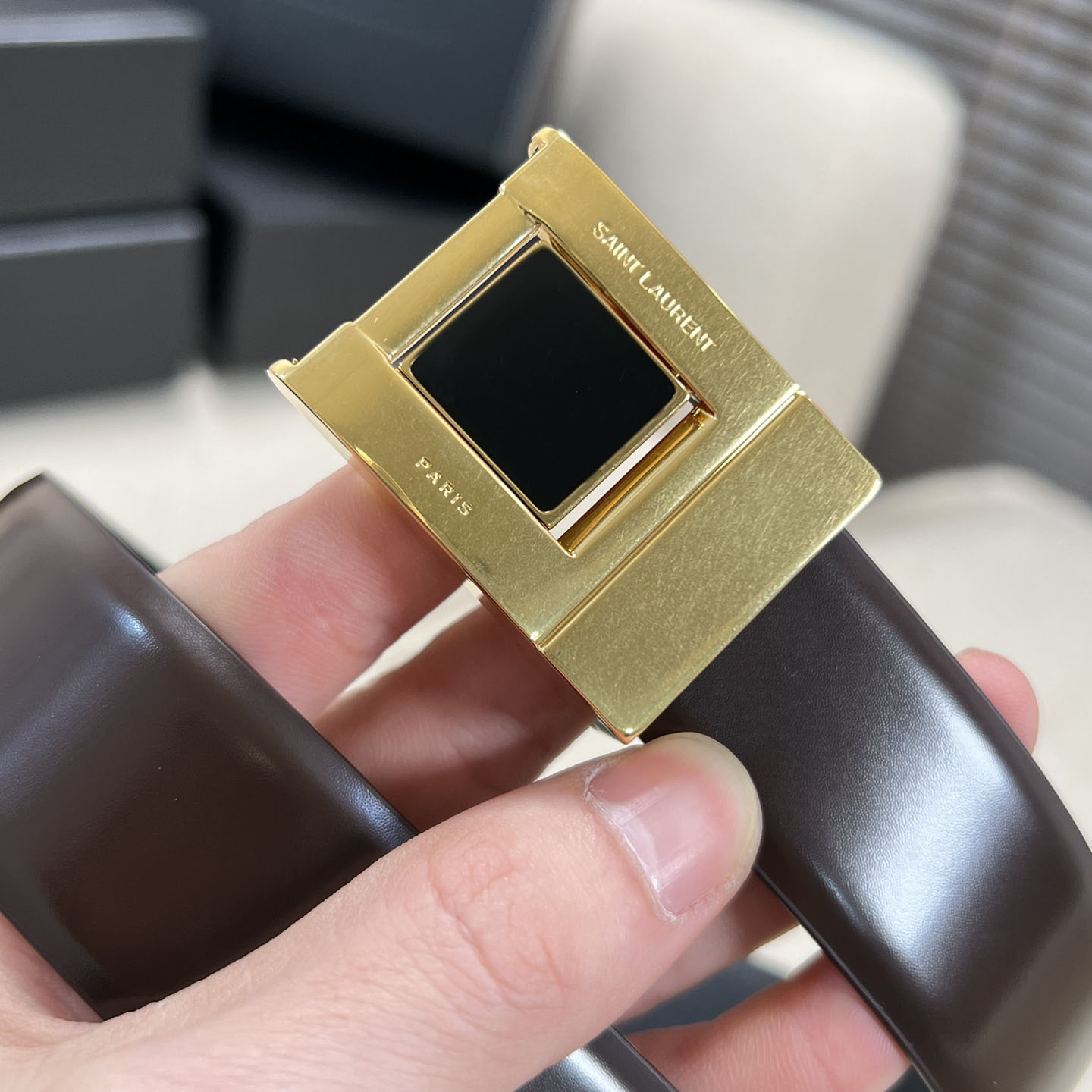 Saint Laurent LA 66 Buckle Belt In Black Calfskin With Gold Hardware 30mm