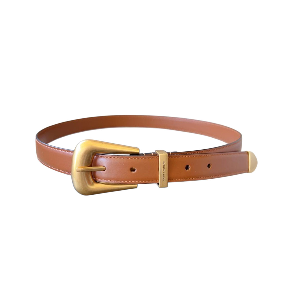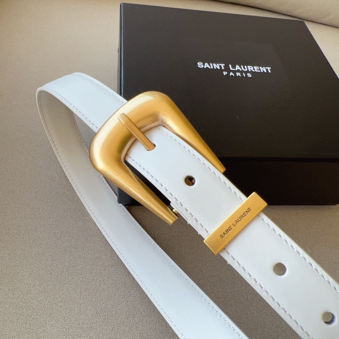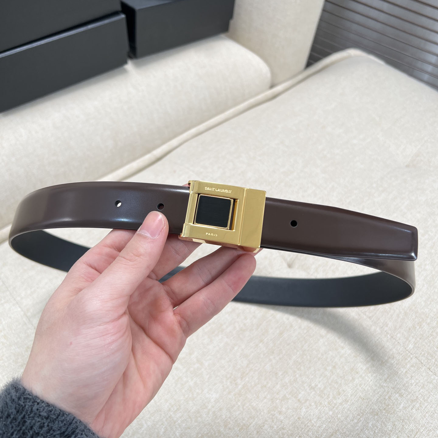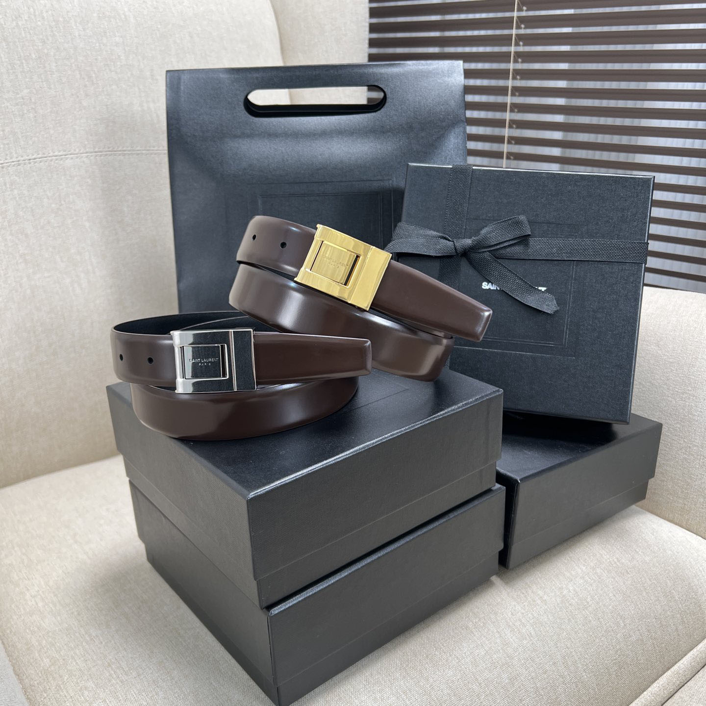 Saint Laurent Double Frame Buckle Belt In Black/Brown/Beige/White Calfskin With Gold Hardware 20mm