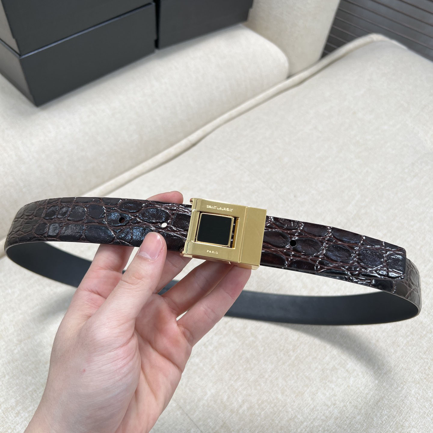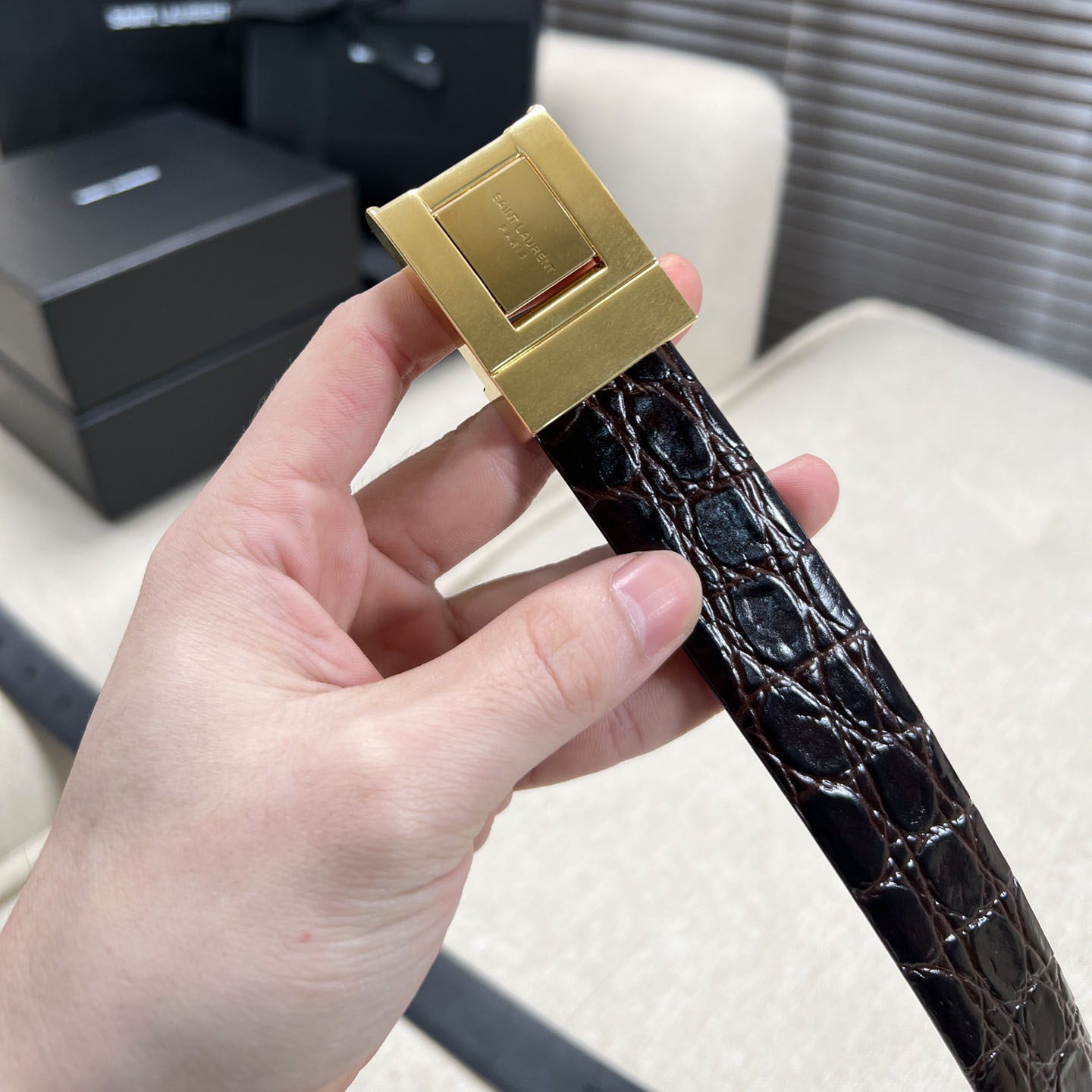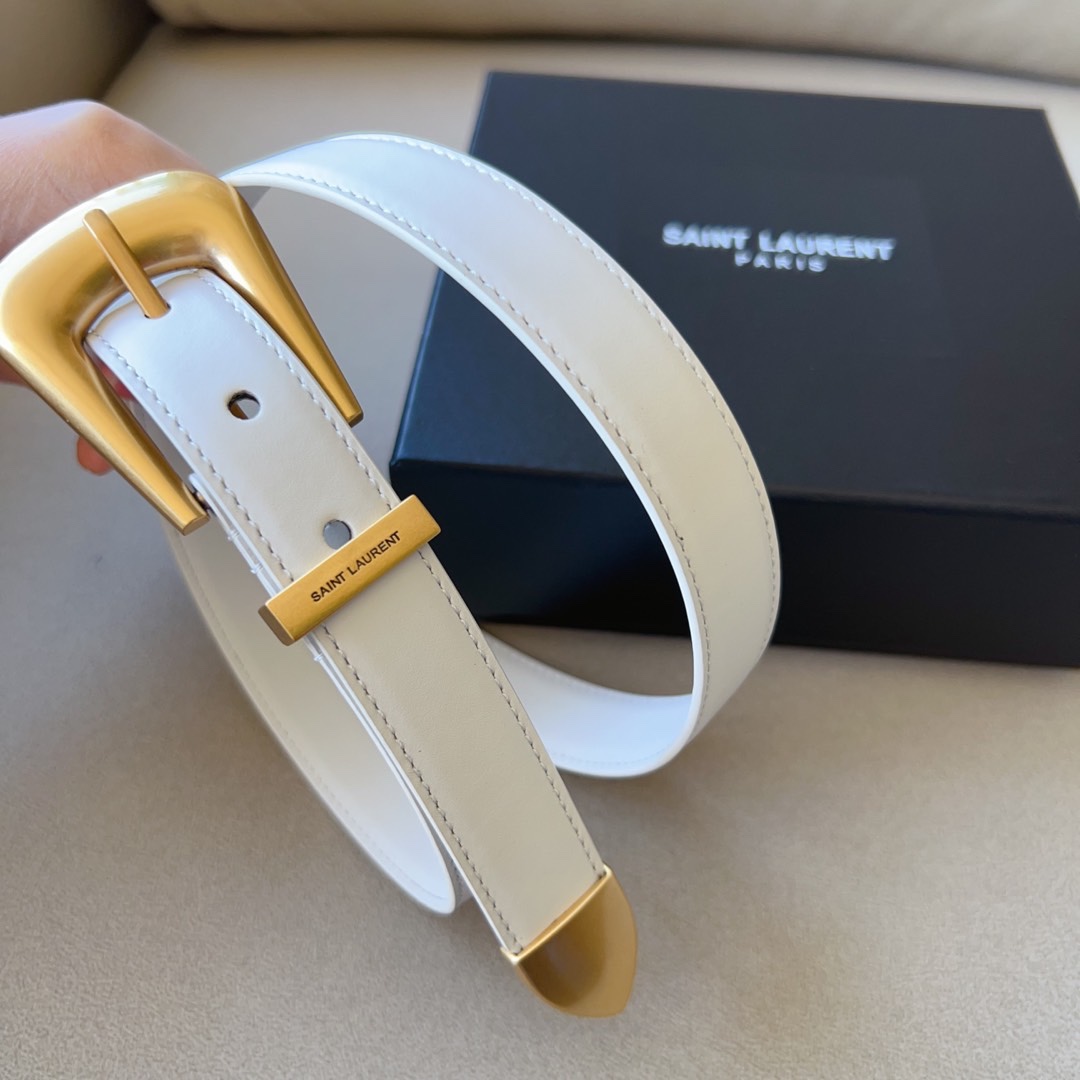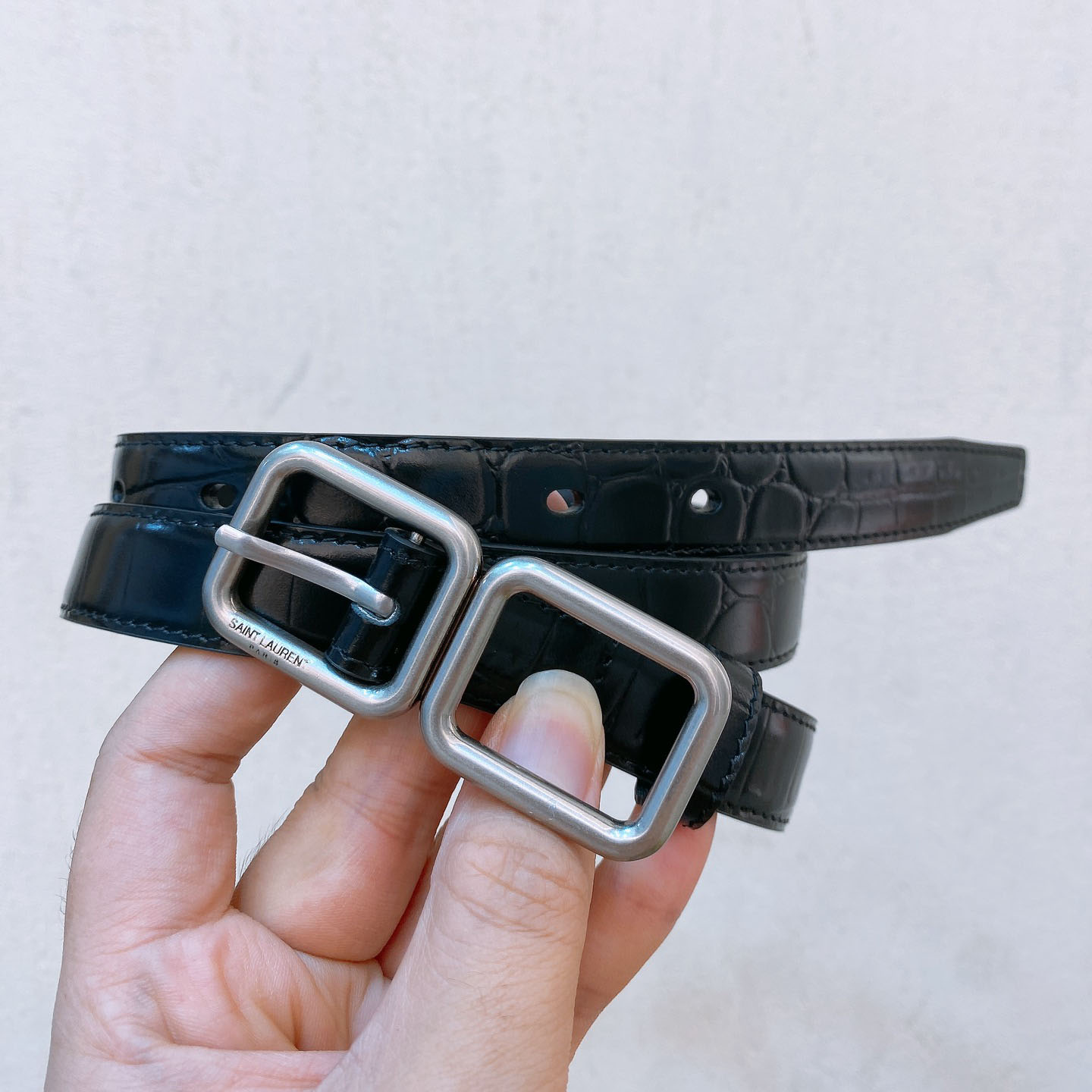 Saint Laurent Double Frame Buckle Belt In Black/Brown/Beige/White Calfskin With Gold Hardware 20mm
