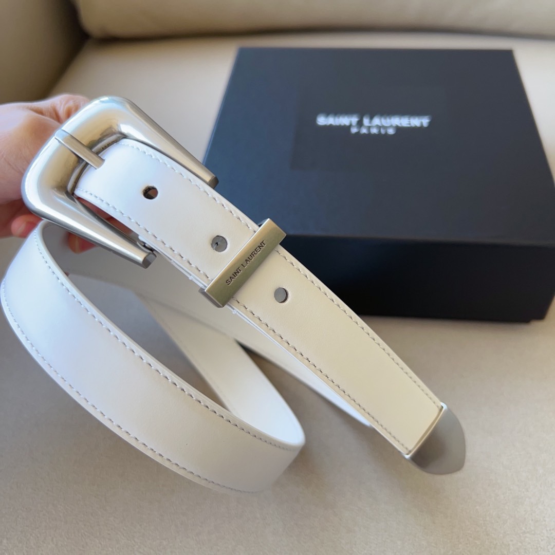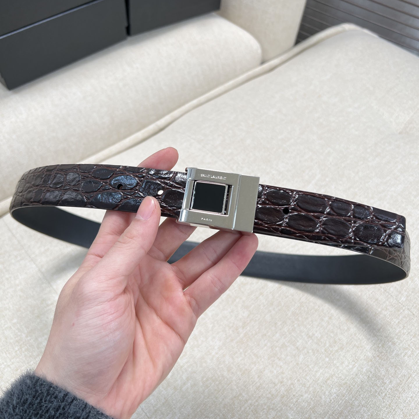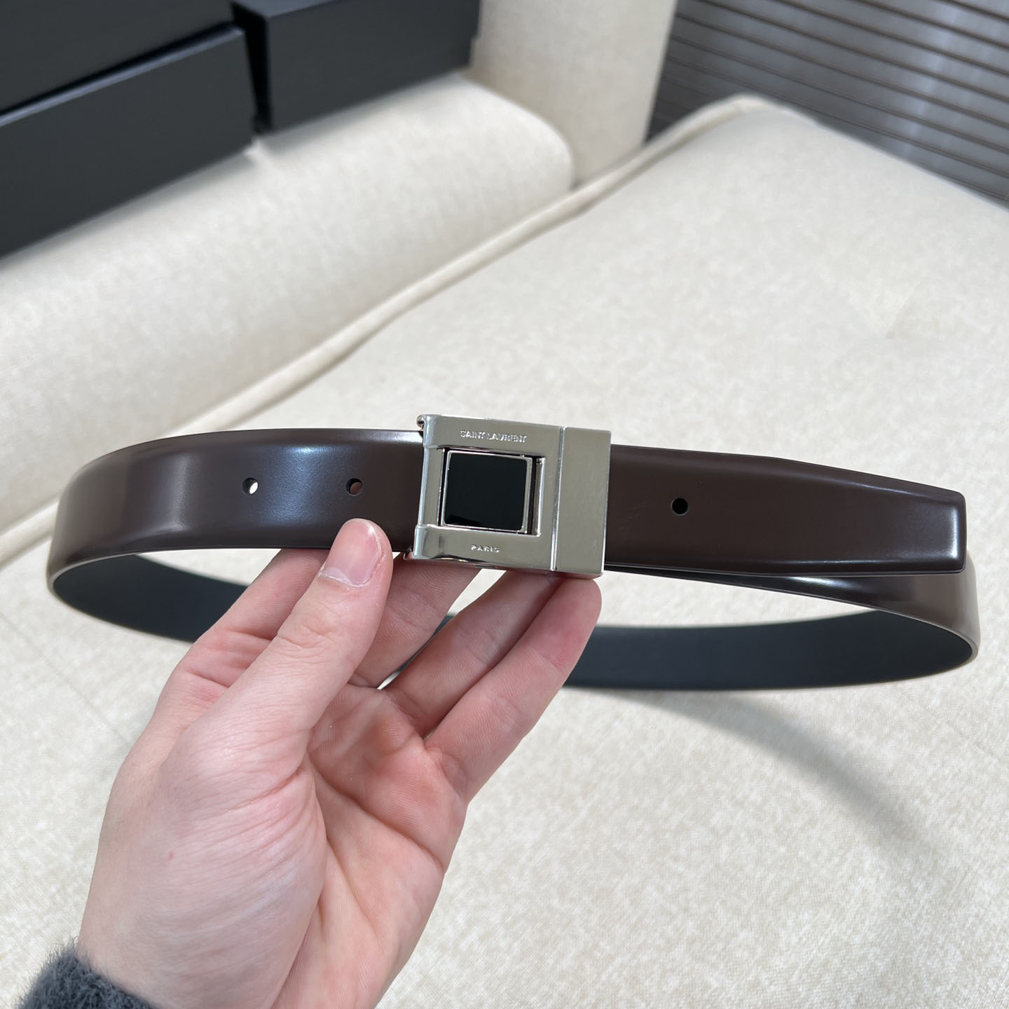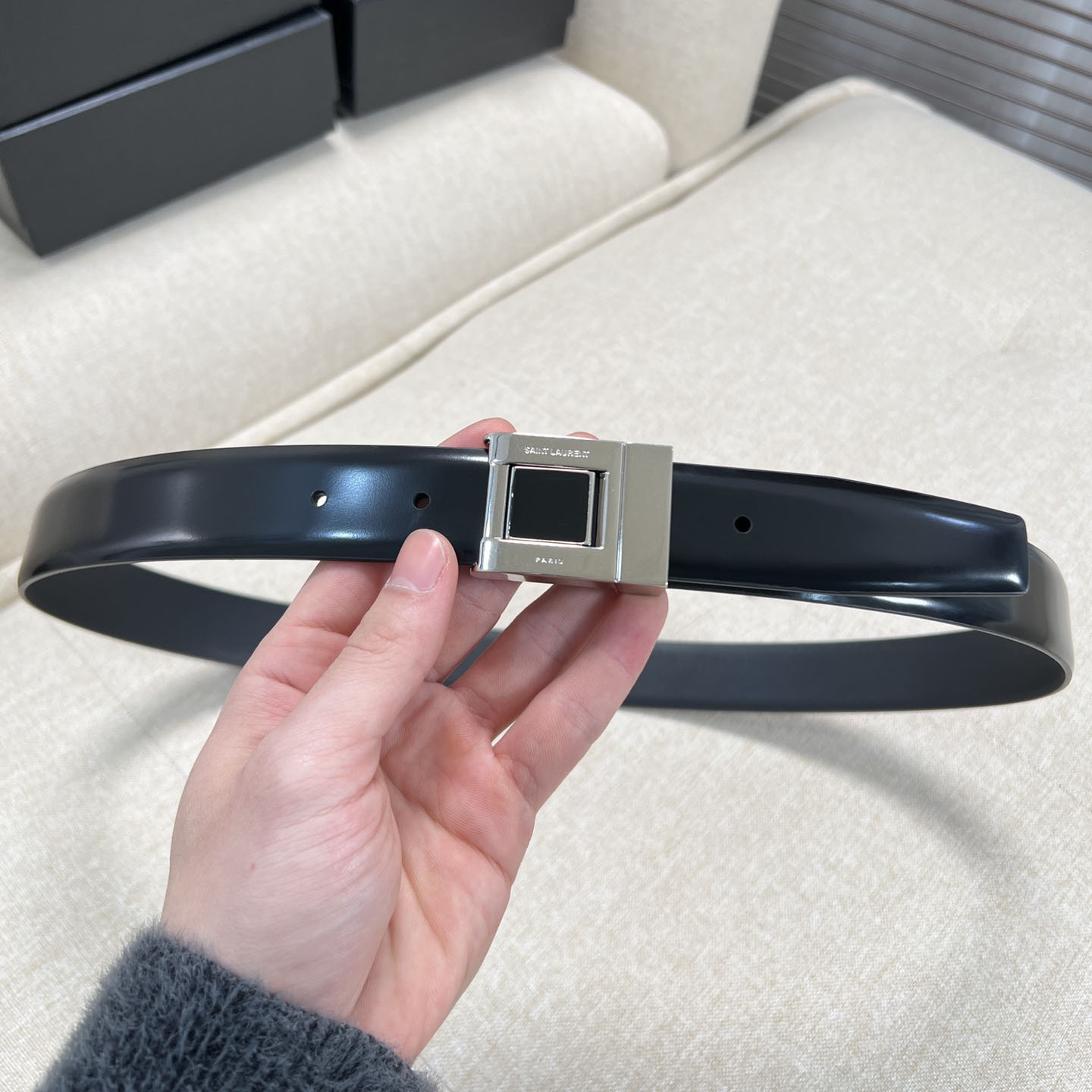 Saint Laurent Double Frame Buckle Belt In Black/Brown/Beige/White Calfskin With Gold Hardware 20mm