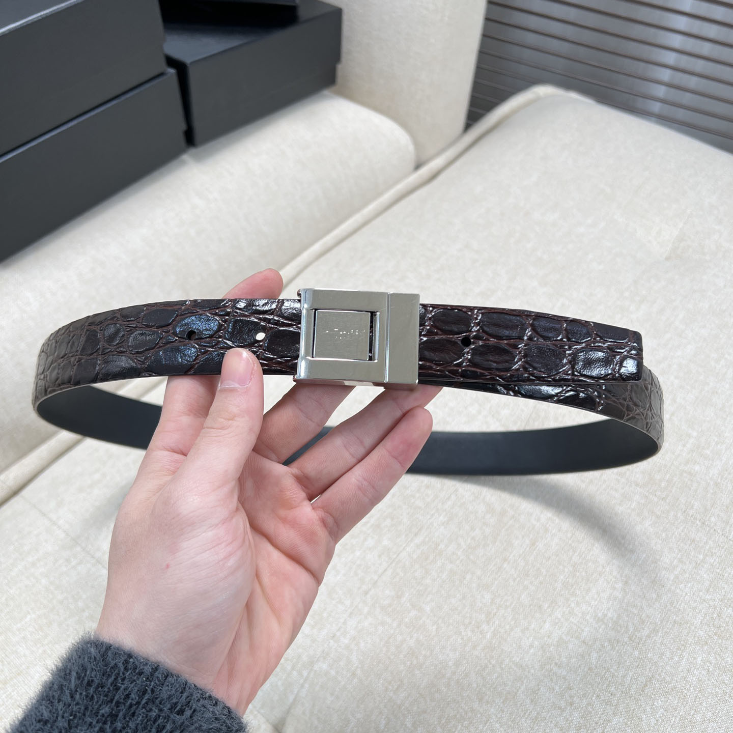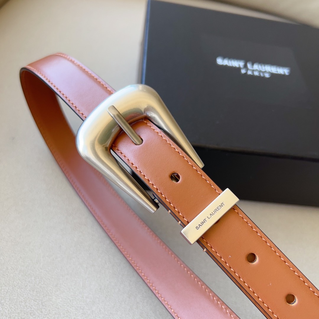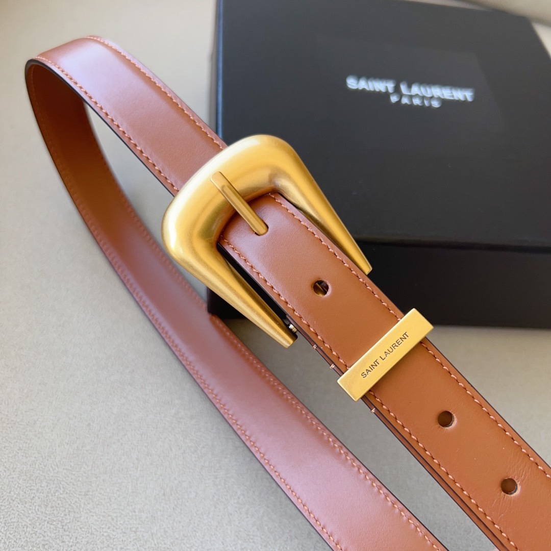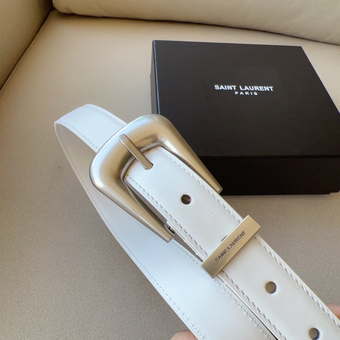 Saint Laurent Double Frame Buckle Belt In Black/Brown/Beige/White Calfskin With Gold Hardware 20mm