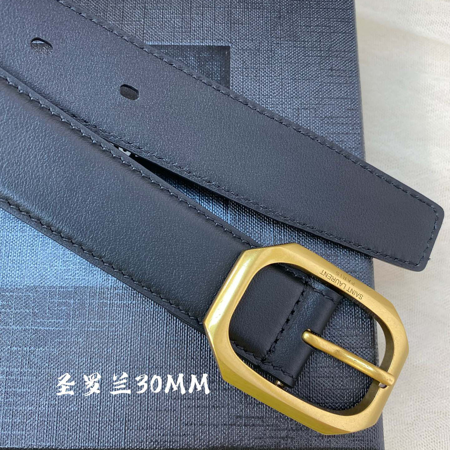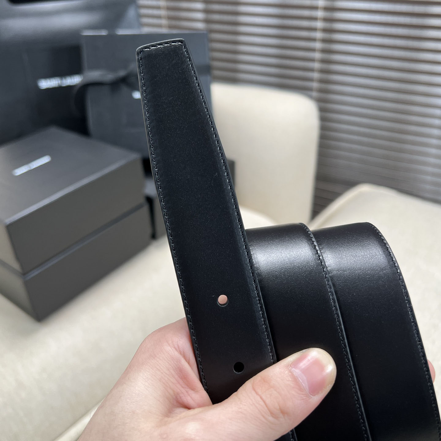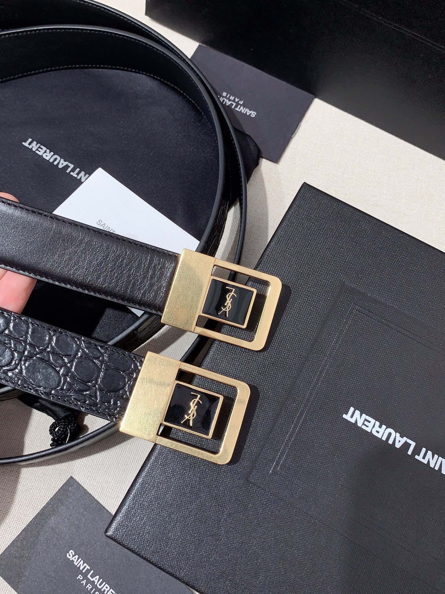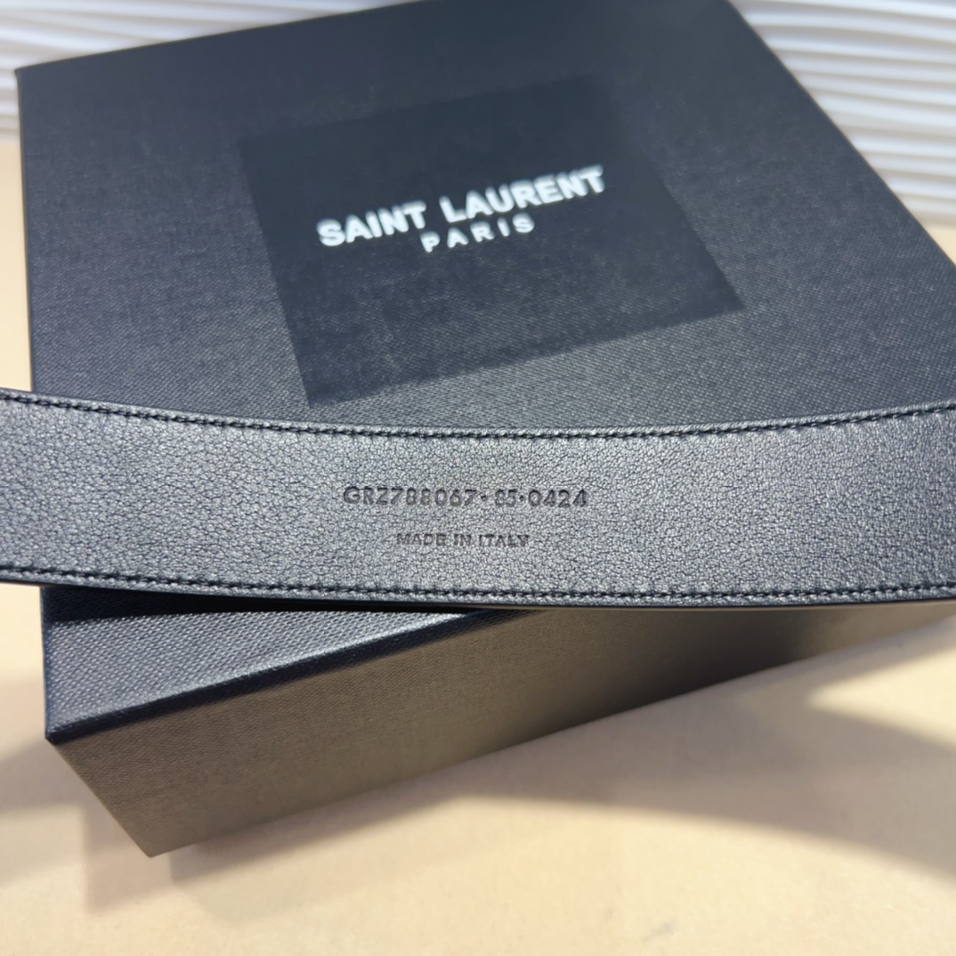 Saint Laurent GIO Belt In Black Box Calfskin With Gold/Silver Hardware 30mm
