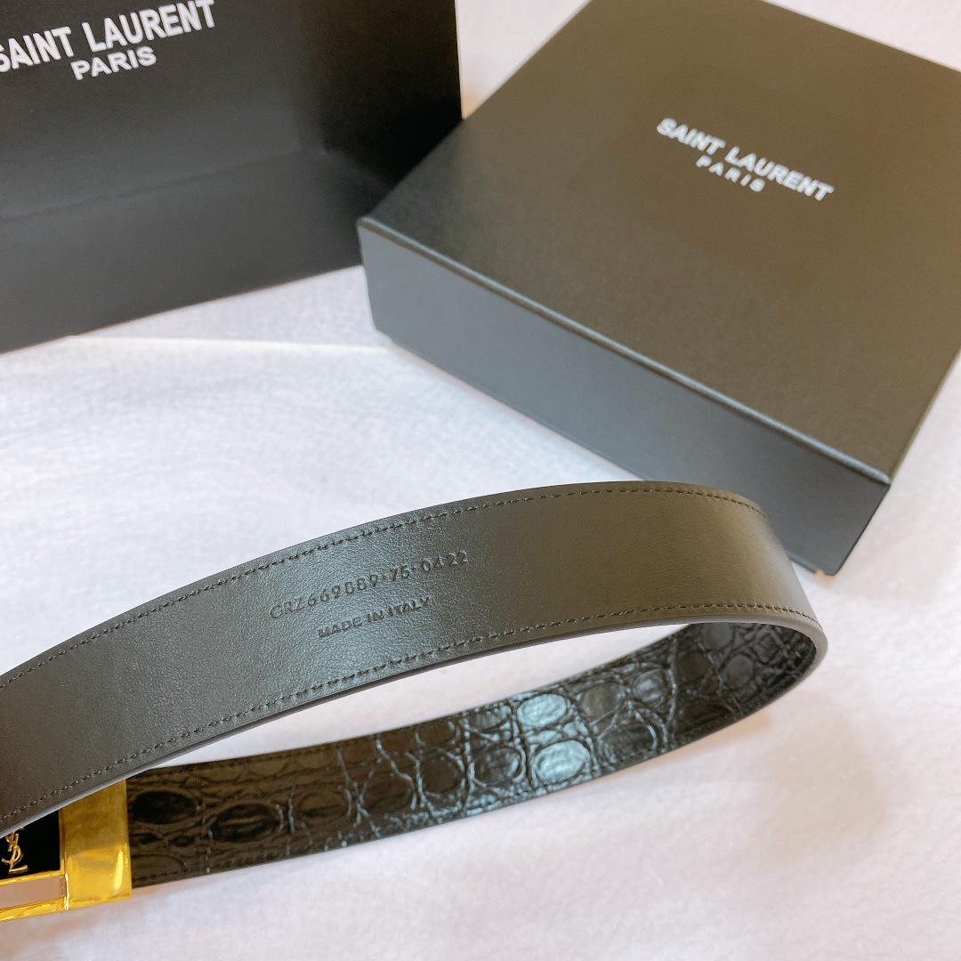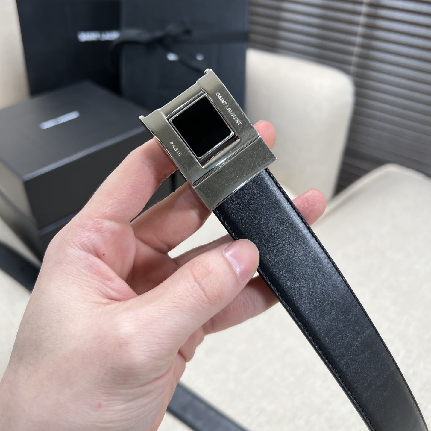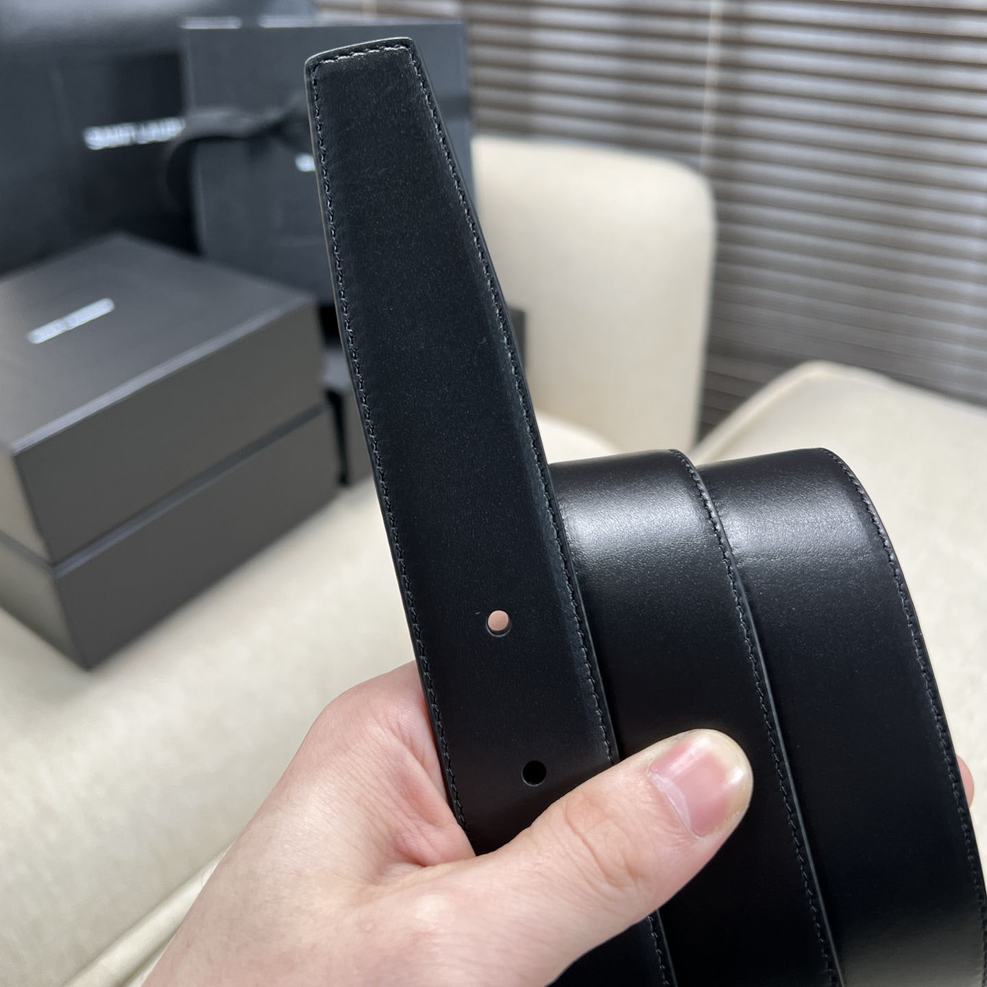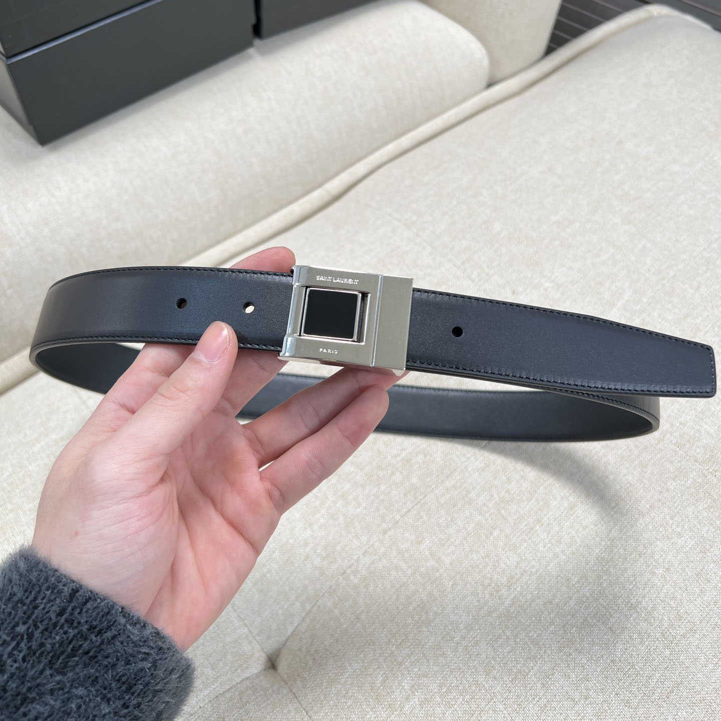 Saint Laurent GIO Belt In Black Box Calfskin With Gold/Silver Hardware 30mm