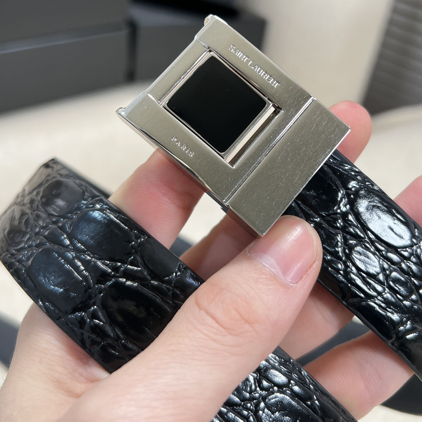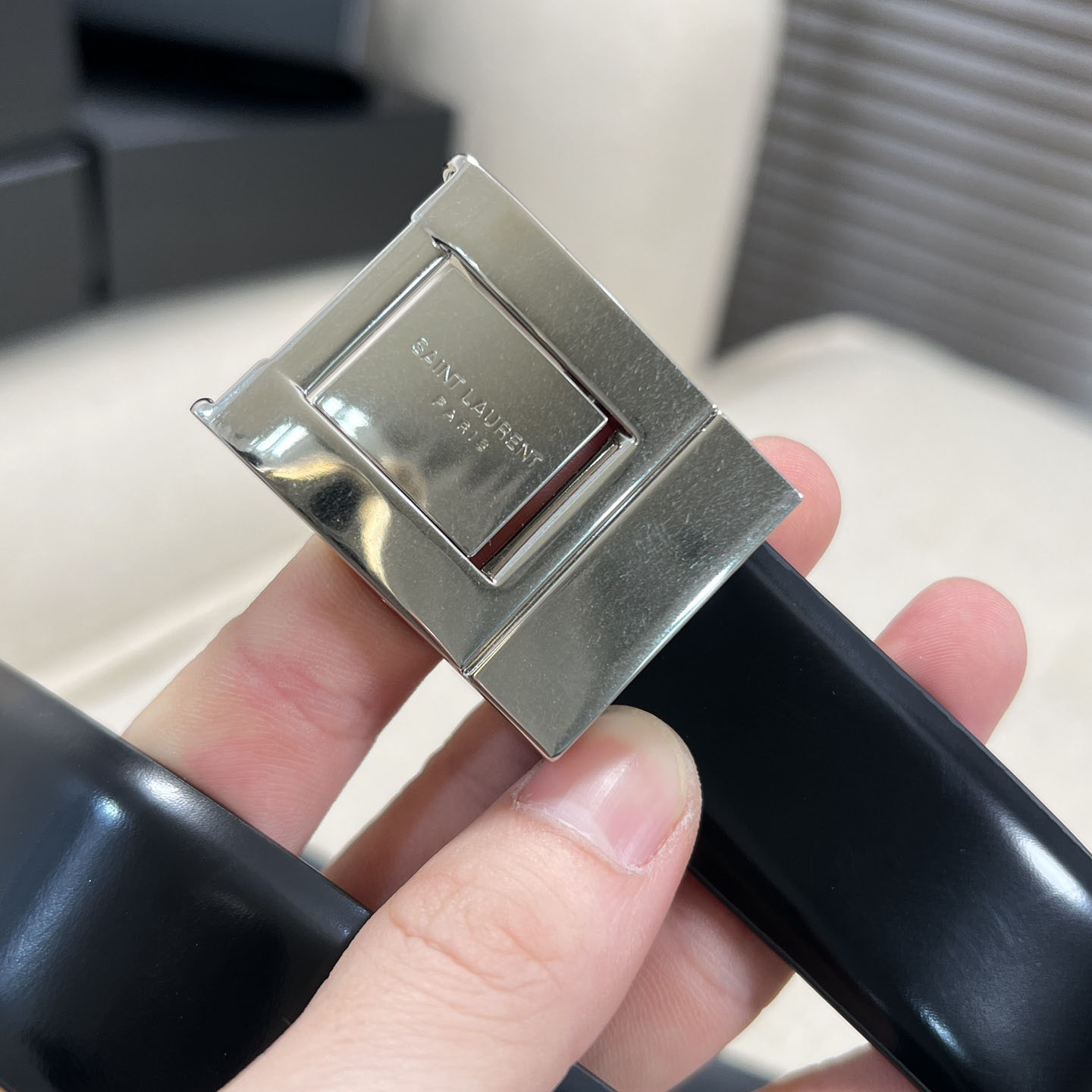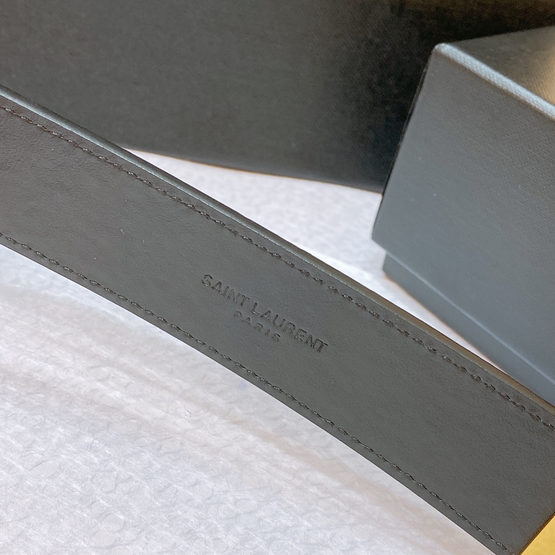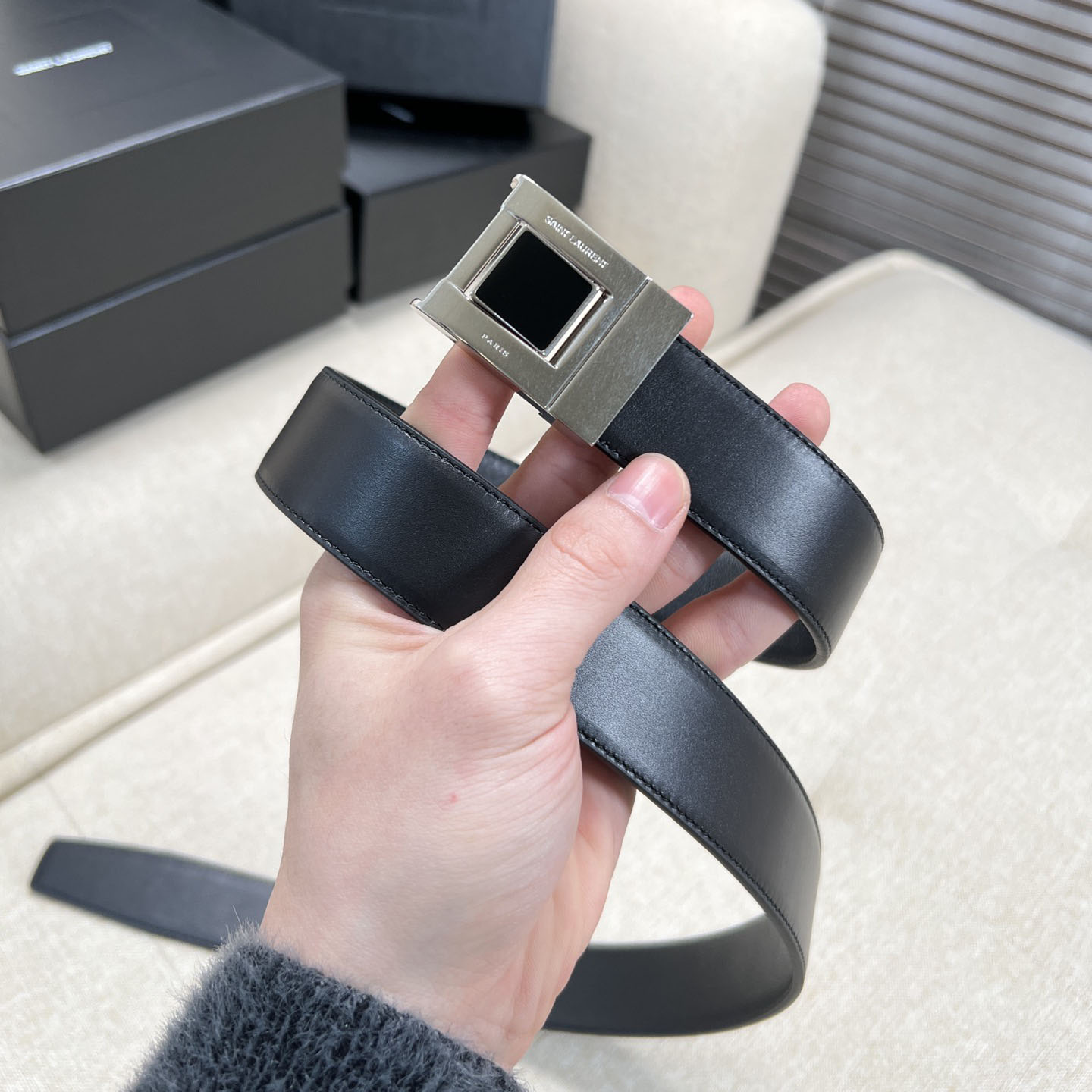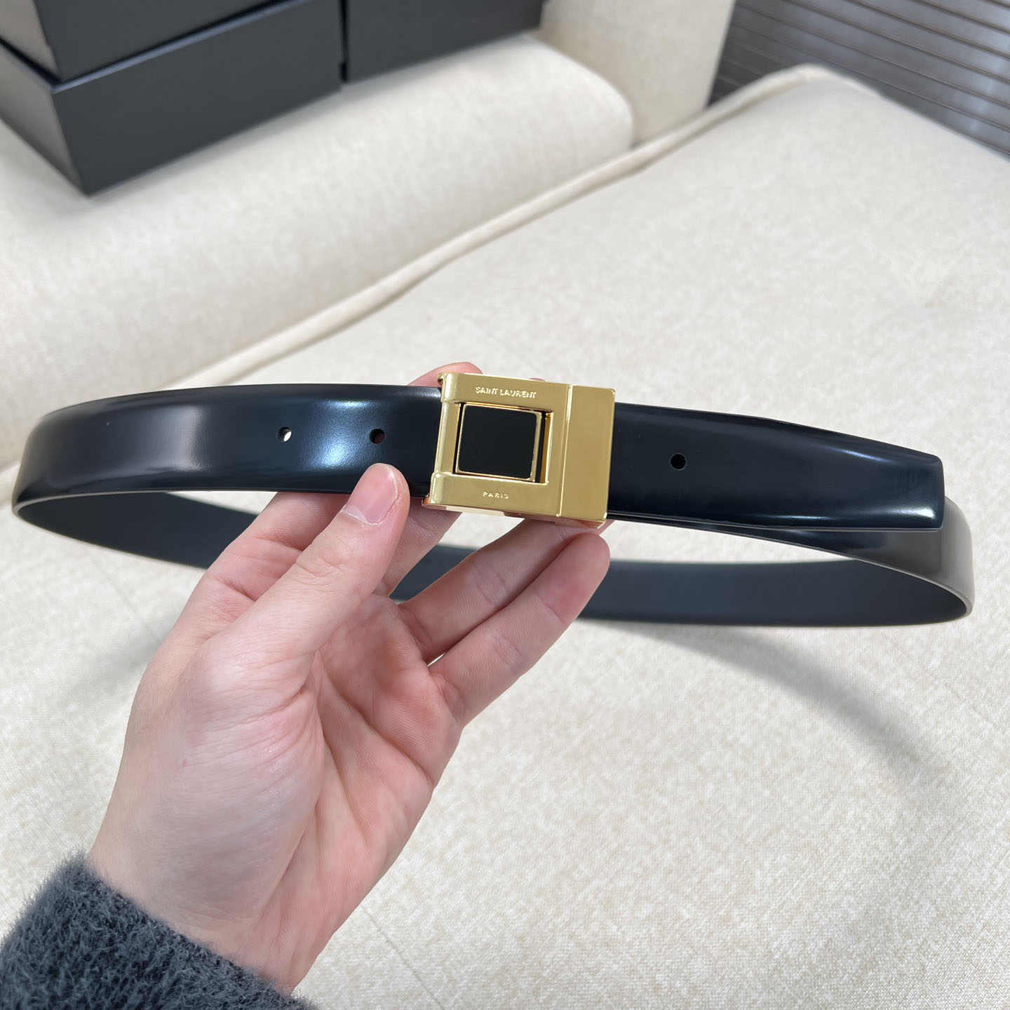 Saint Laurent GIO Belt In Black Box Calfskin With Gold/Silver Hardware 30mm