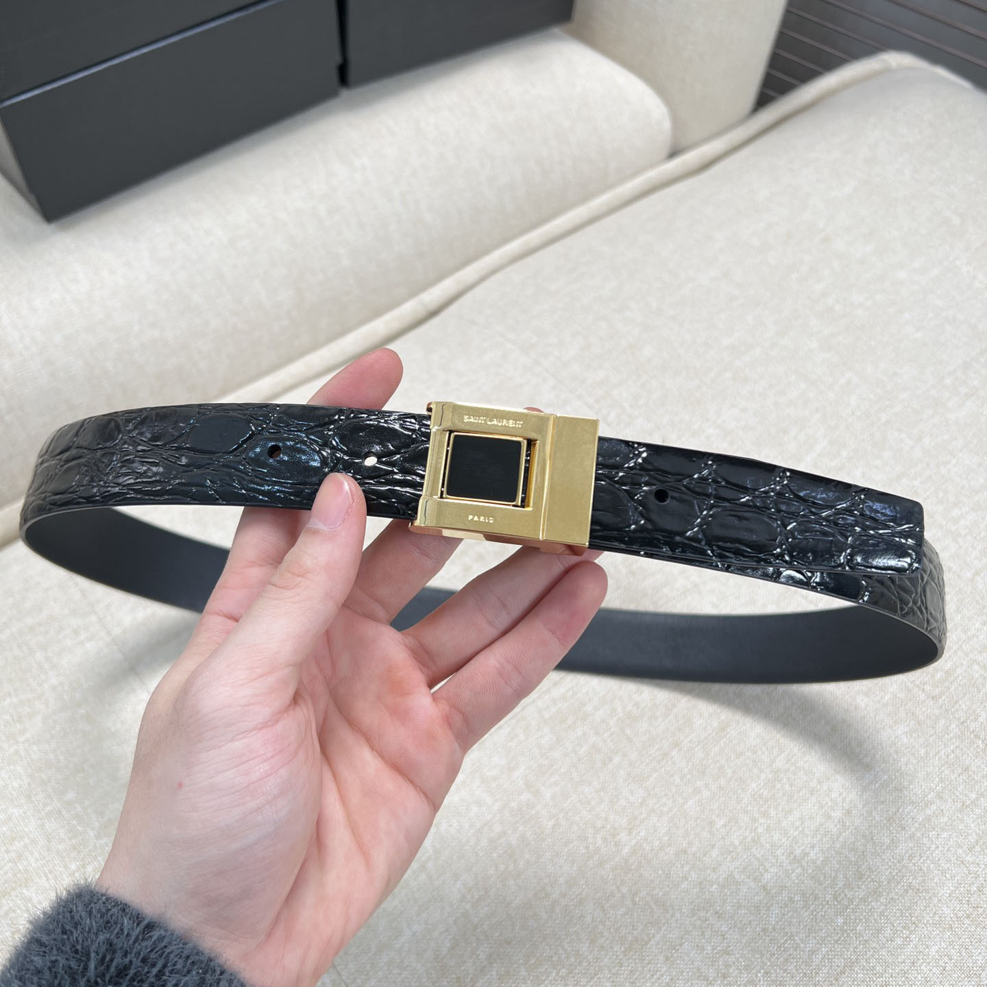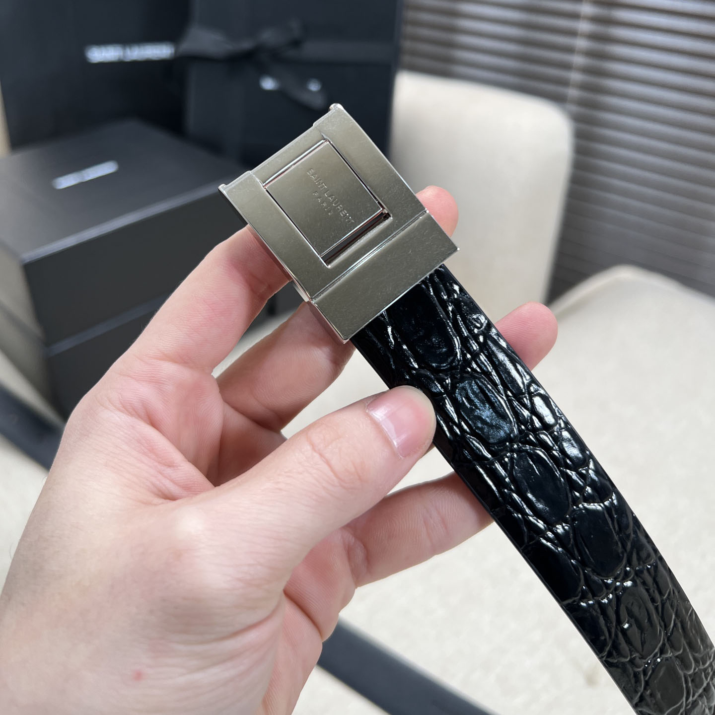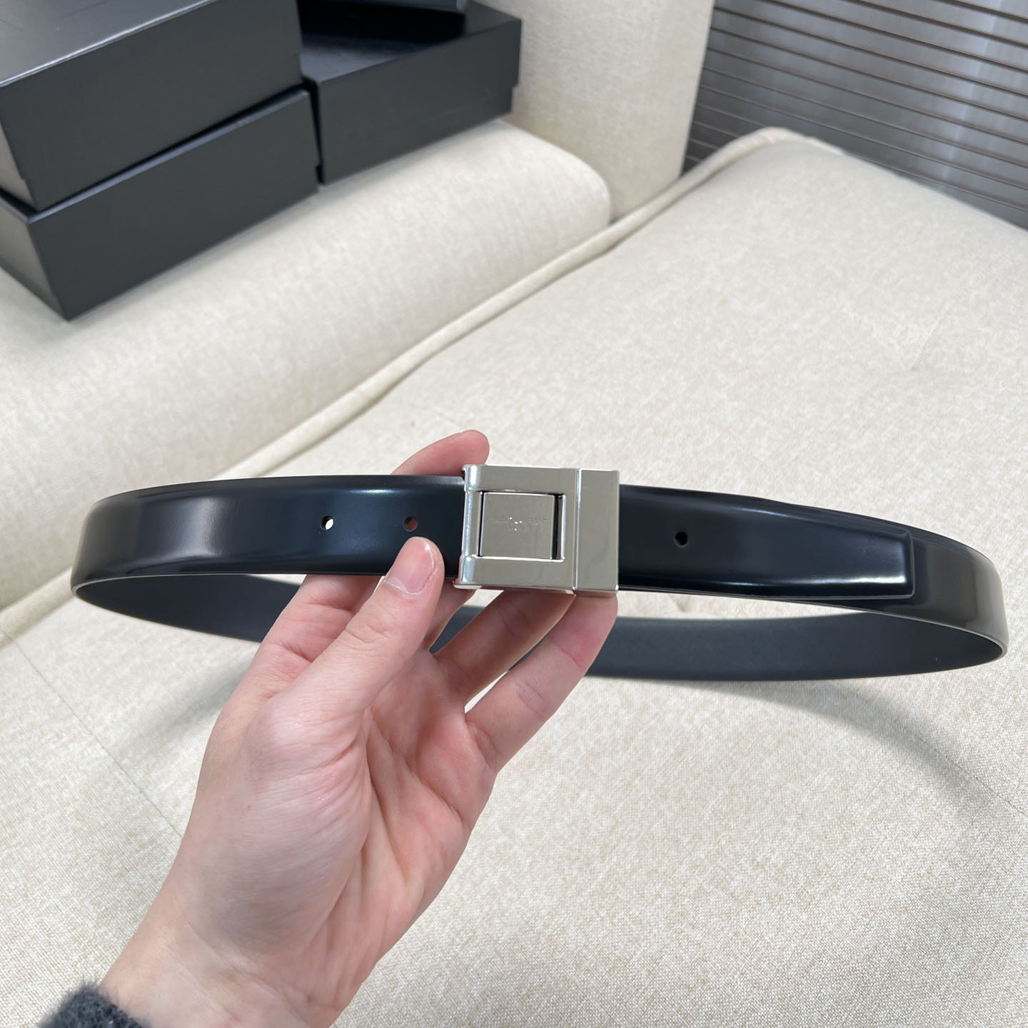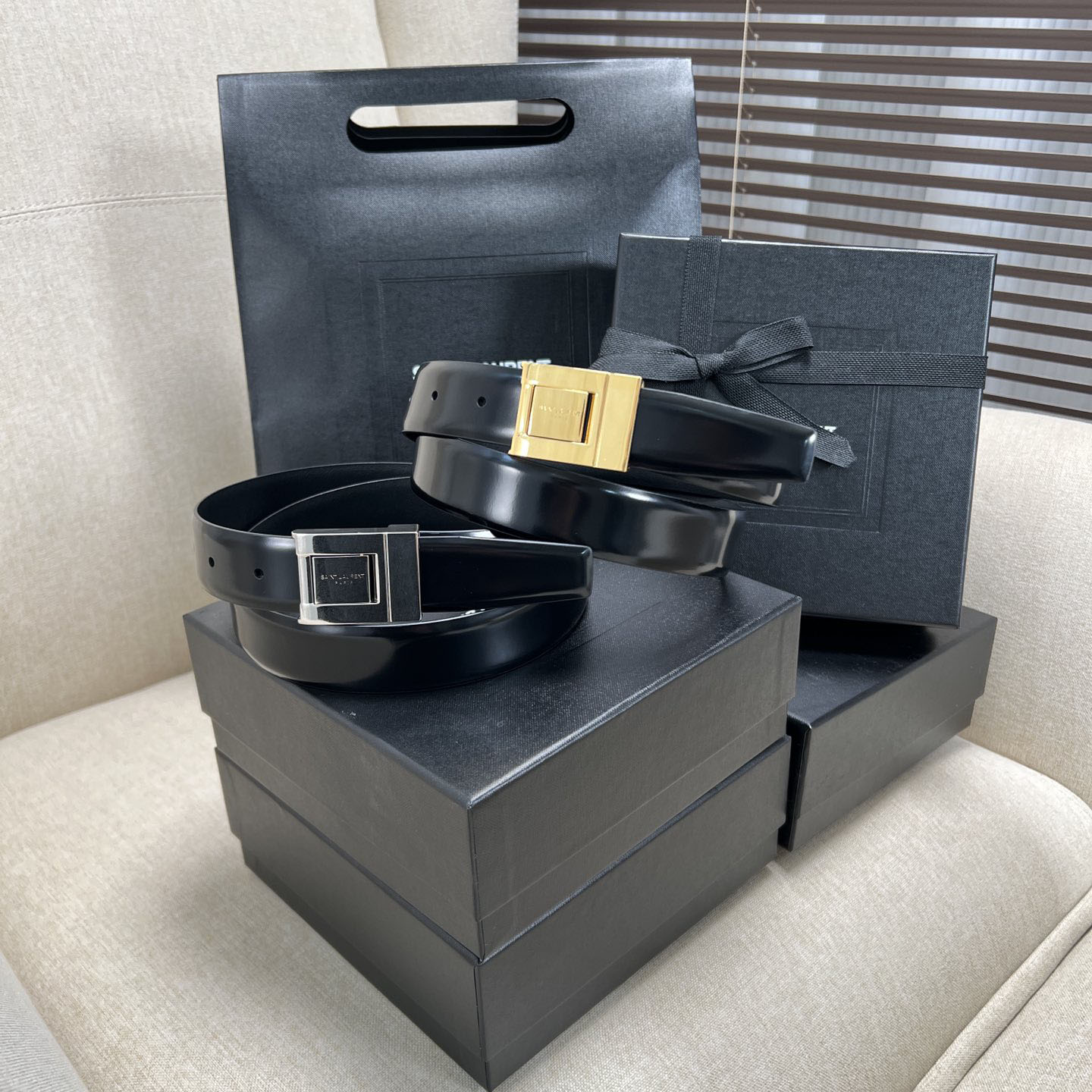 Saint Laurent GIO Belt In Black Box Calfskin With Gold/Silver Hardware 30mm