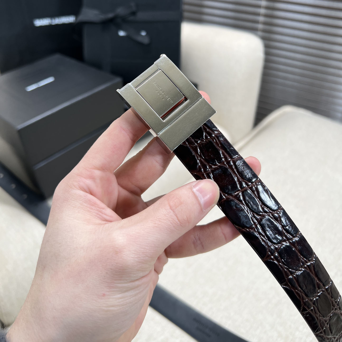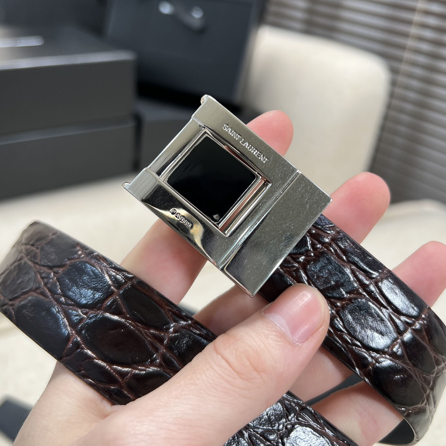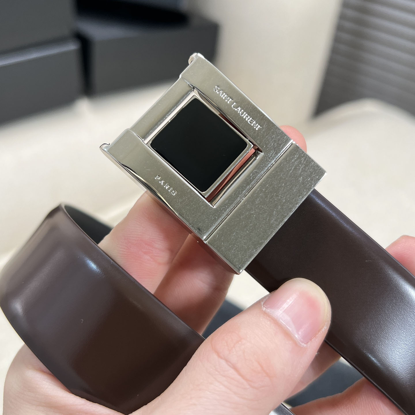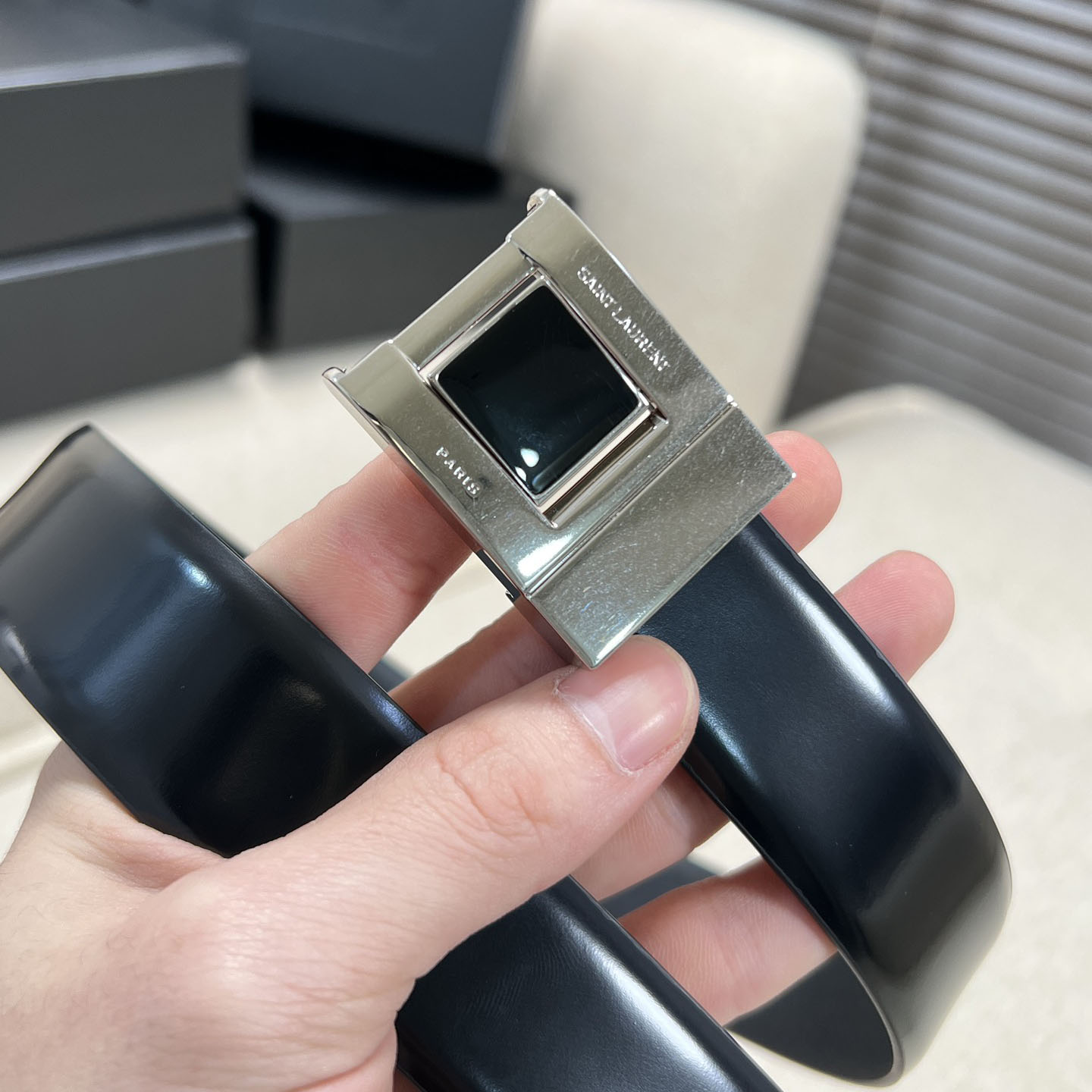 Saint Laurent GIO Belt In Black Box Calfskin With Gold/Silver Hardware 30mm