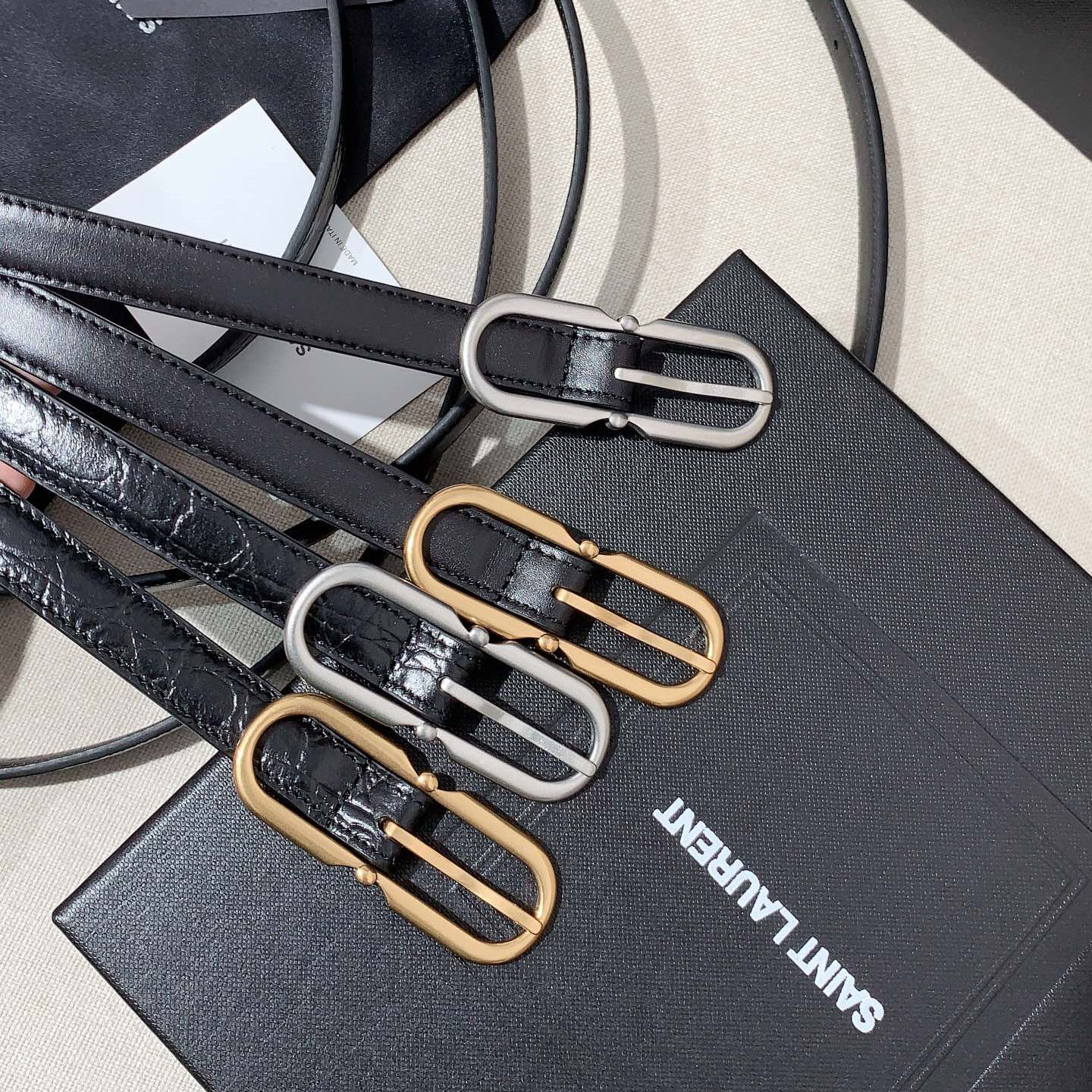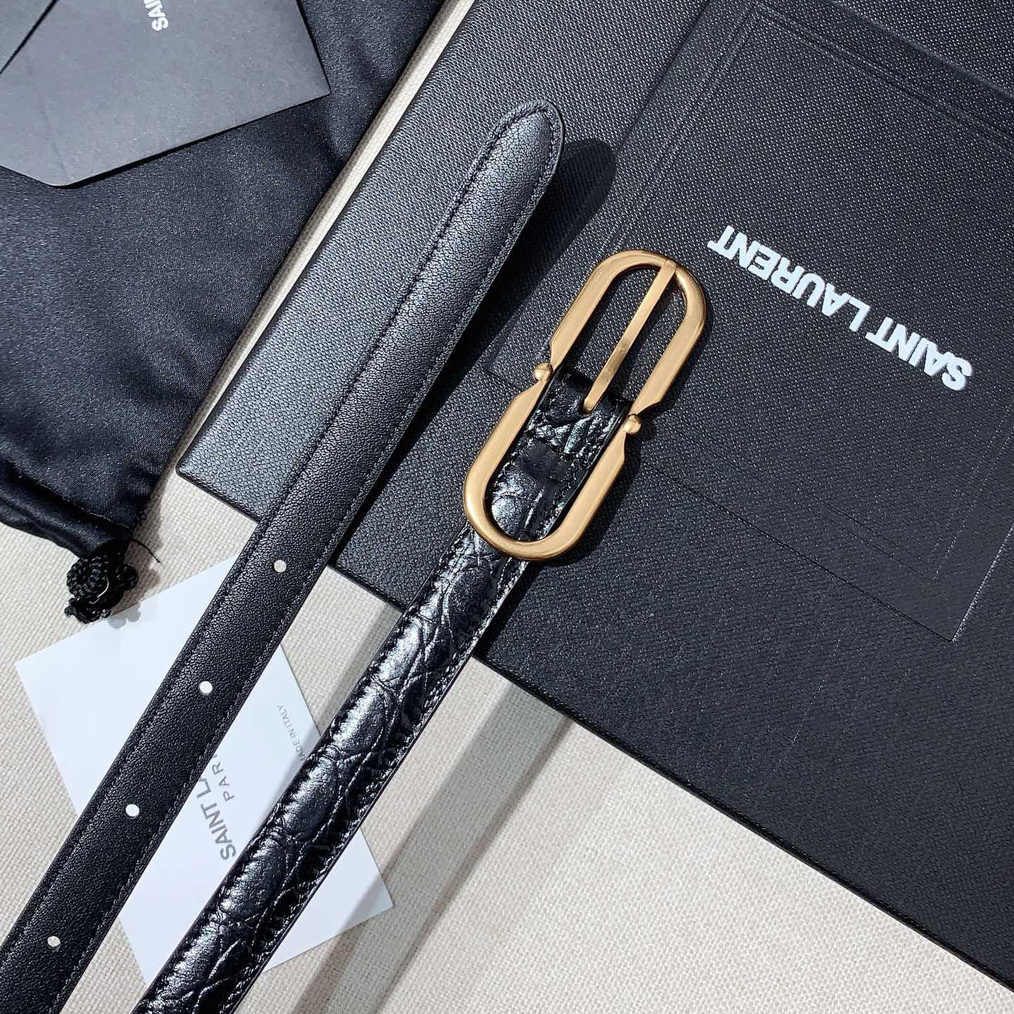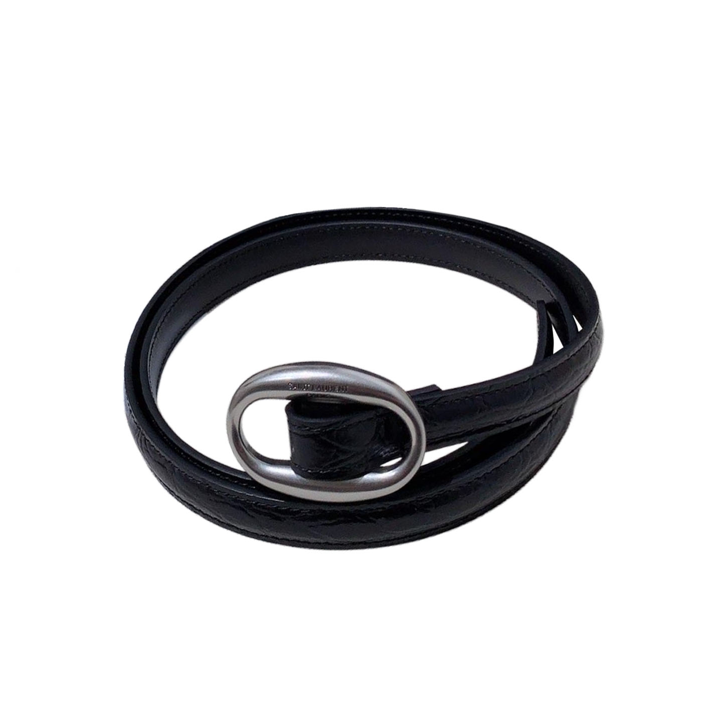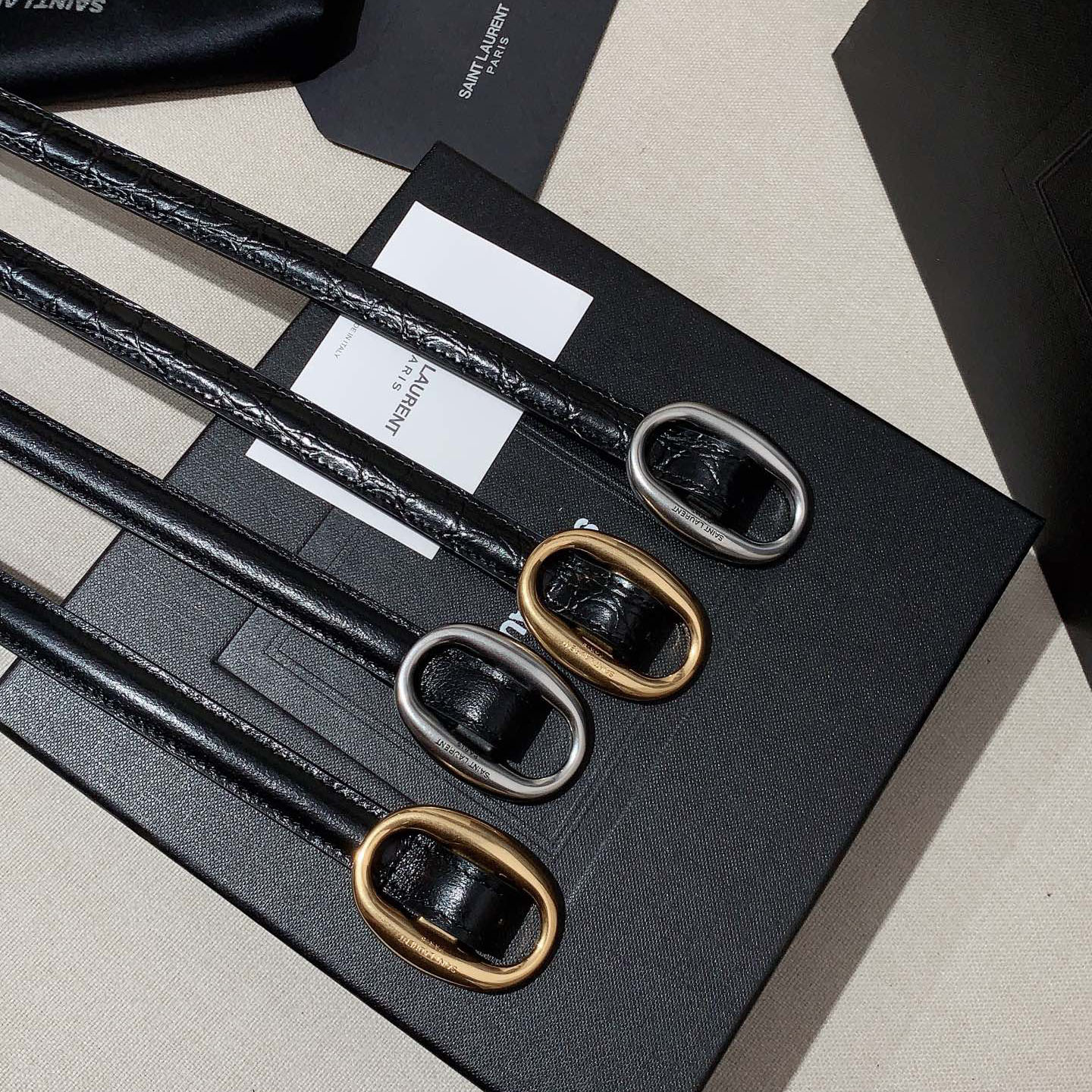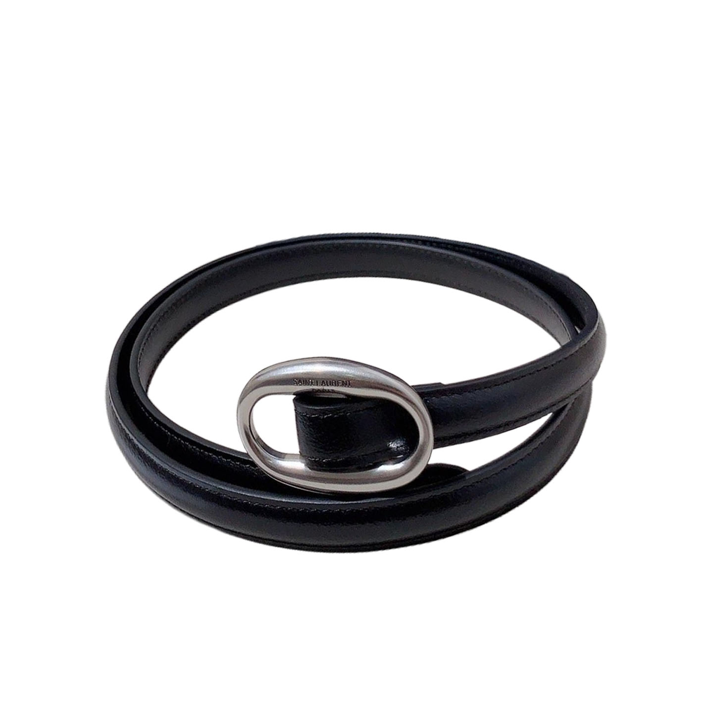 Saint Laurent Long Oval Buckle Thin Belt In Black Calfskin With Gold/Silver Hardware 15mm
