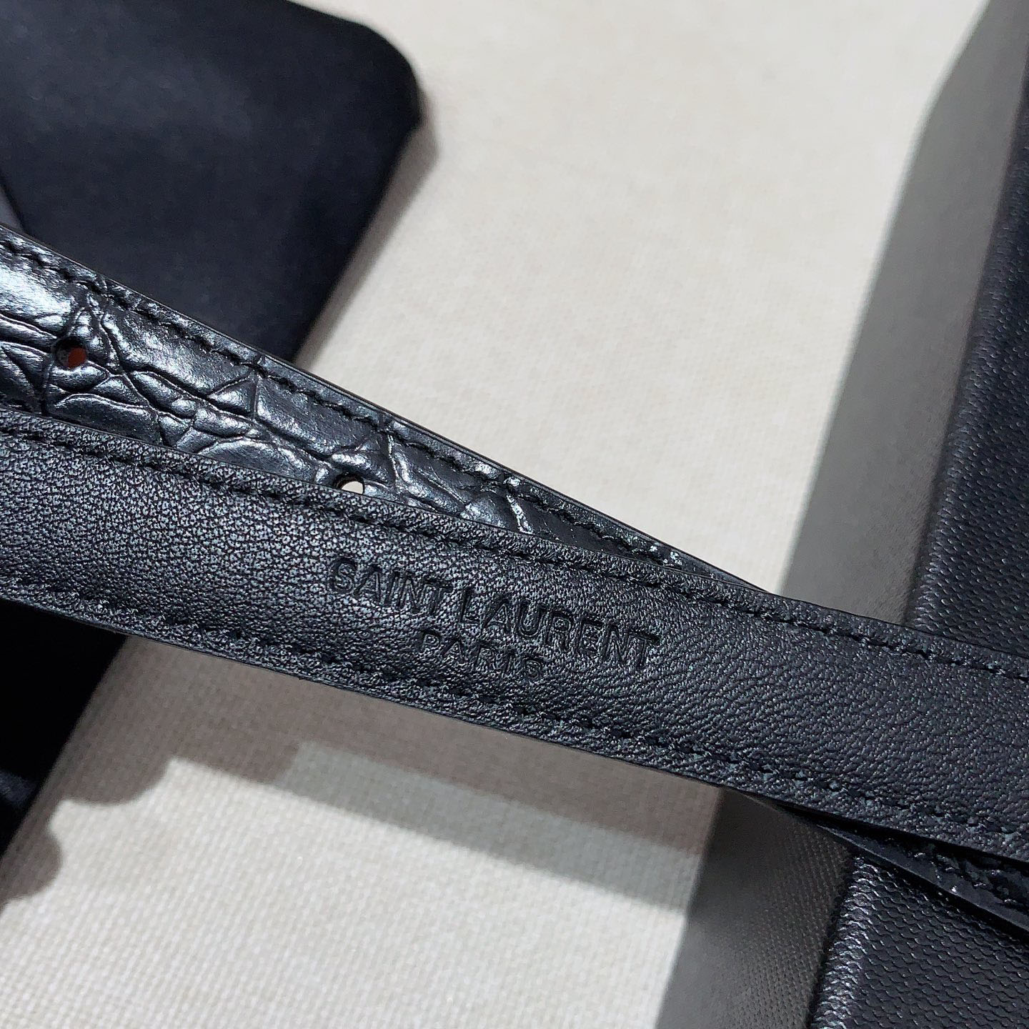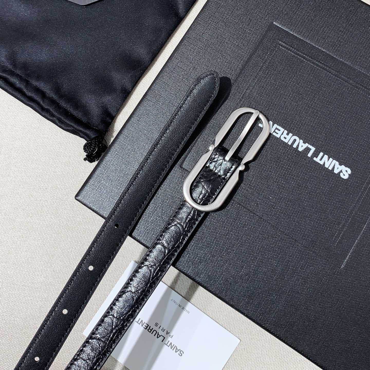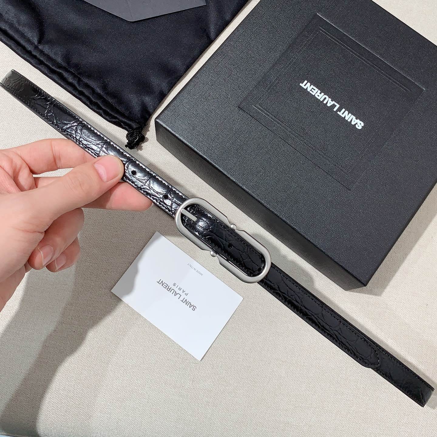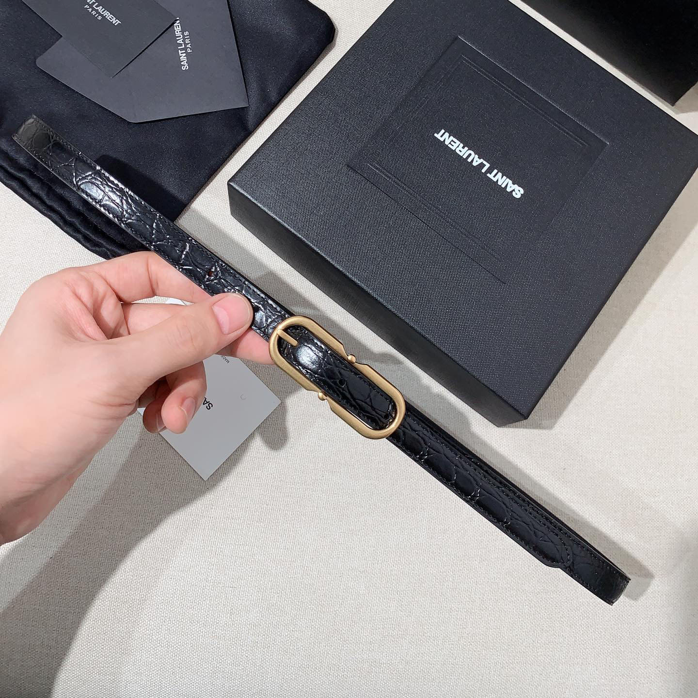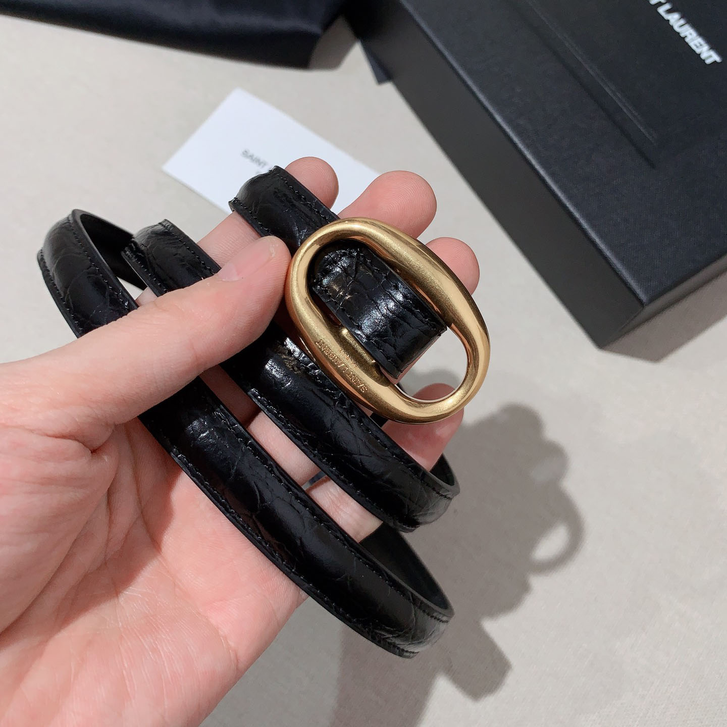 Saint Laurent Long Oval Buckle Thin Belt In Black Calfskin With Gold/Silver Hardware 15mm