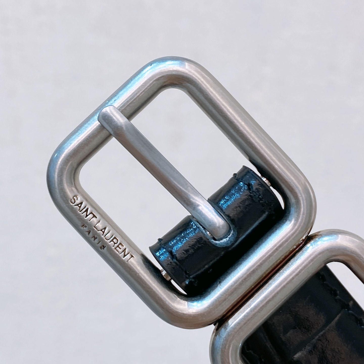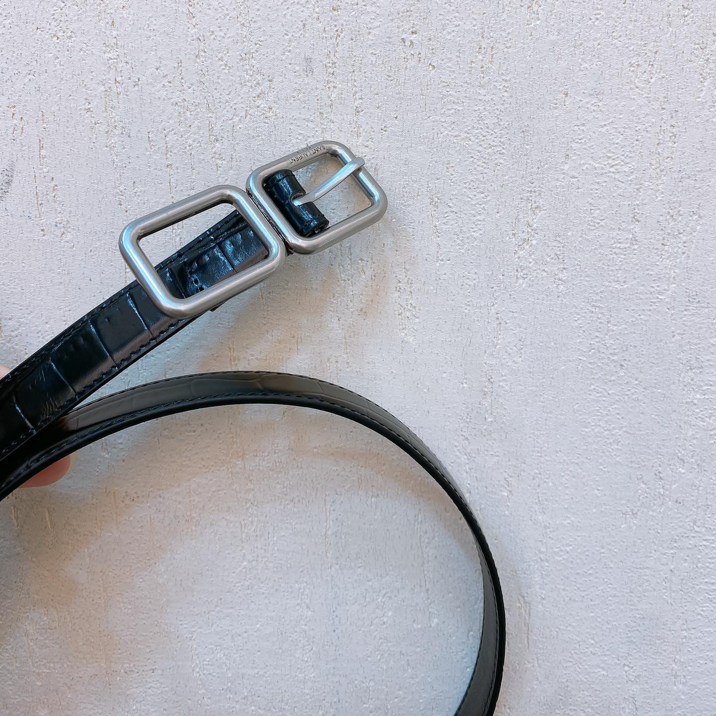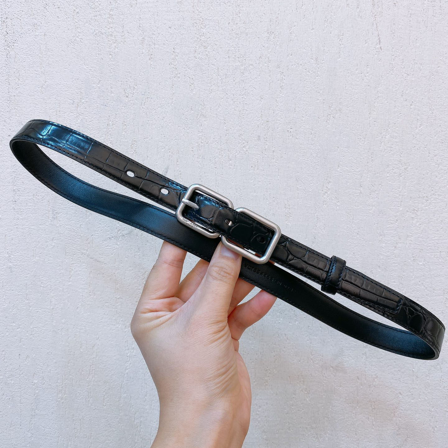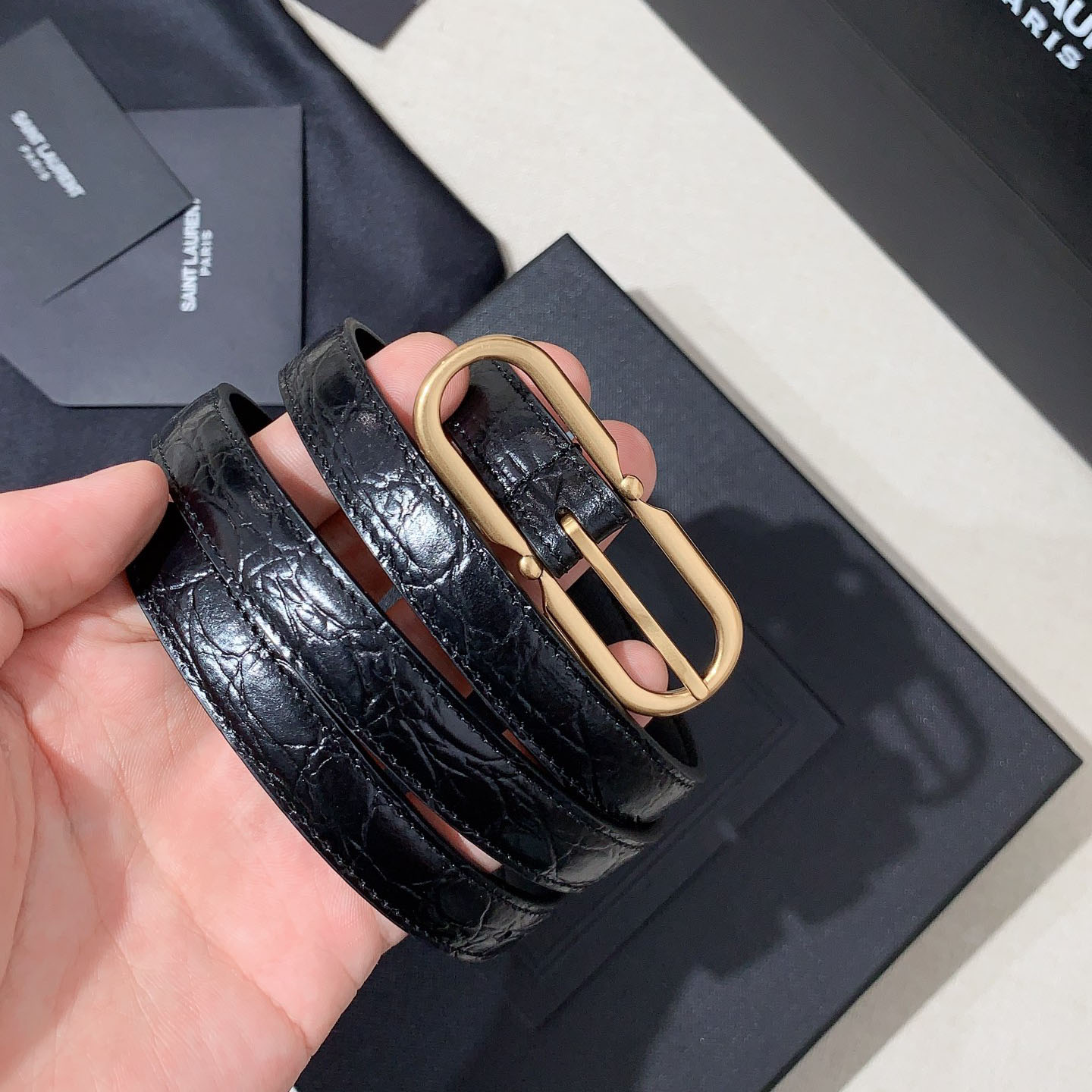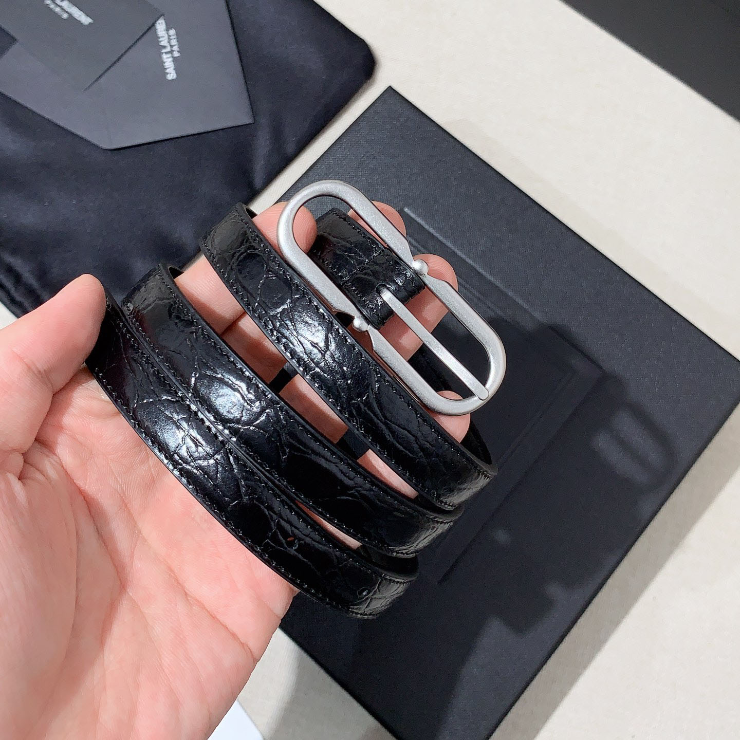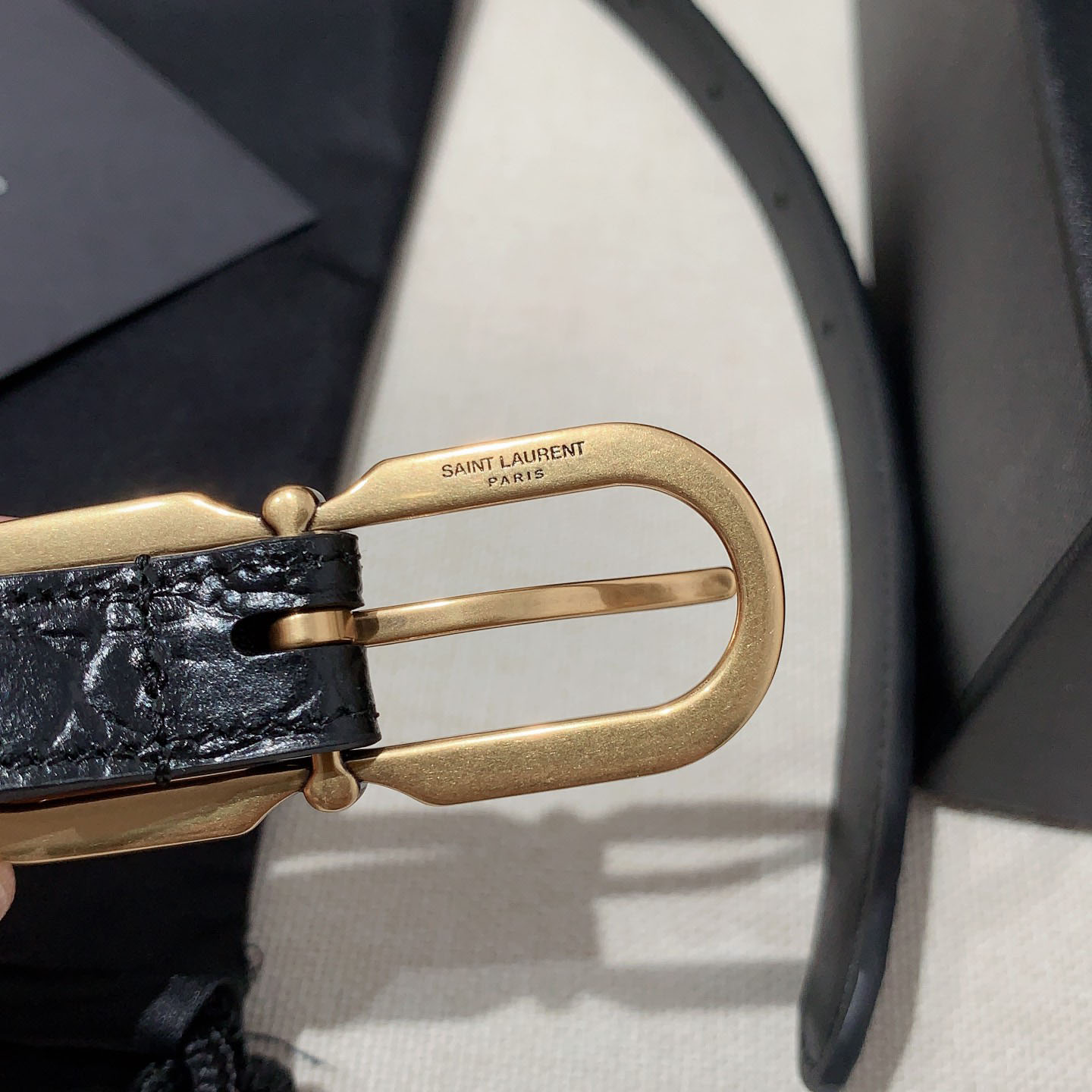 Saint Laurent Long Oval Buckle Thin Belt In Black Calfskin With Gold/Silver Hardware 15mm