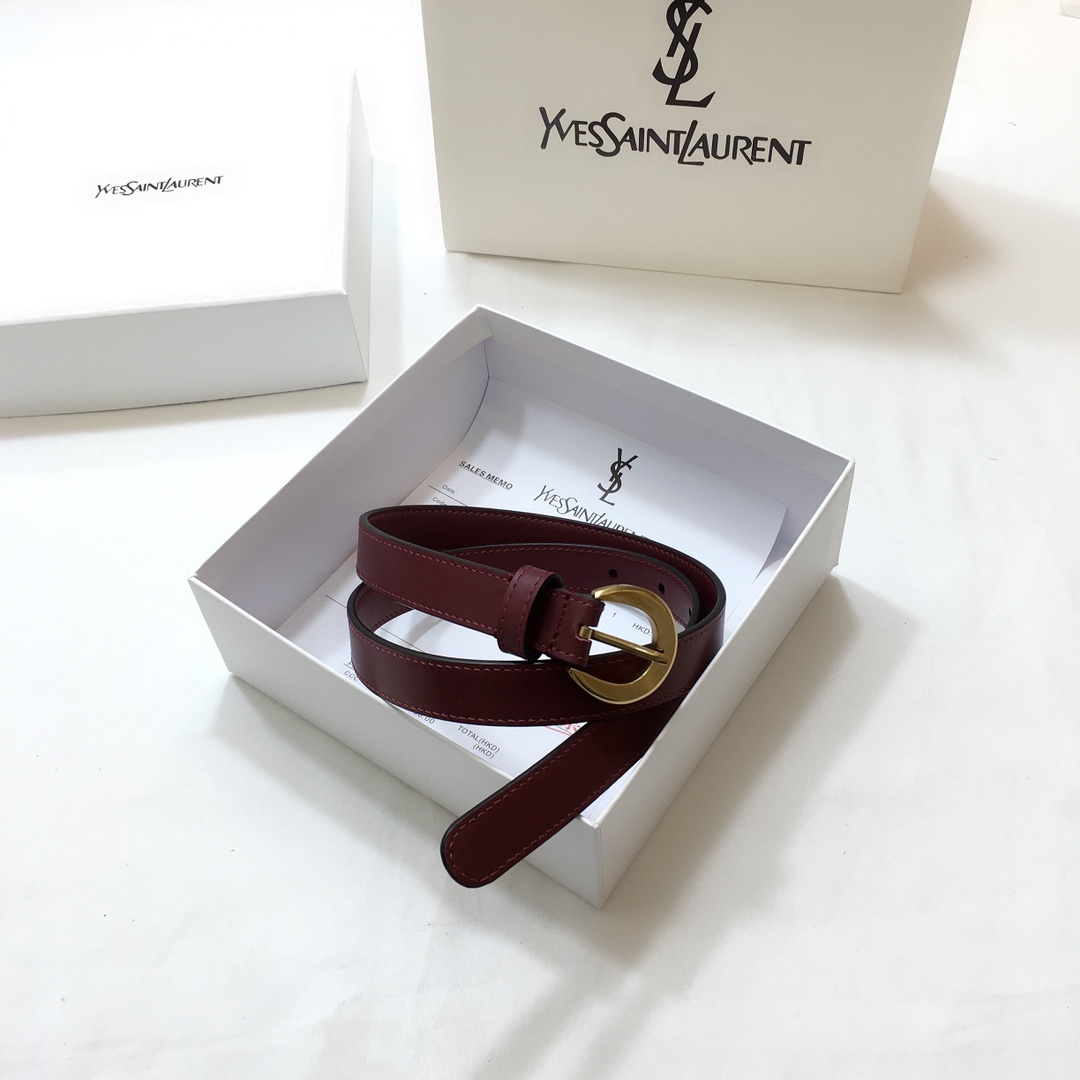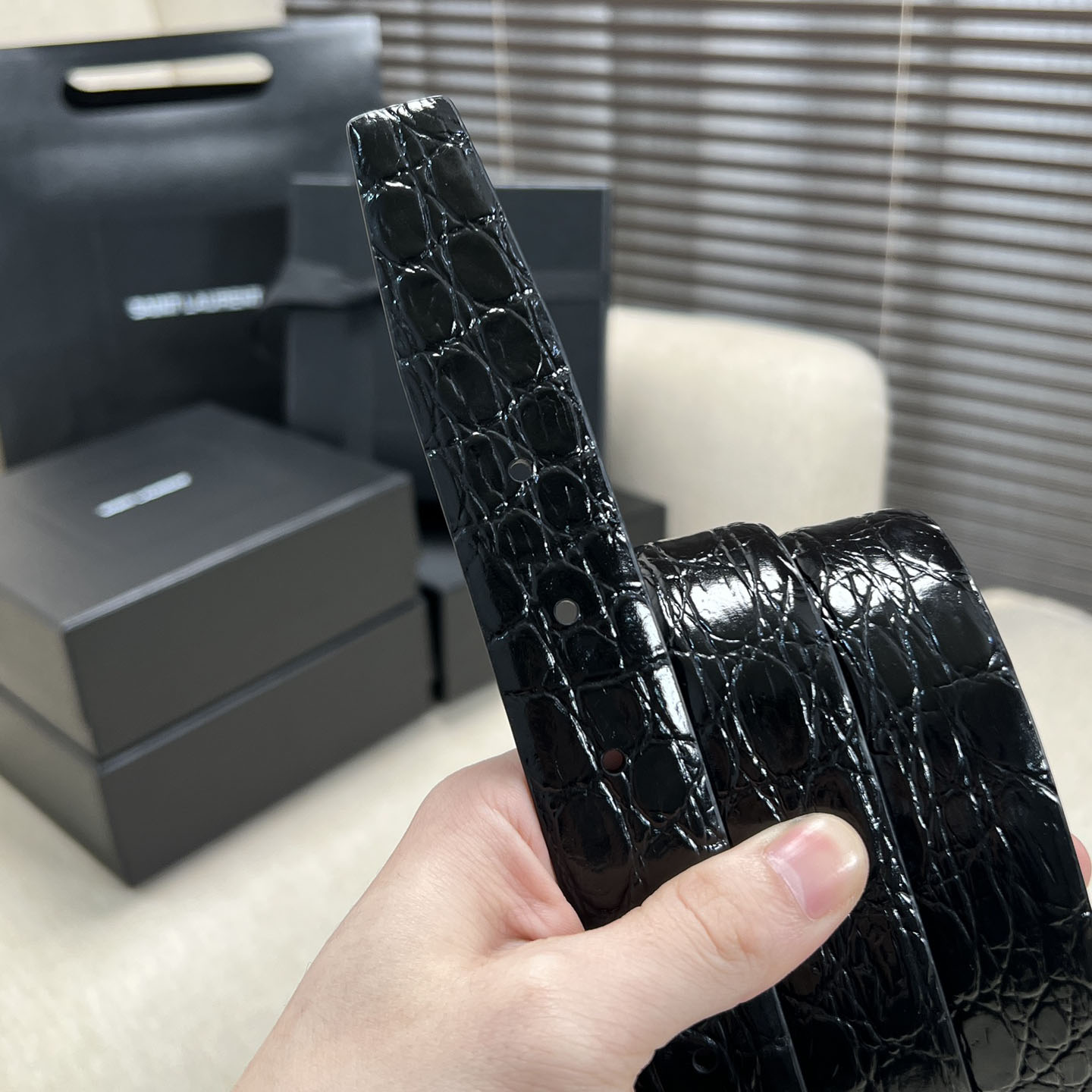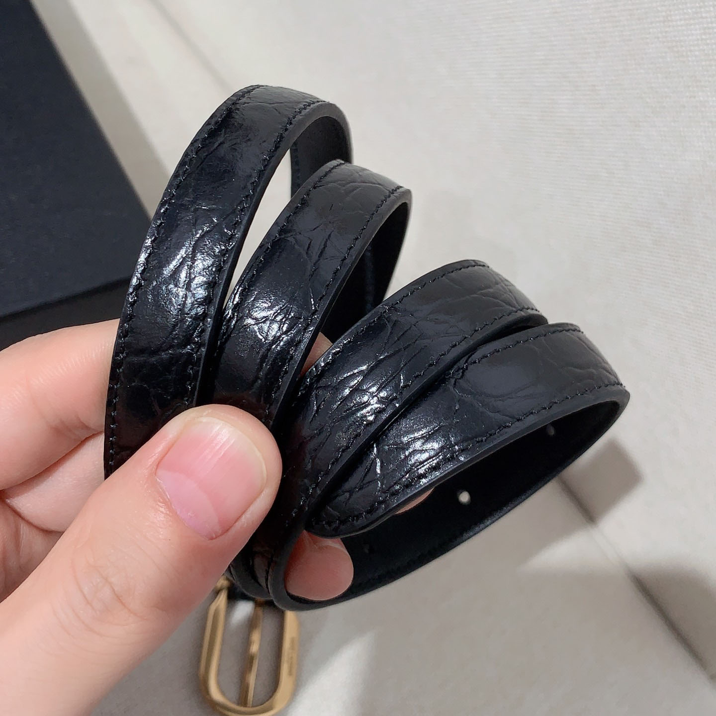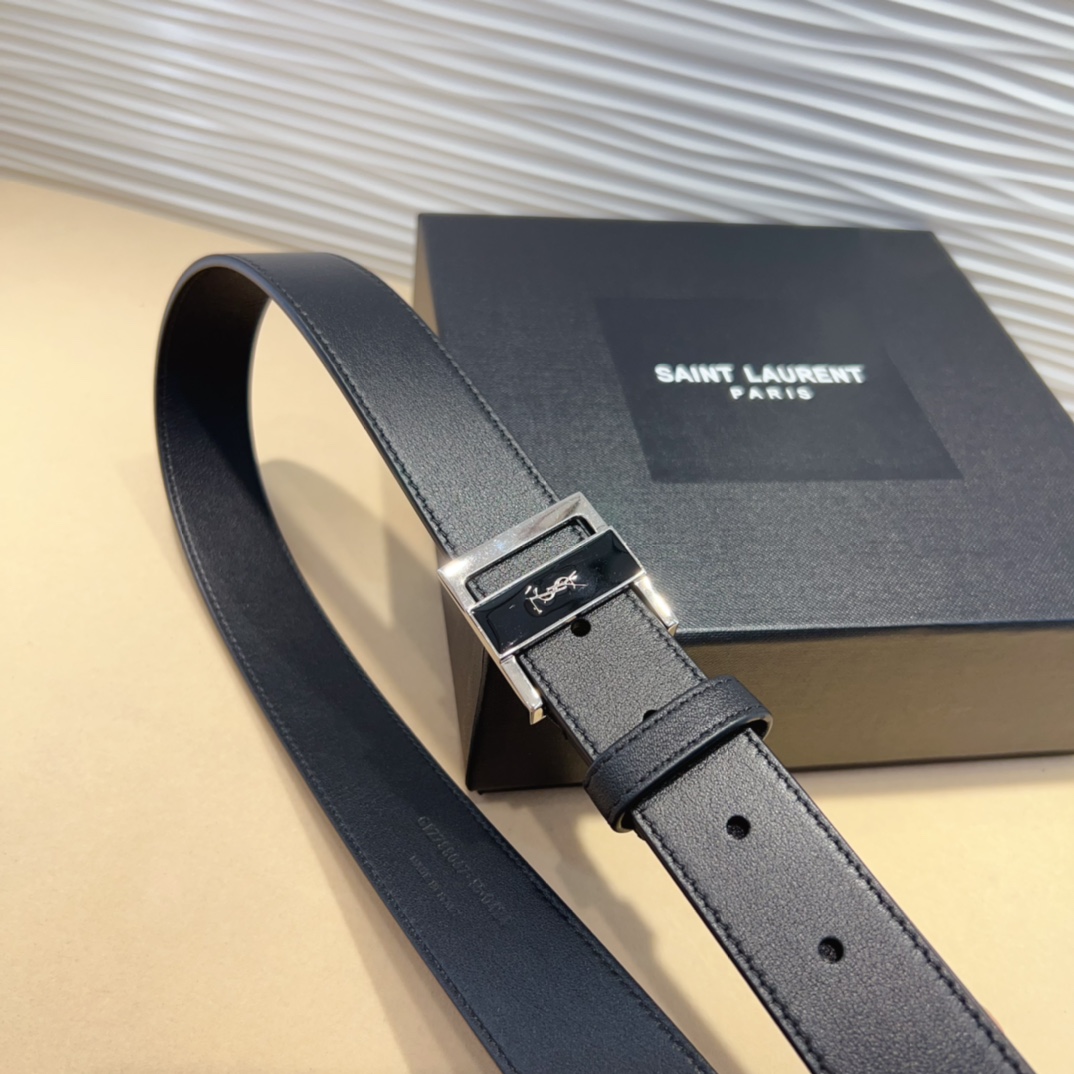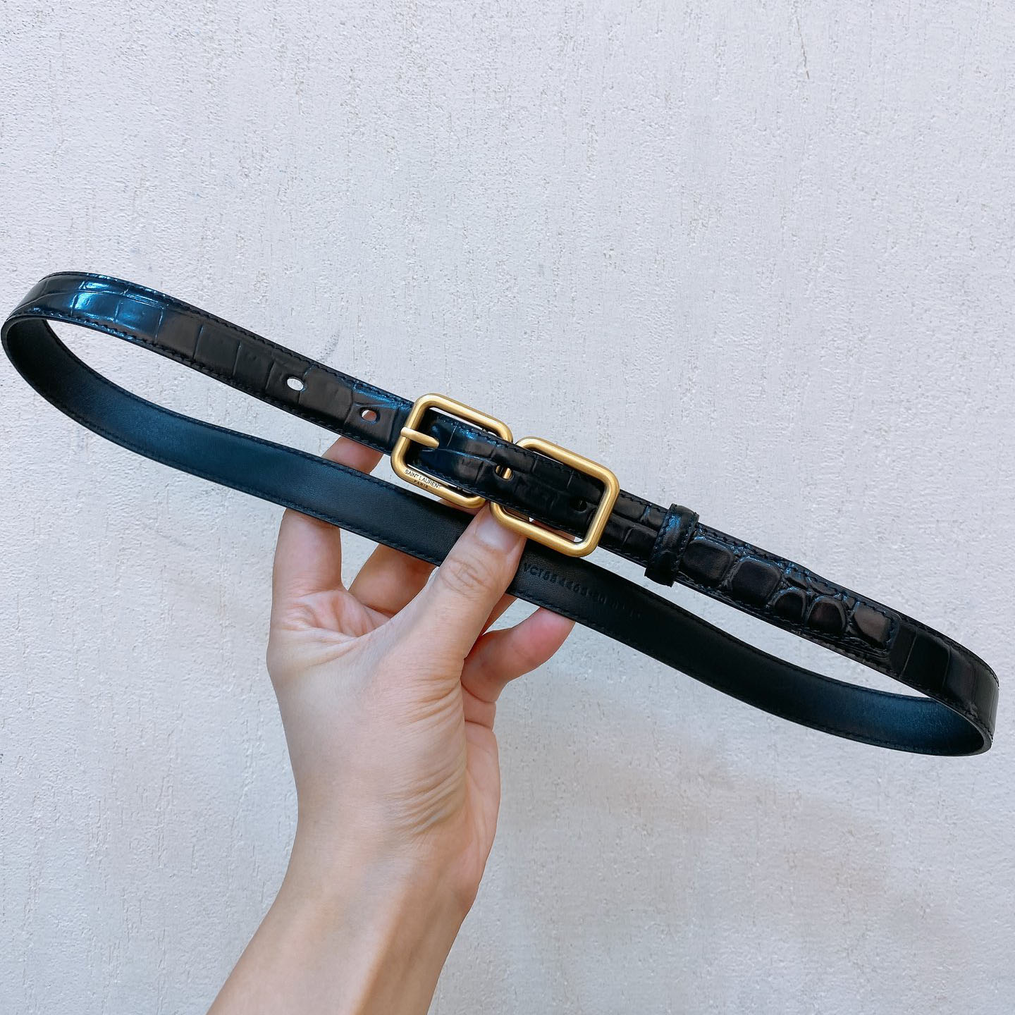 Saint Laurent Long Oval Buckle Thin Belt In Black Calfskin With Gold/Silver Hardware 15mm