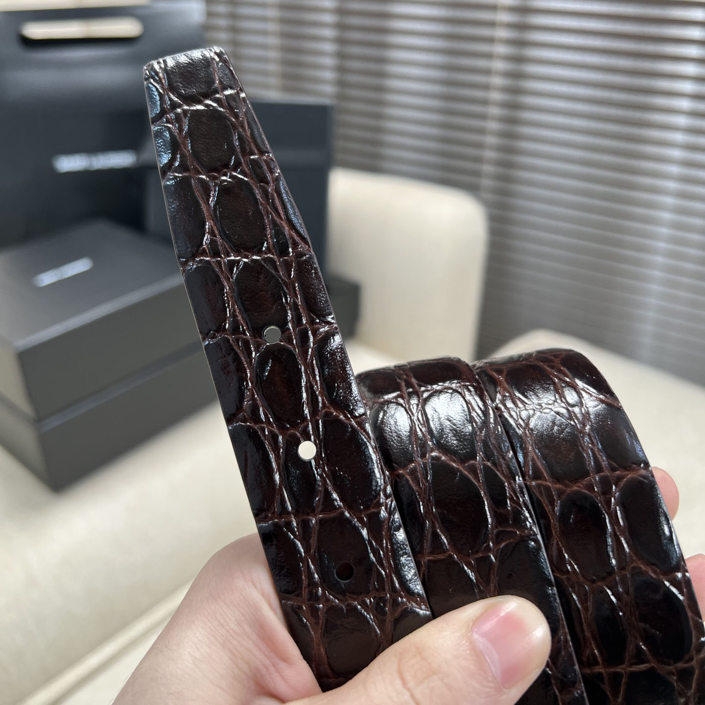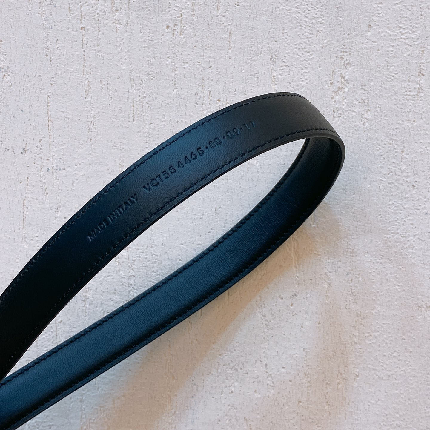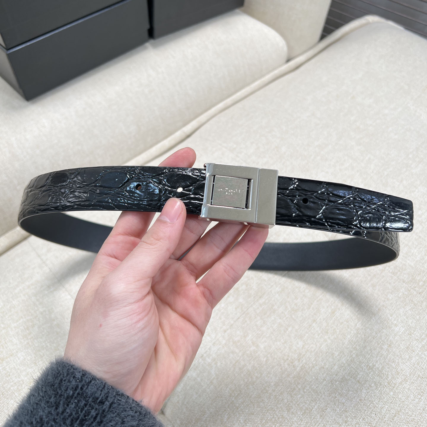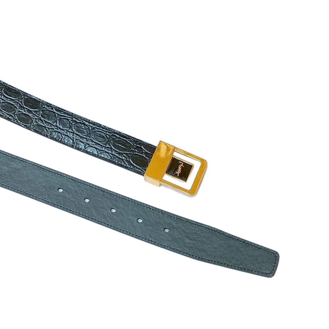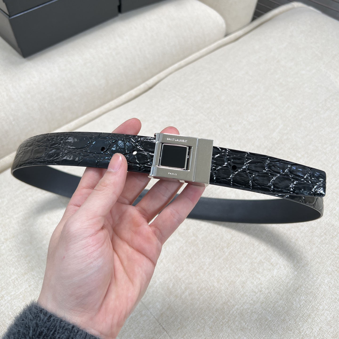 Saint Laurent Long Oval Buckle Thin Belt In Black Calfskin With Gold/Silver Hardware 15mm