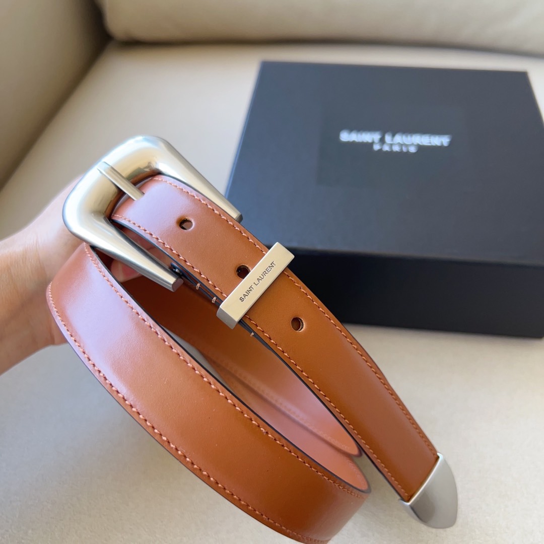 Saint Laurent Folk Buckle Belt In Black/White/Brown Smooth Leather With Gold/Silver Hardware 25mm