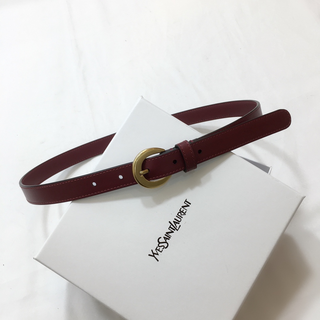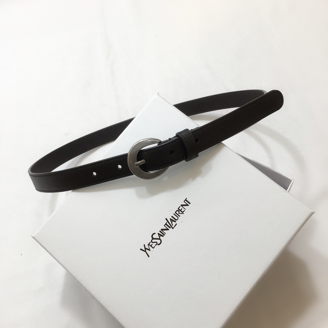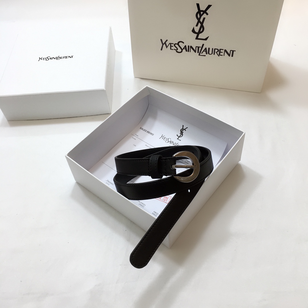 Saint Laurent Oval Buckle Thin Belt In Black Calfskin With Gold/Silver Hardware 15mm