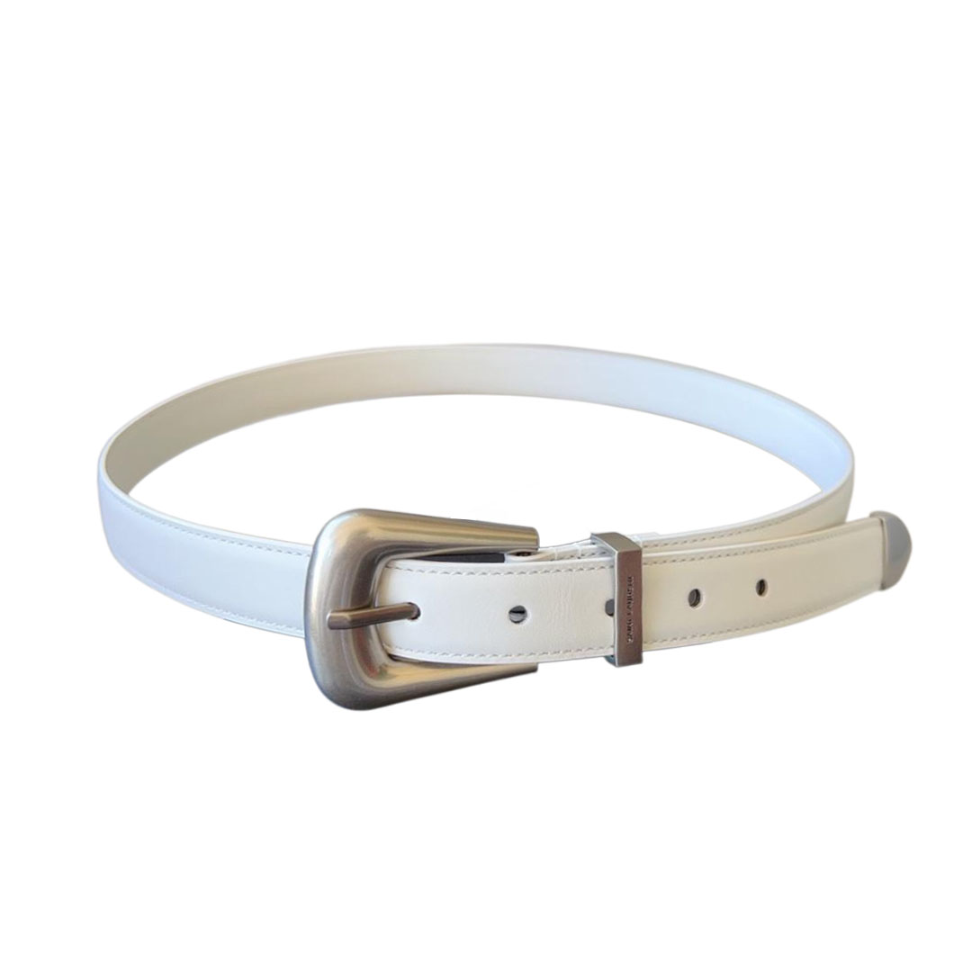 Saint Laurent Crecent Moon Belt In White/Black/Burgundy Smooth Calfskin With Silver/Gold Hardware 20mm