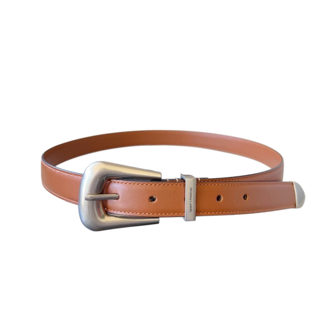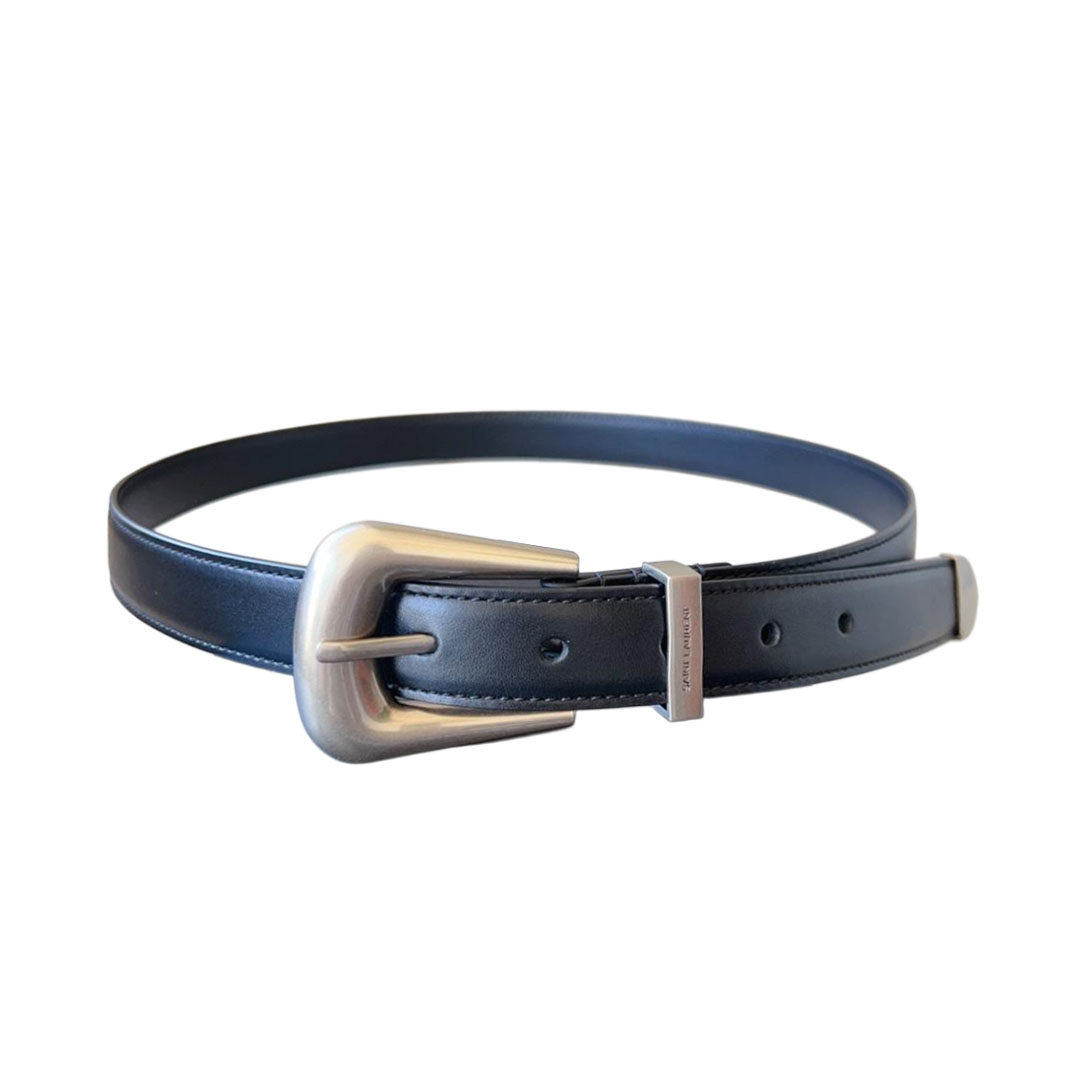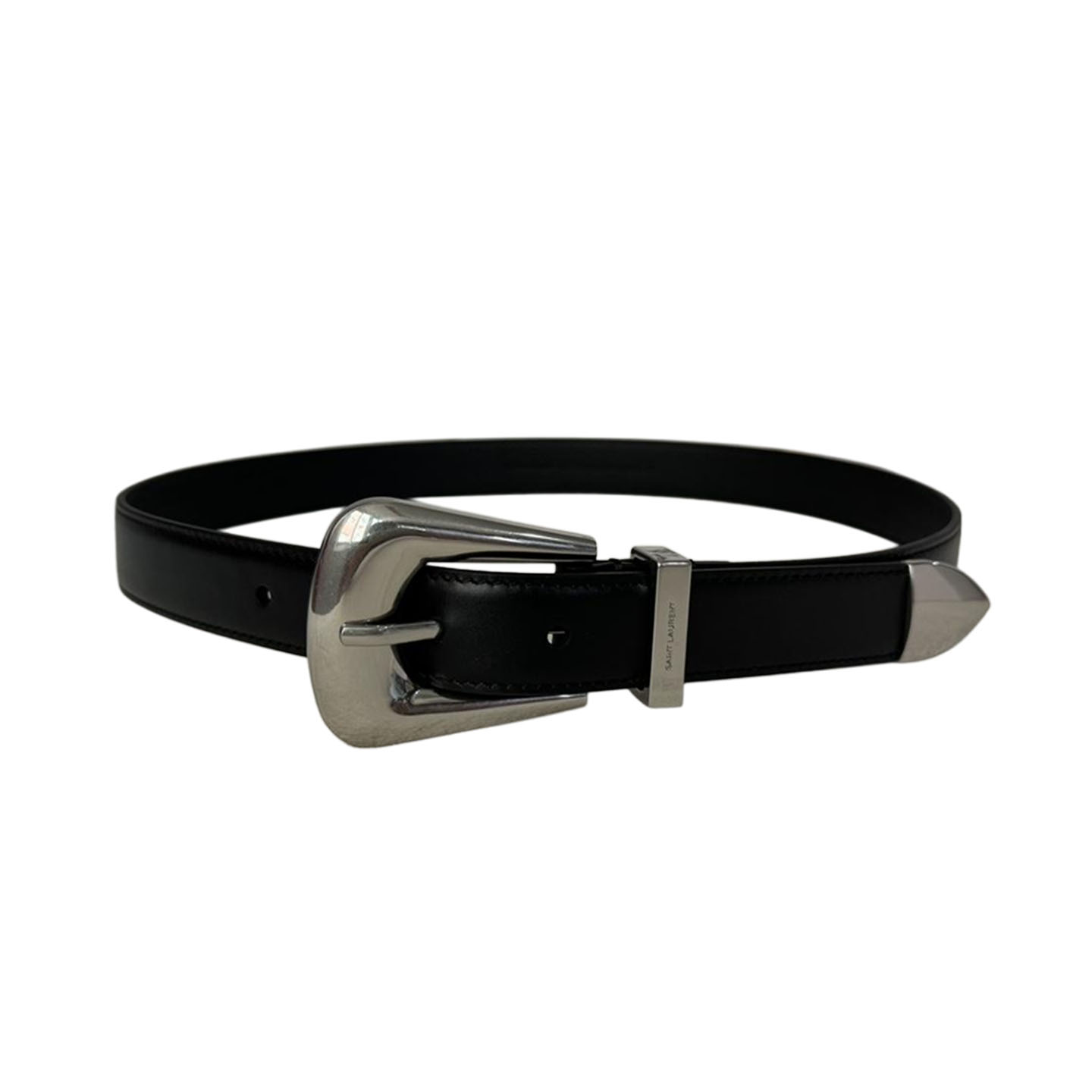 Saint Laurent Folk Buckle Belt In Black Brushed Leather With Gold/Silver Hardware 25mm