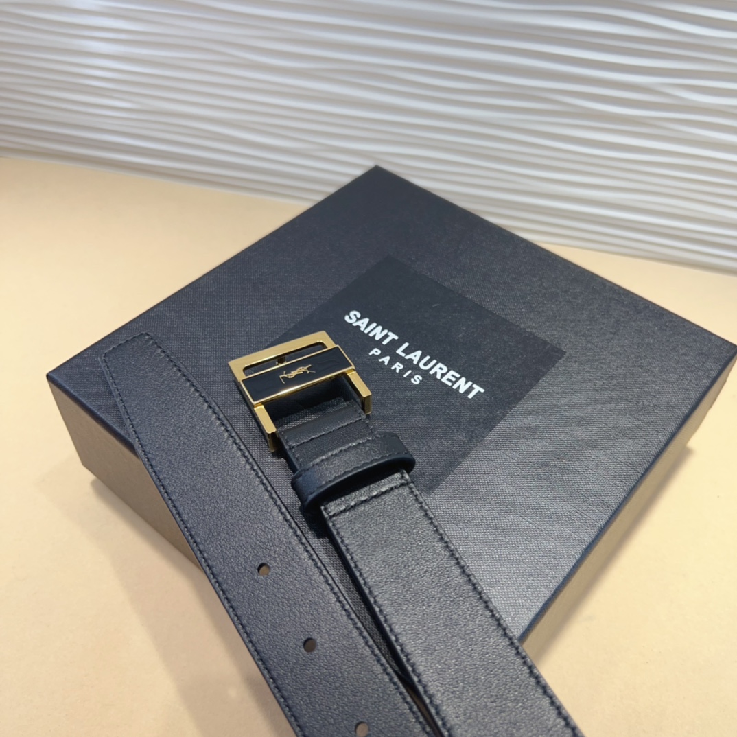 Saint Laurent Frame Buckle Thin Belt In Black Calfskin With Gold Hardware 30mm