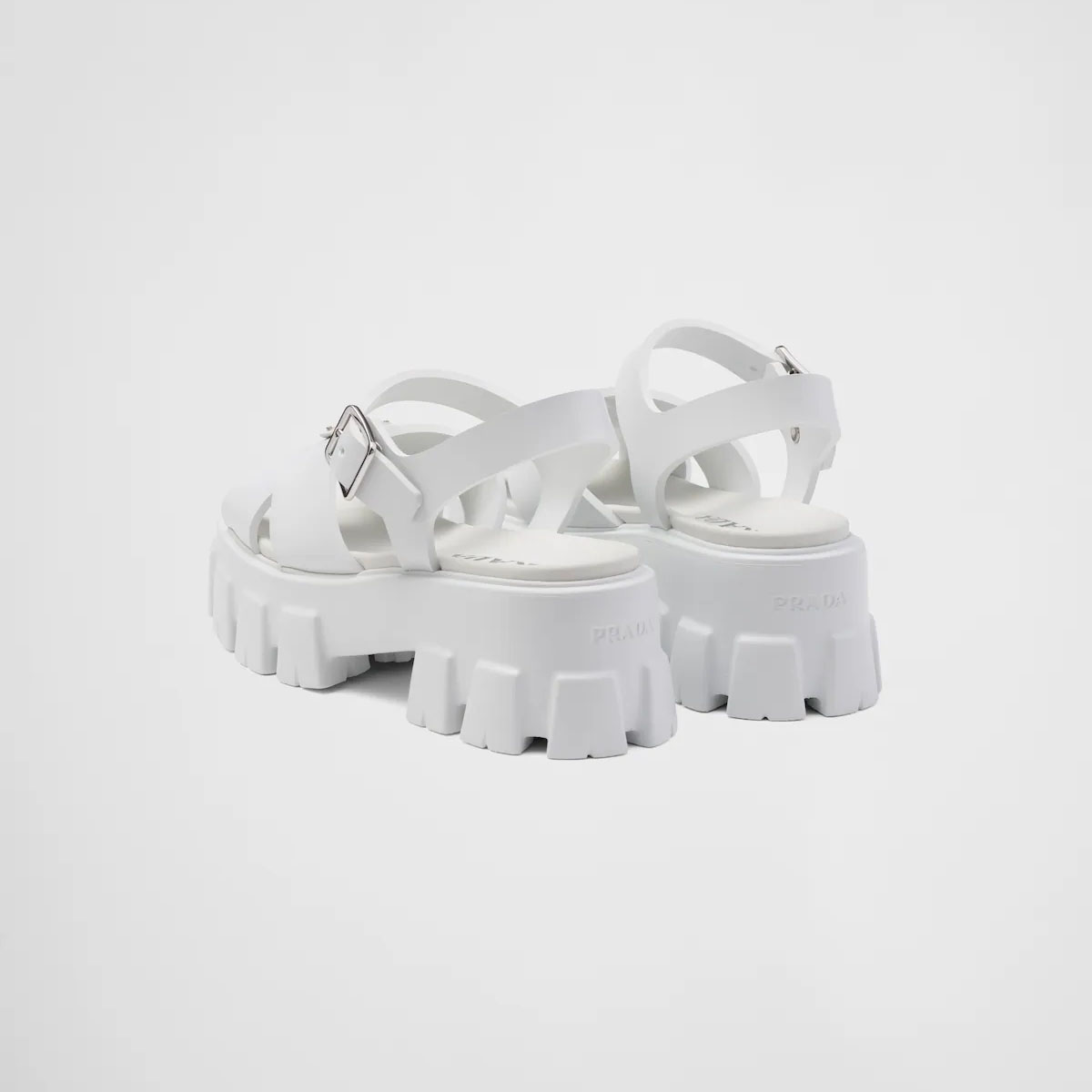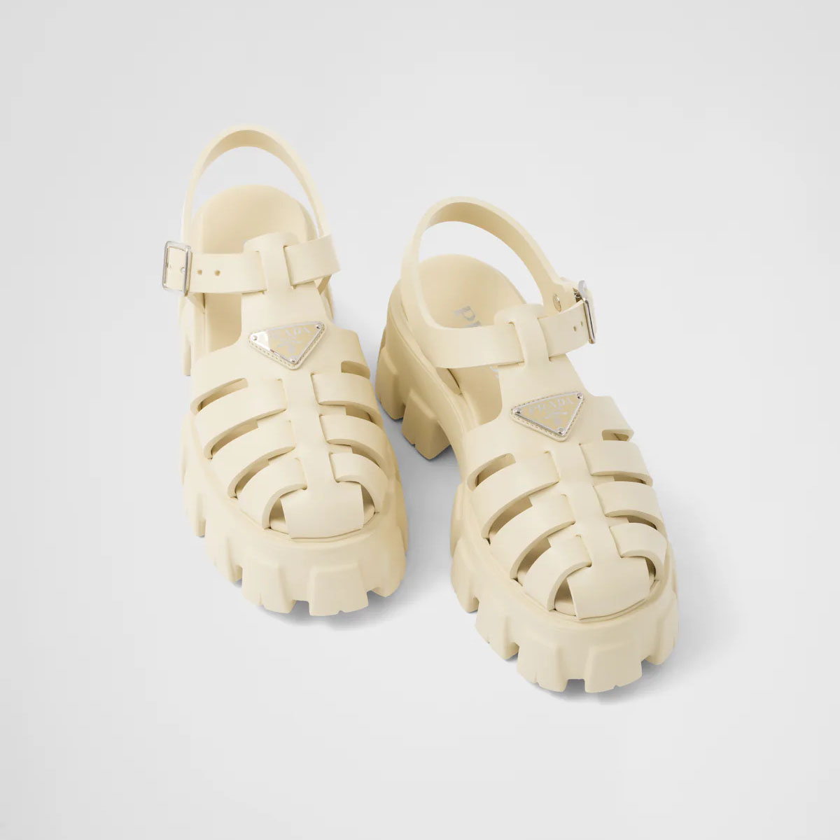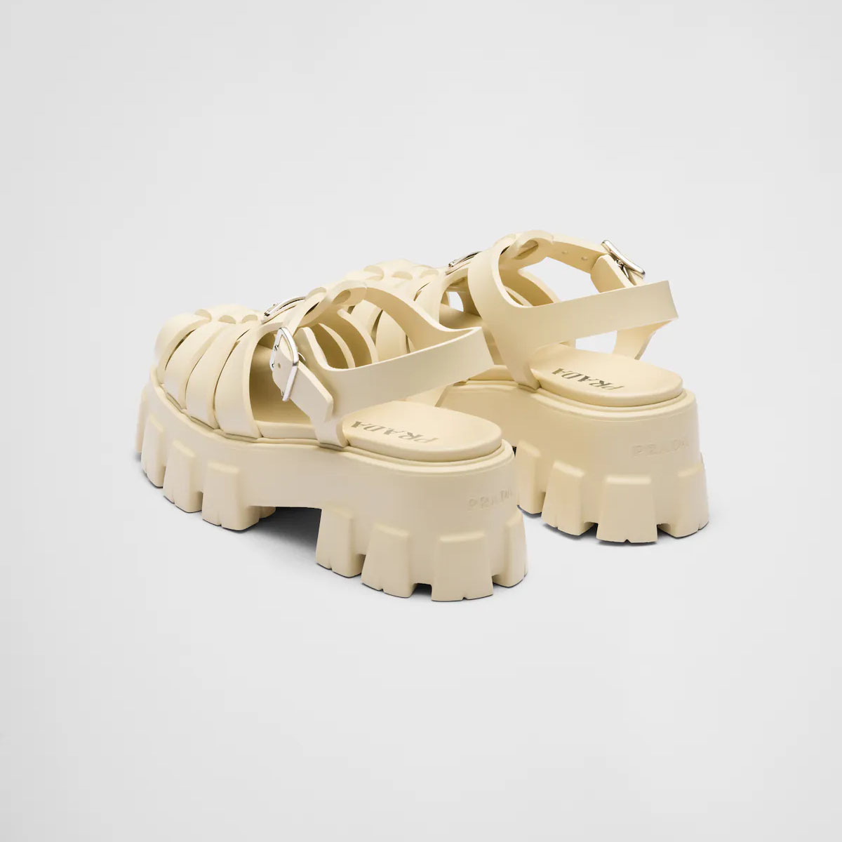 PRADA Quartz colored rubber Monolith sandals