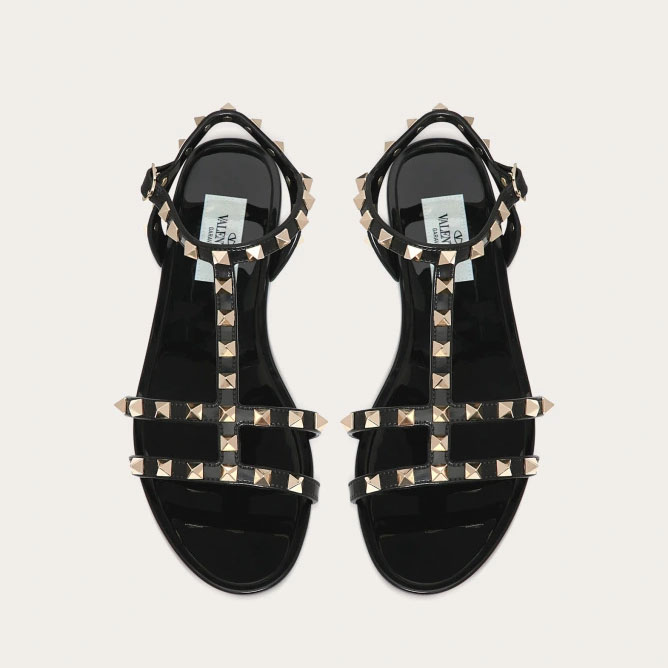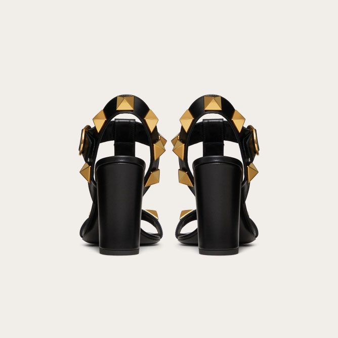 VALENTINO Black Wraparound ankle strap rivet sandals (heel height 6cm)