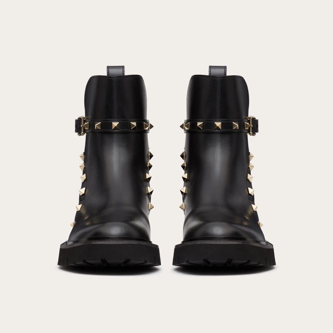 VALENTINO ROCKSTUD Calf leather motorcycle boots (heel height 4cm)
