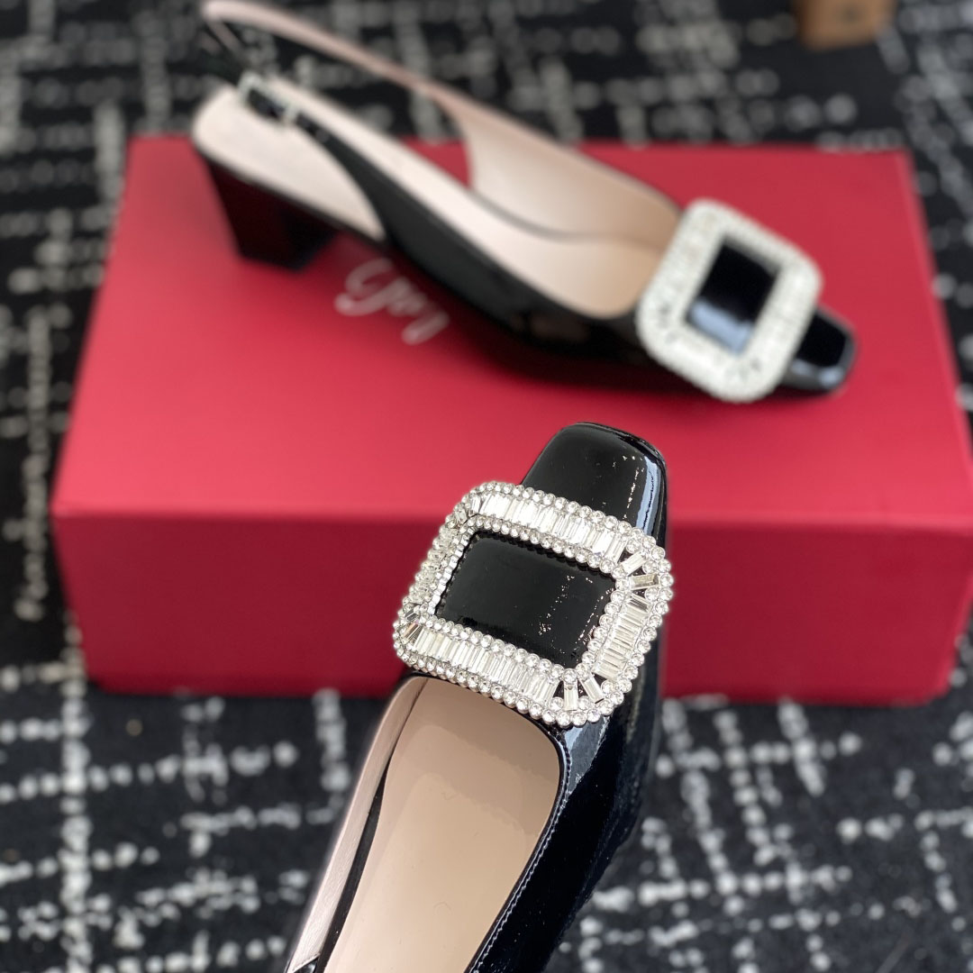 Roger Vivier Belle Viver Slingback Pumps High Heels In Black Patent Leather With Crystal Buckle (Heel Height 4.5cm)